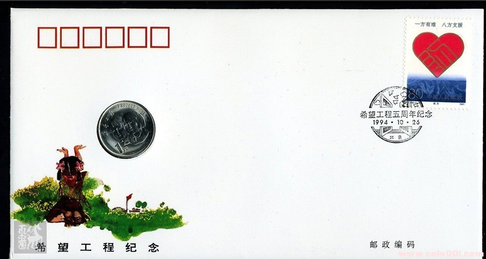 封嵌第十一屆亞運(yùn)會(huì)《射箭》流通紀(jì)念幣一枚,面額1元。貼J172(6-1,6-2,6-6)郵票各一枚。