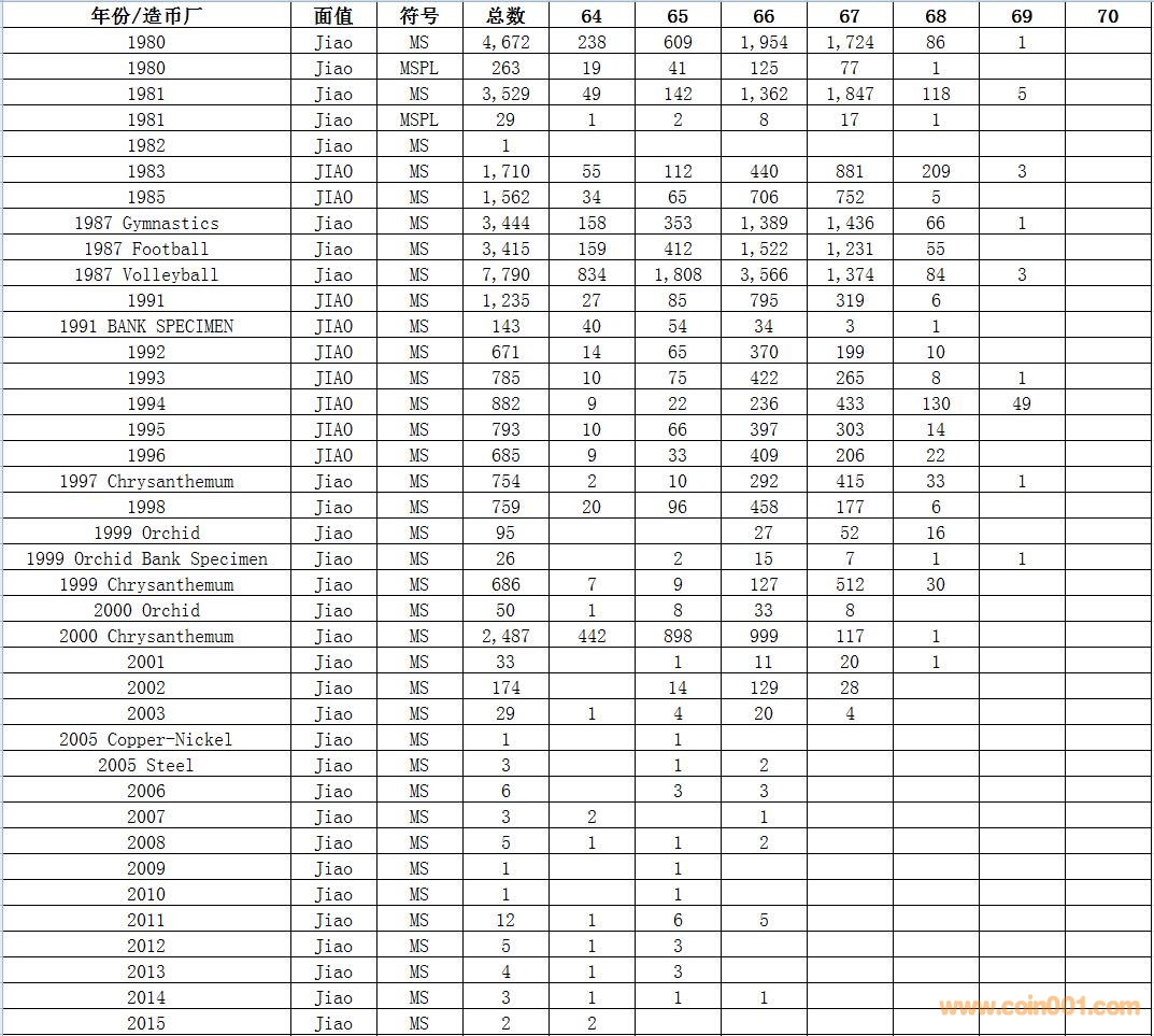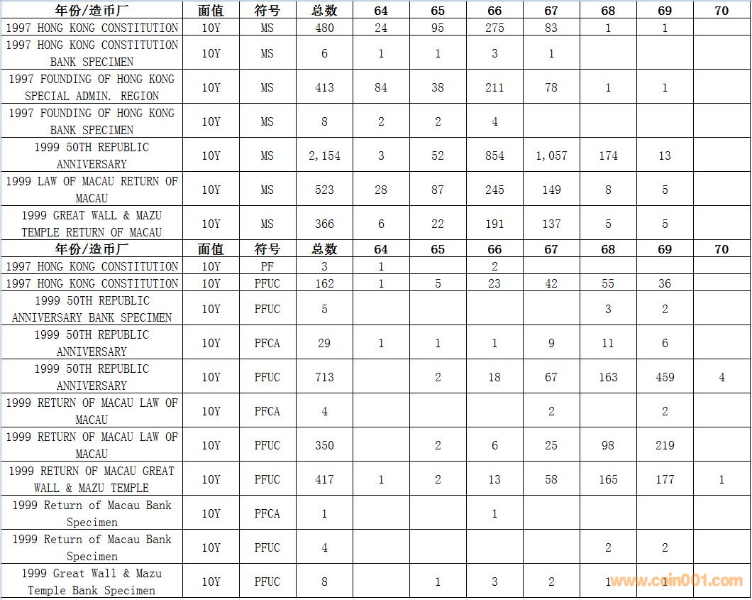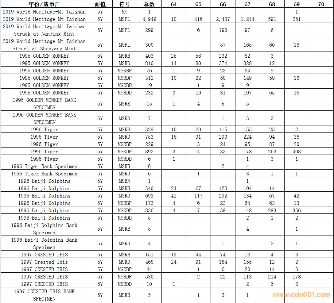 NGC硬幣評級數(shù)量報告 ..