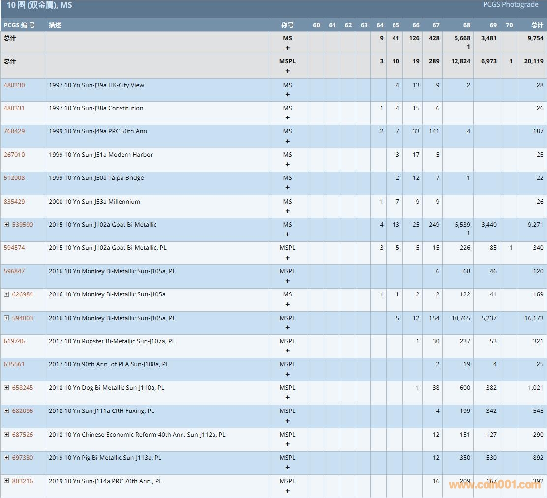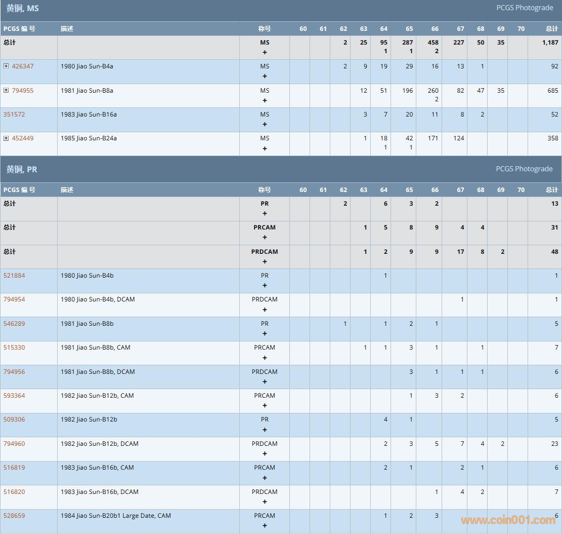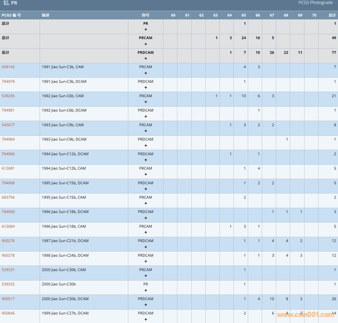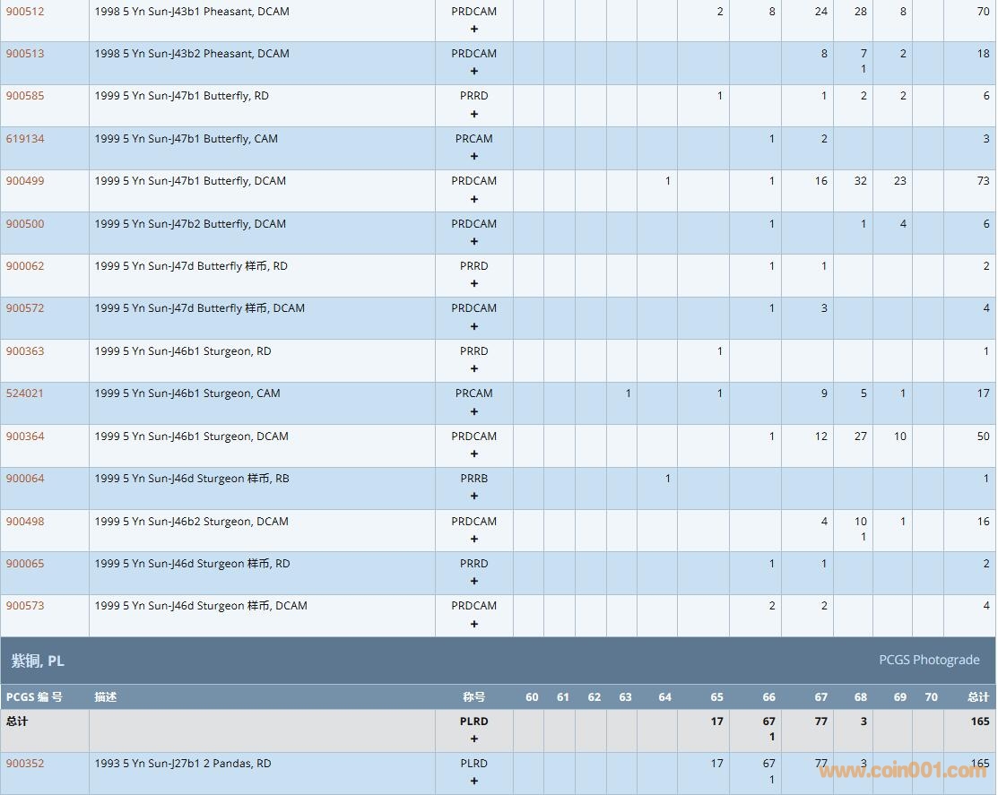PCGS硬幣評級數(shù)量報告( ..