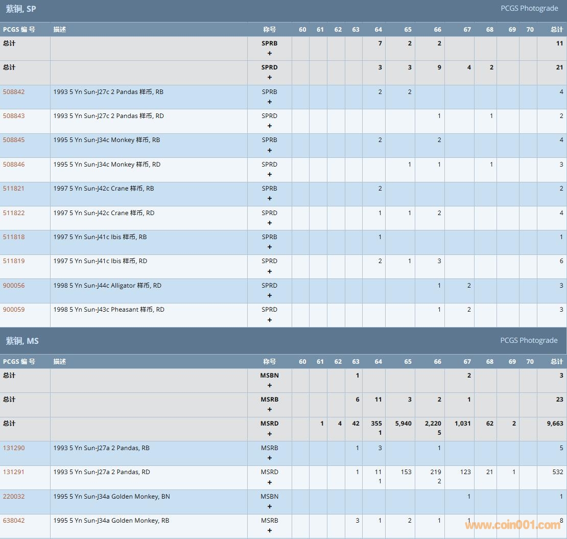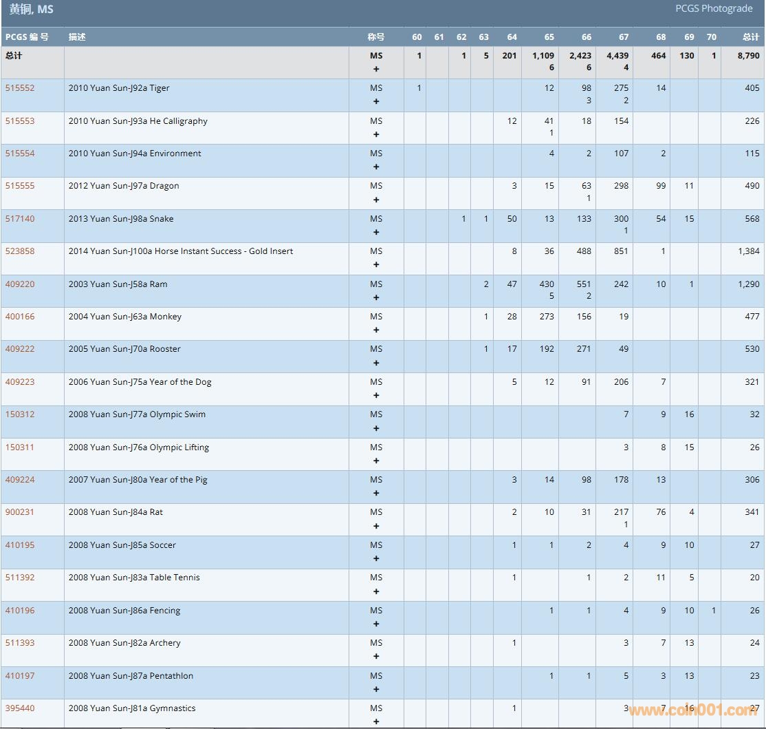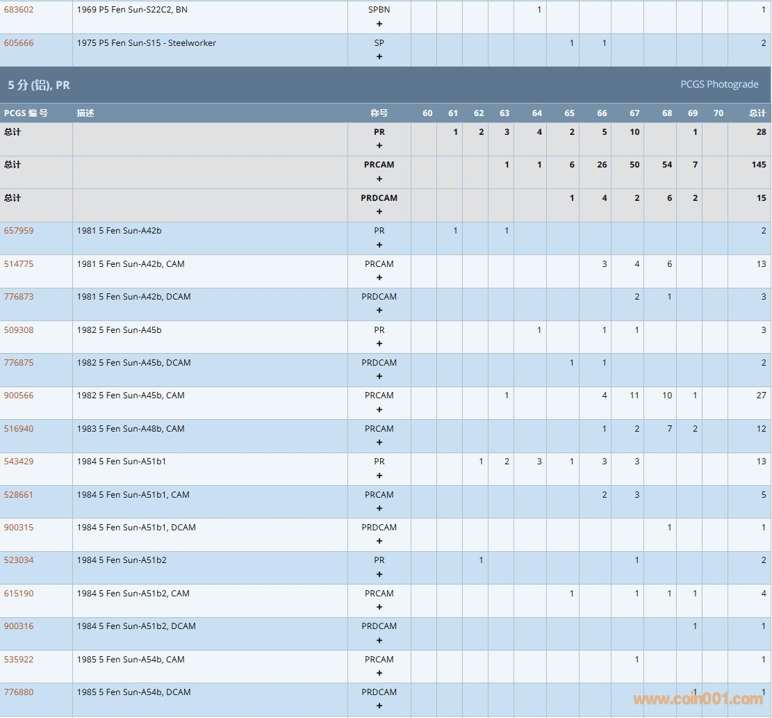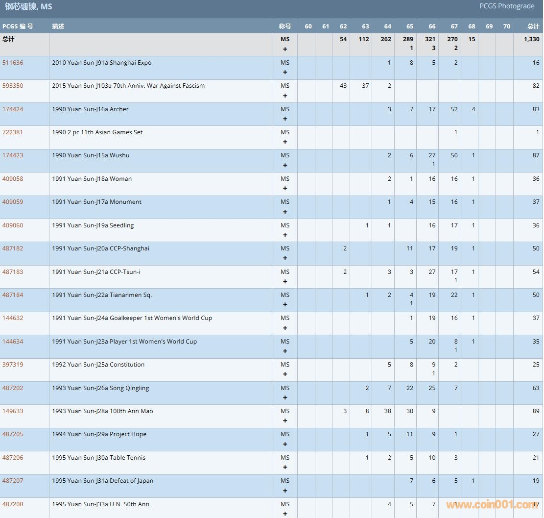 PCGS硬幣評級數(shù)量報告( ..