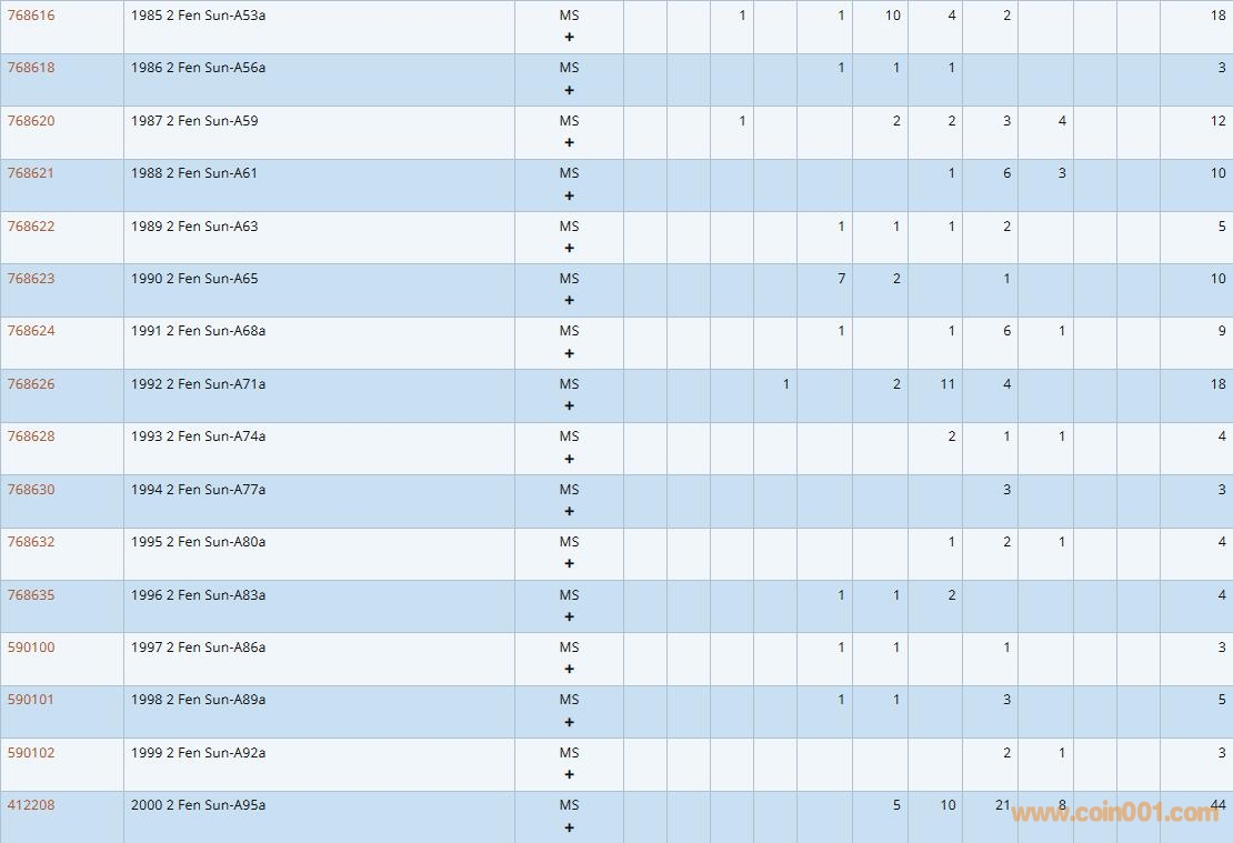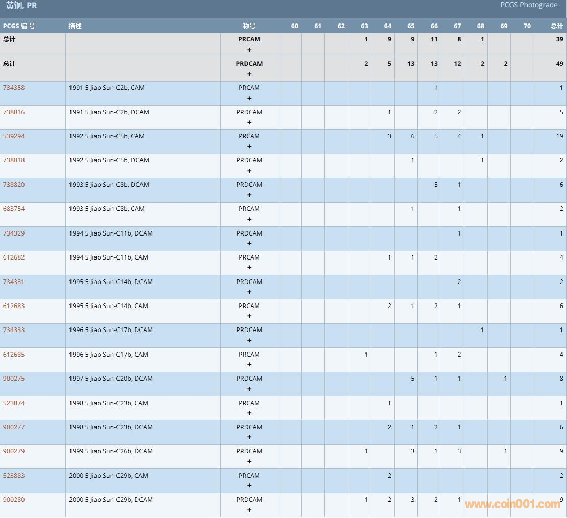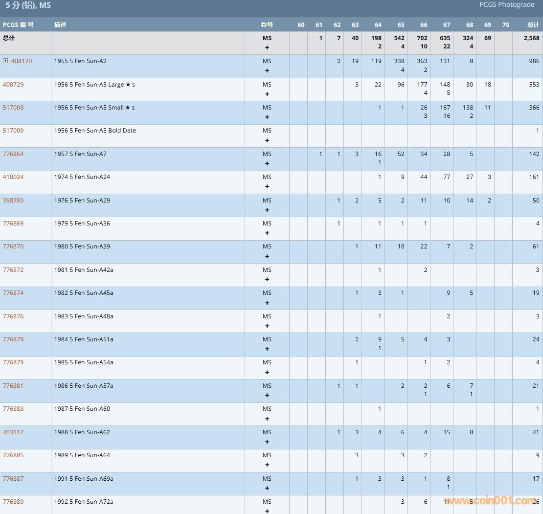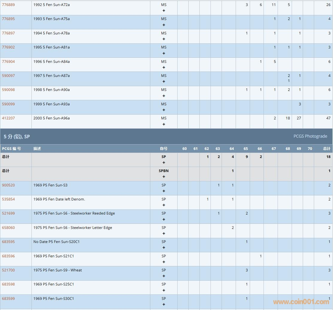 PCGS硬幣評級數(shù)量報告( ..