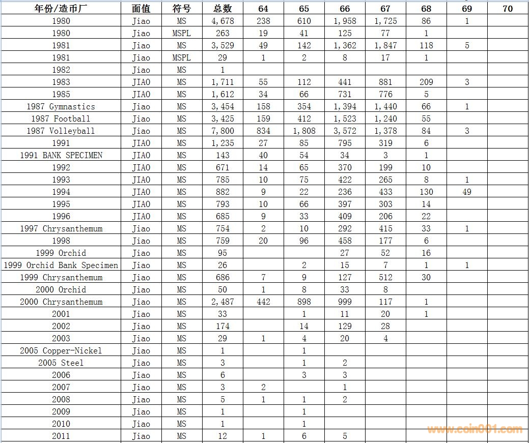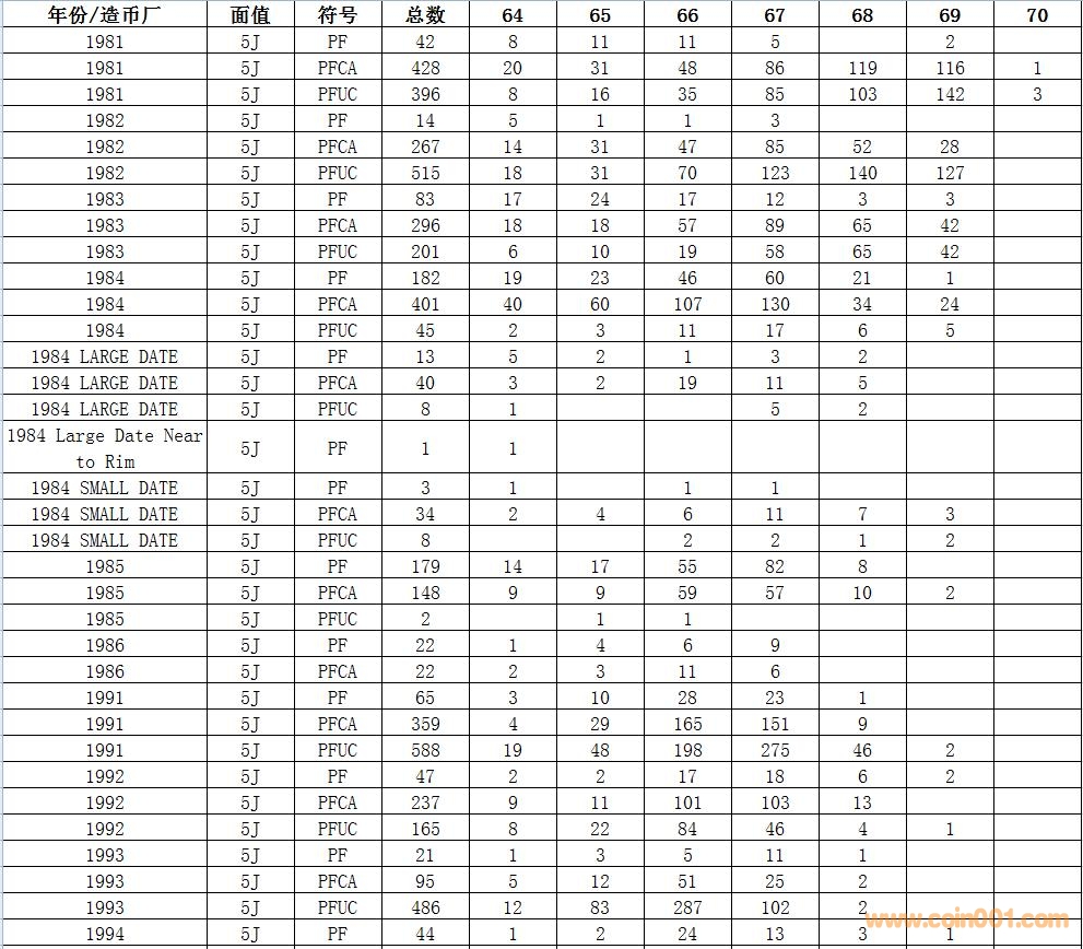 NGC硬幣評(píng)級(jí)數(shù)量報(bào)告 ..