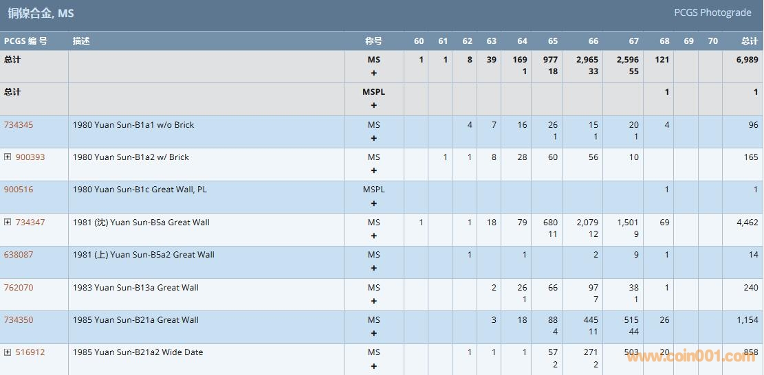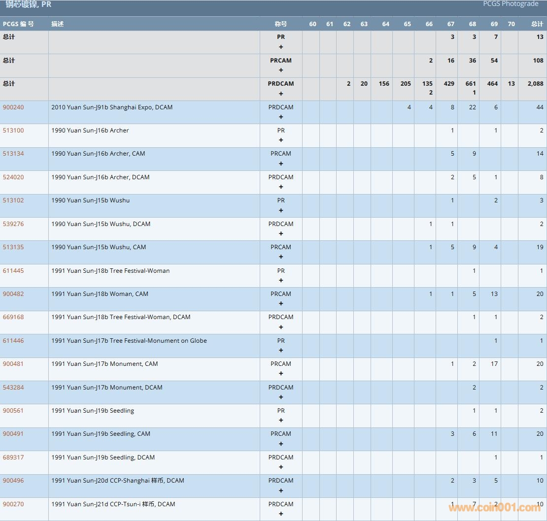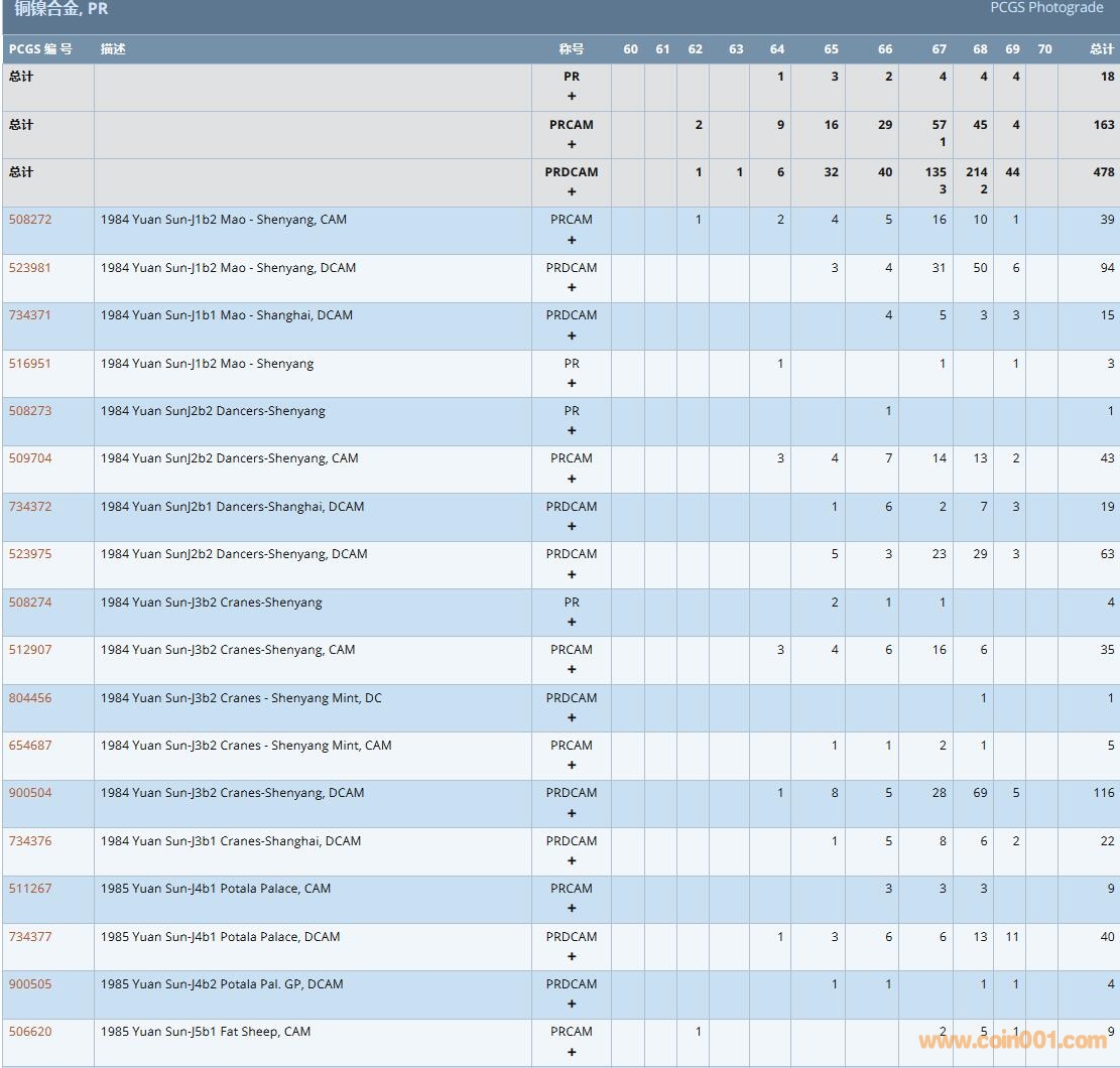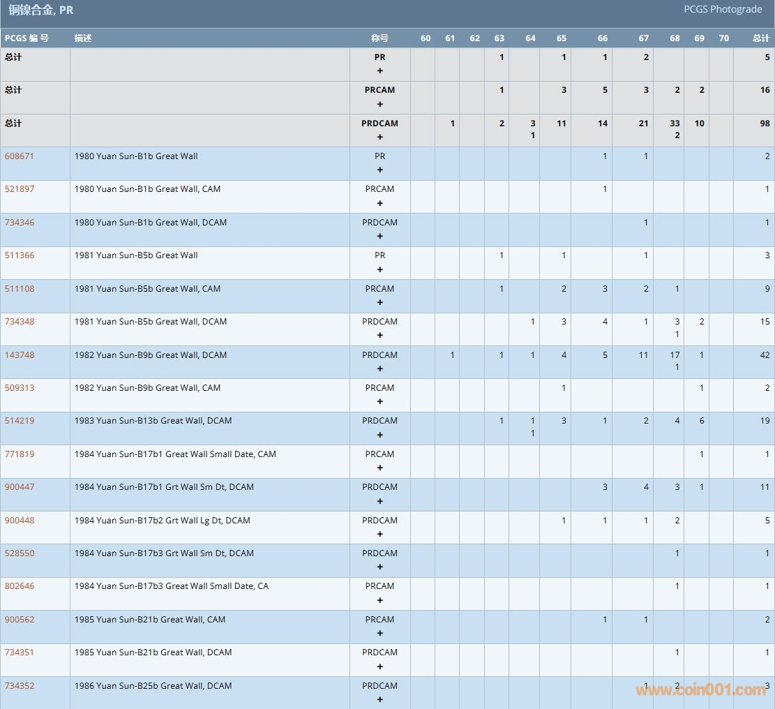 PCGS硬幣評級數(shù)量報告( ..