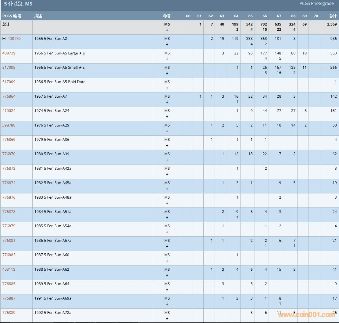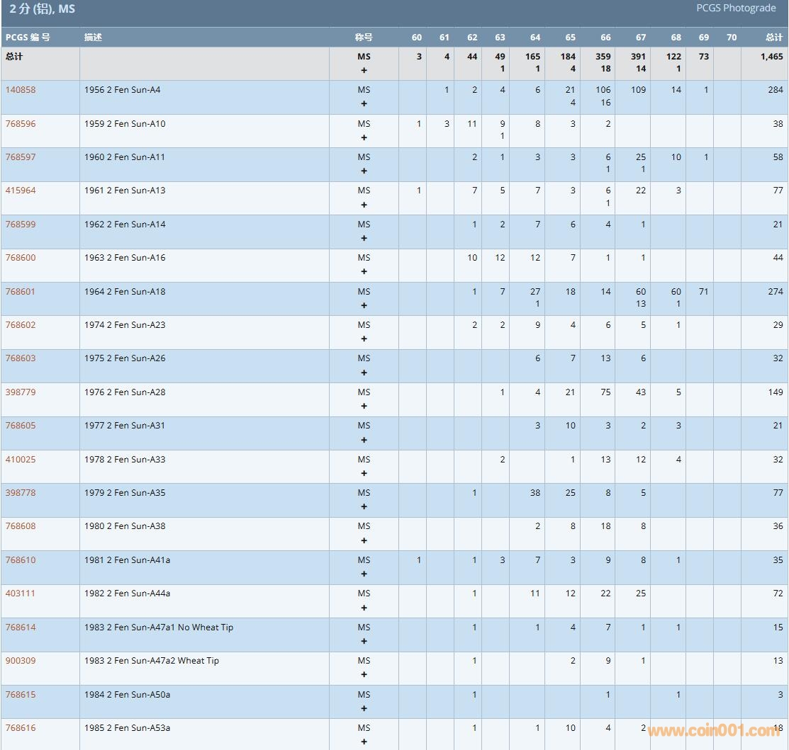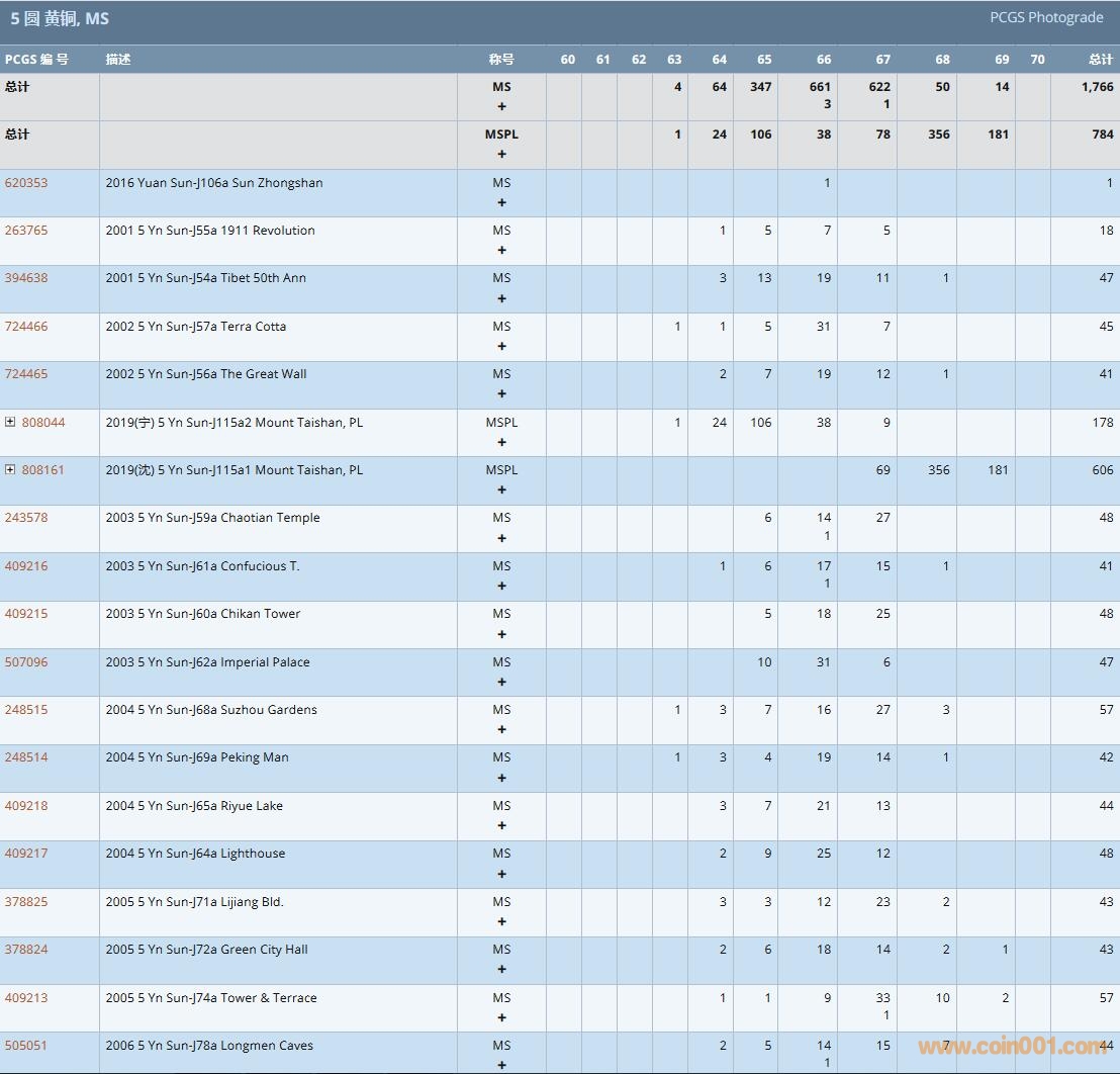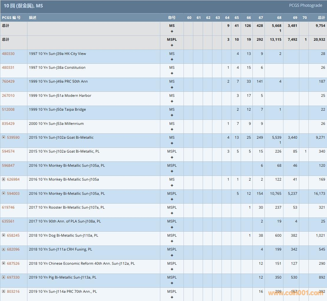 PCGS硬幣評級數(shù)量報告( ..