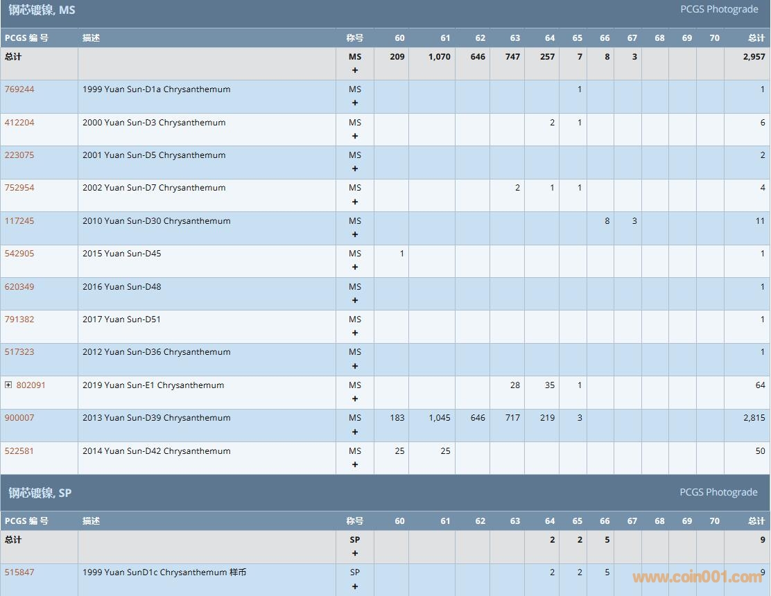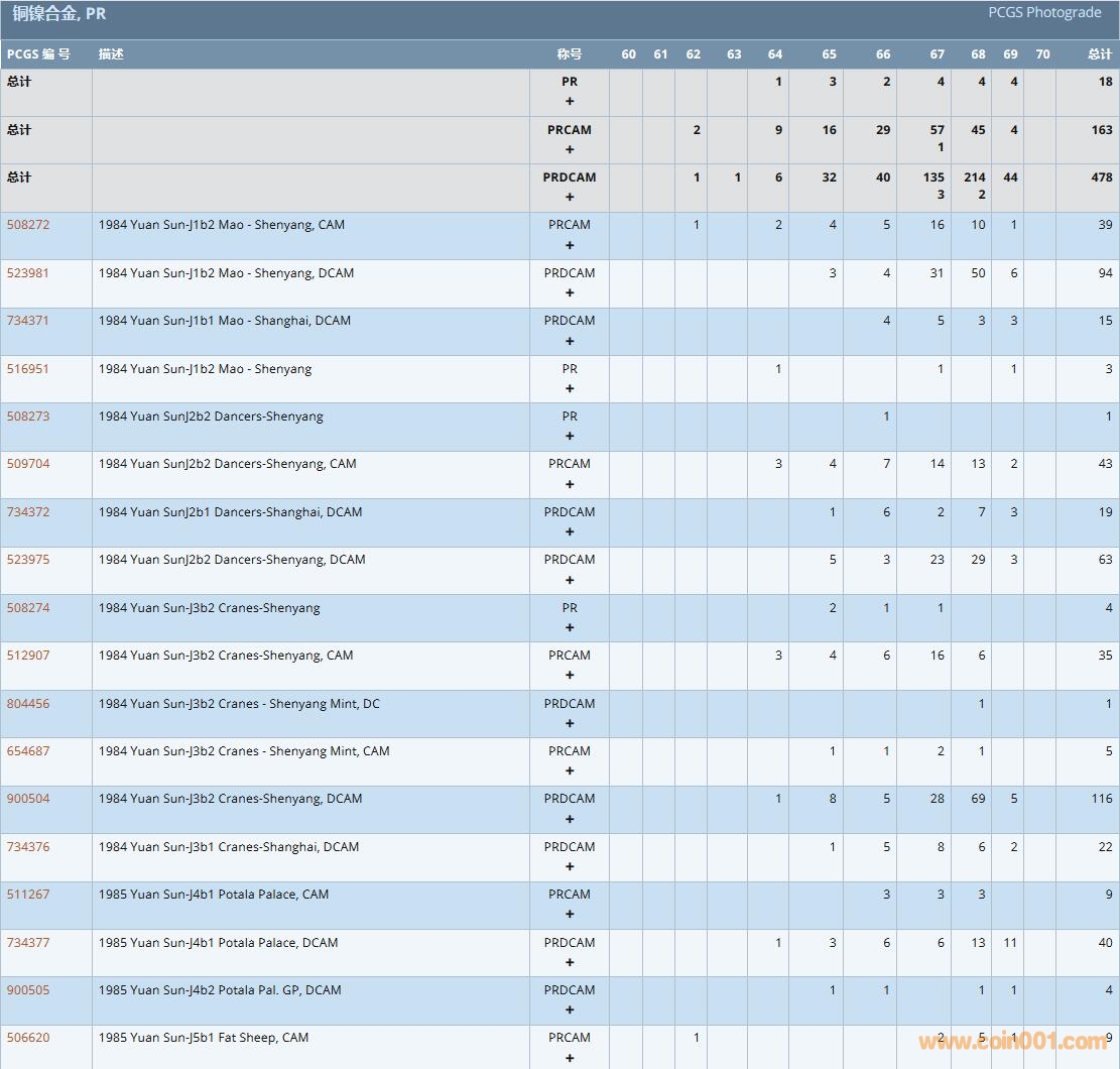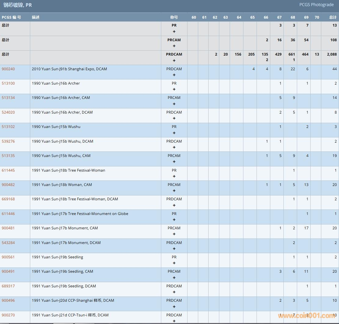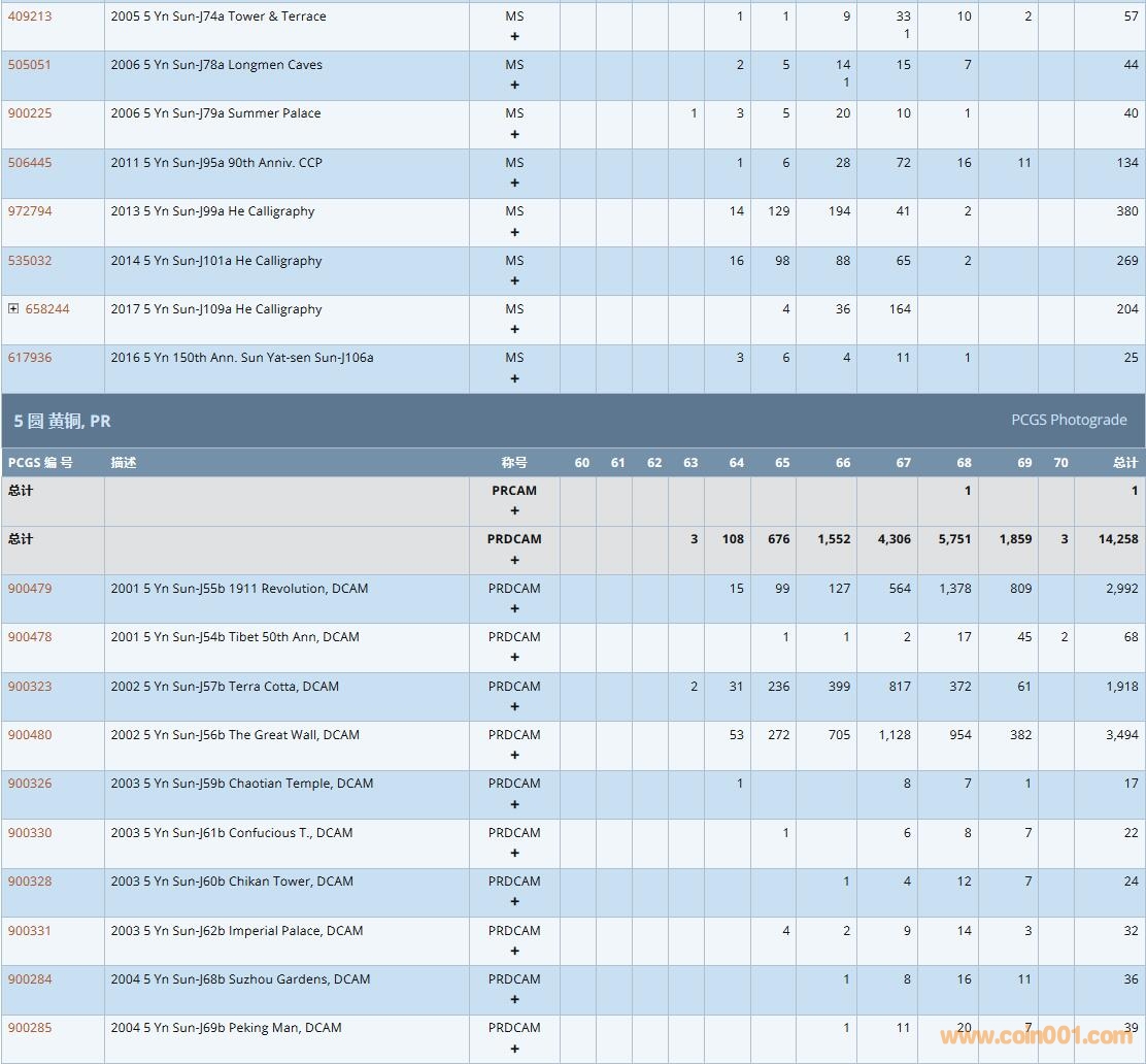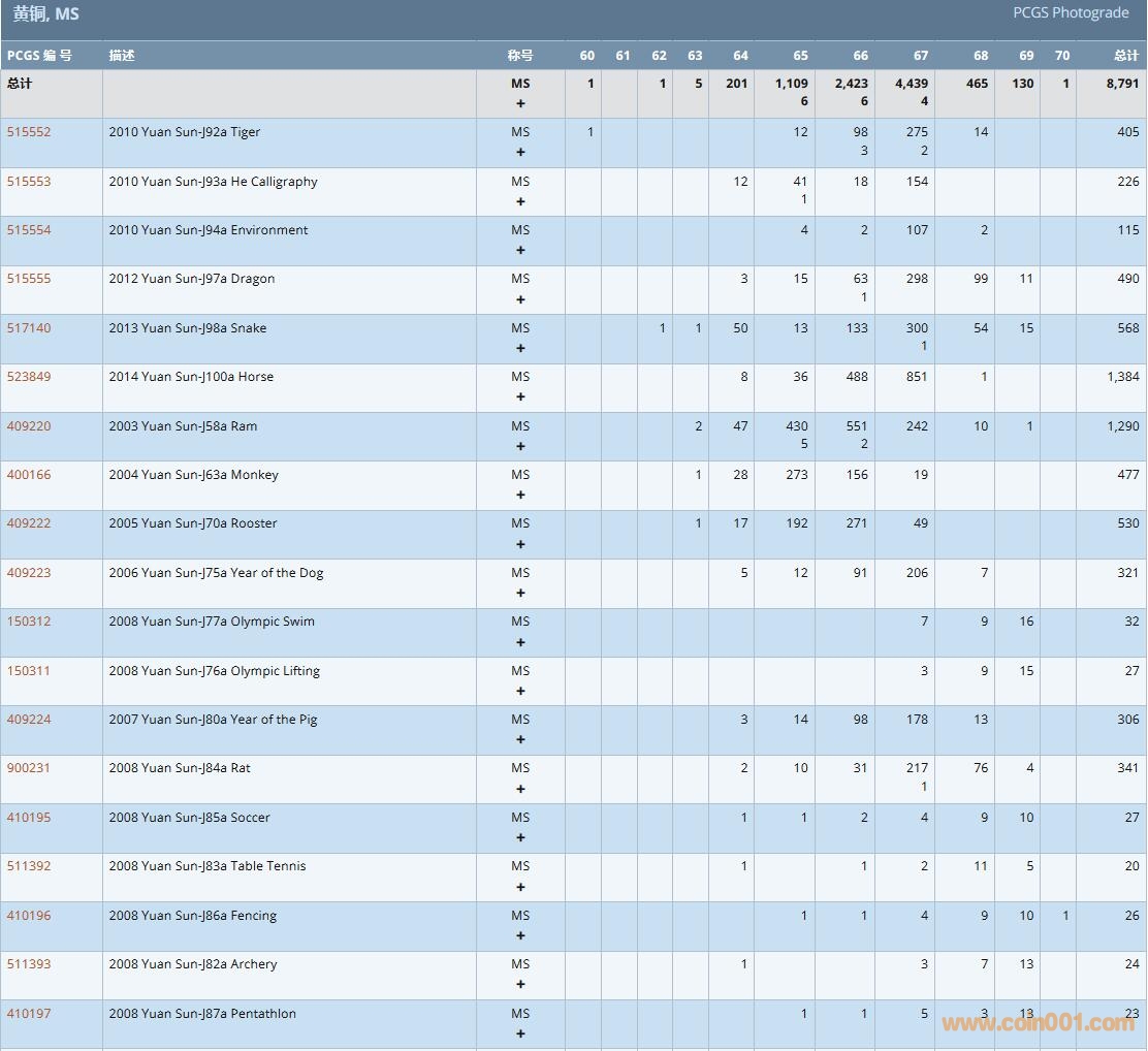 PCGS硬幣評(píng)級(jí)數(shù)量報(bào)告( ..