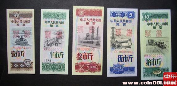 1976 年9月9日毛澤東主席病逝,10月6日黨中央一舉粉碎了"四人幫".一時國內(nèi)政治.經(jīng)濟.社會不很平靜;國內(nèi)外各種敵對勢力不斷制造緊張關(guān)系.為防止突發(fā)戰(zhàn)爭,中共中央國務(wù)院決定儲備一定數(shù)量的糧票,于1978年絕密印制了一定數(shù)量的糧票:即中華人民共和國糧票,代號為"7818"工程.該票5枚一套.糧票印好后儲存在北京,吉林,湖南.江西和陜西等五省市"戰(zhàn)備"倉庫內(nèi).
