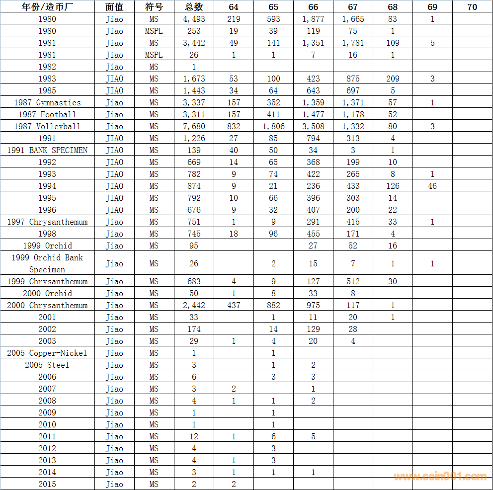 NGC硬幣評級數(shù)量報告 ..