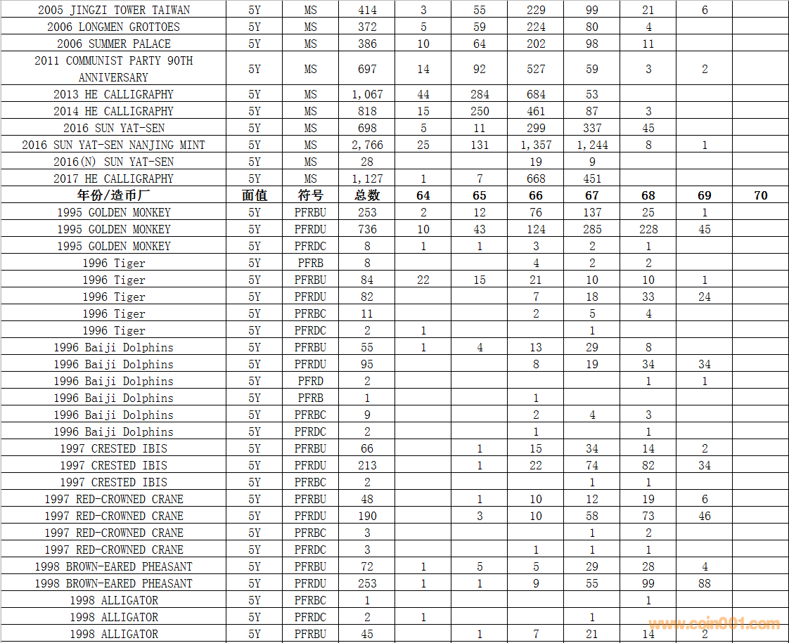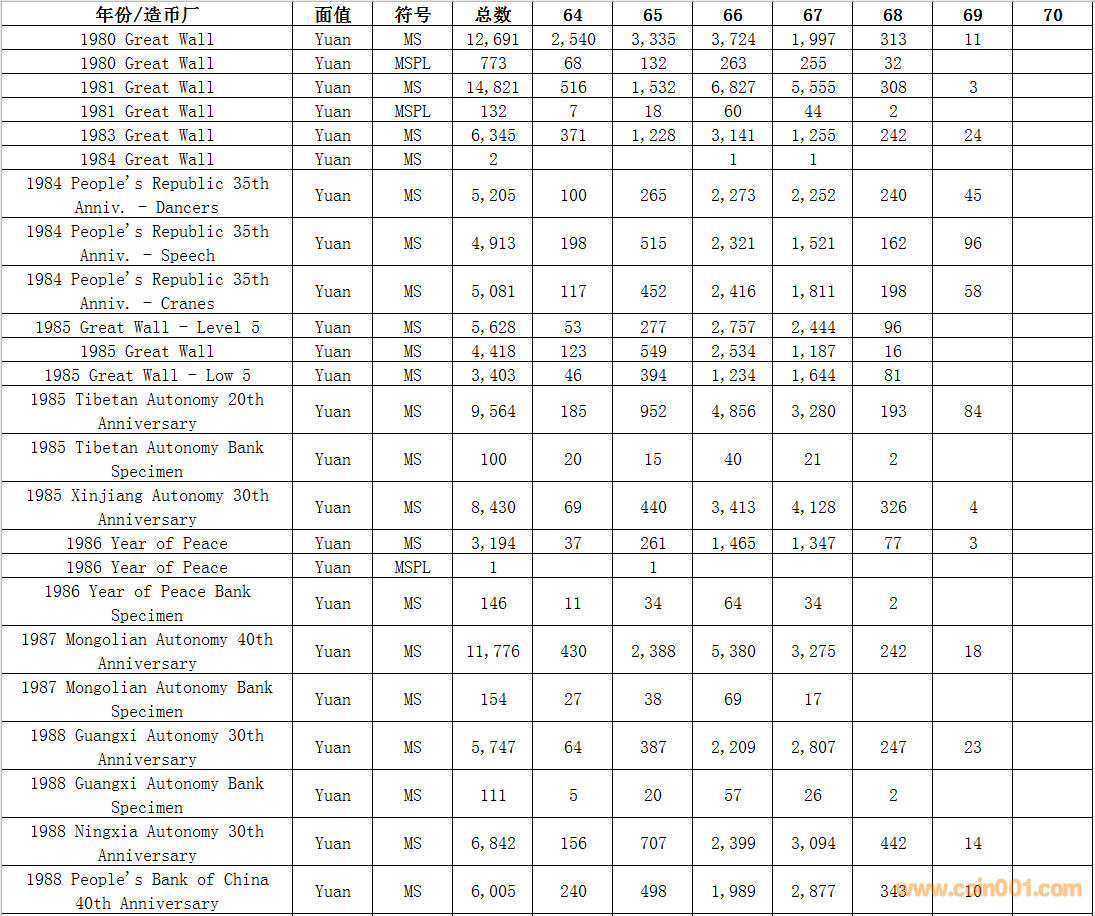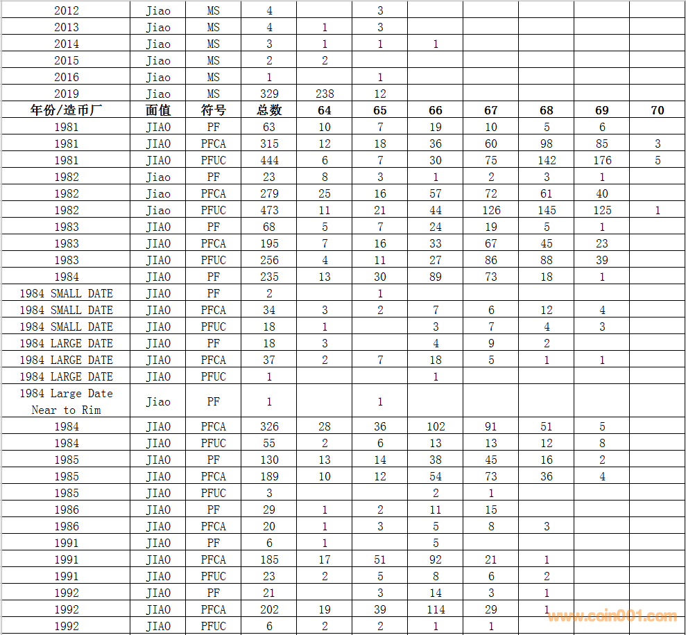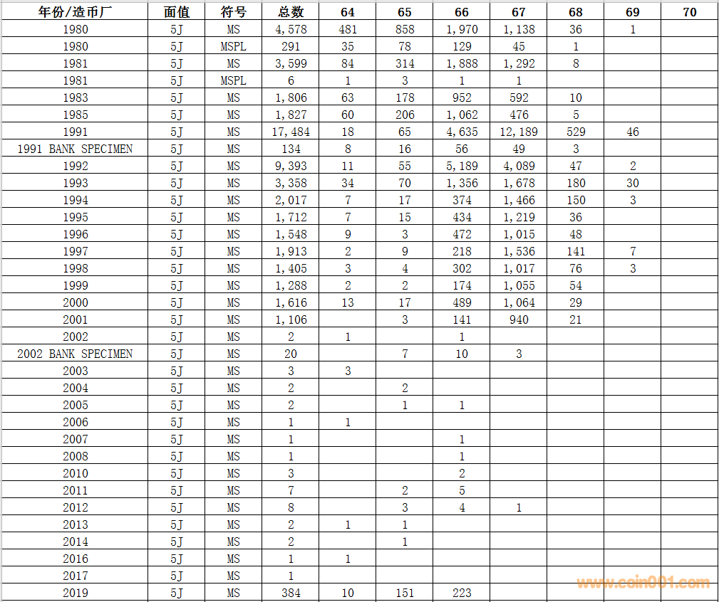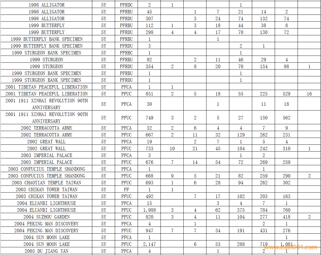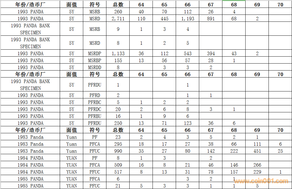 NGC硬幣評級數(shù)量報告
