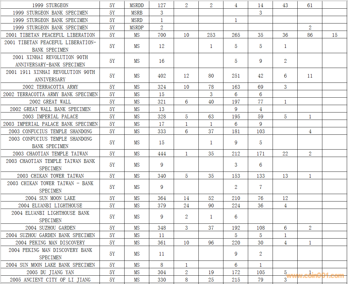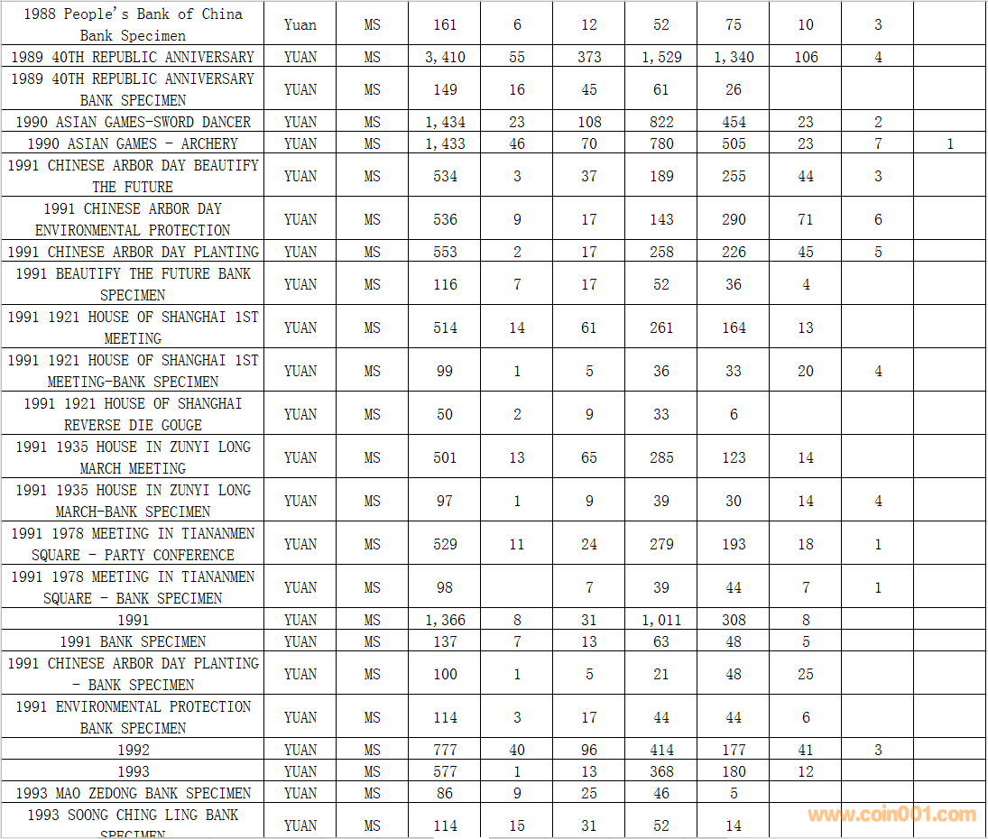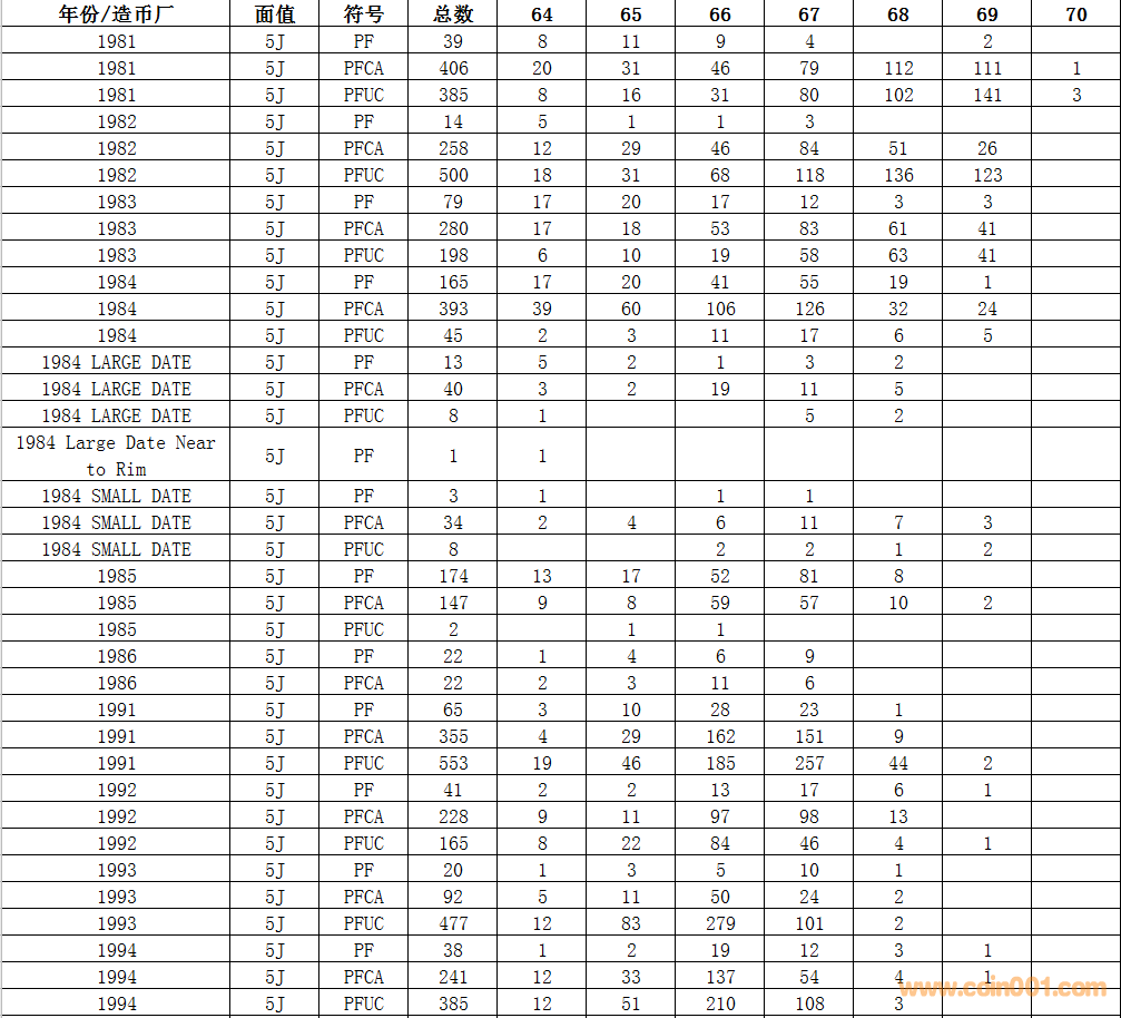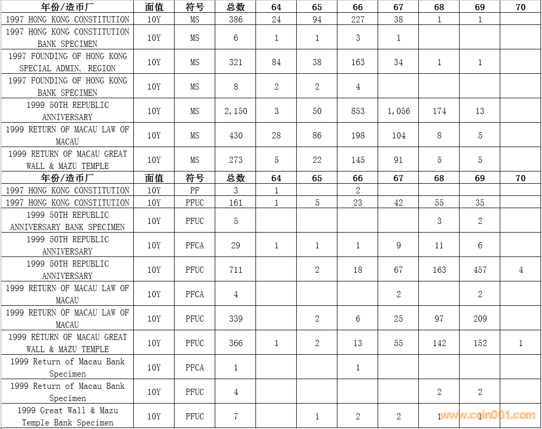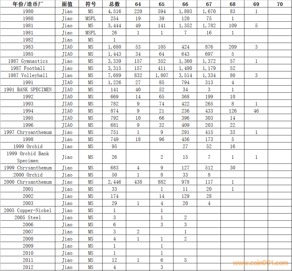 NGC硬幣評級數(shù)量報告