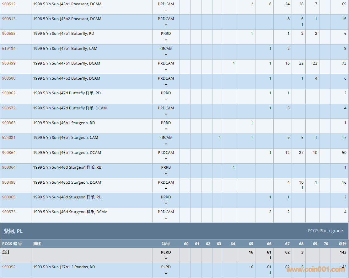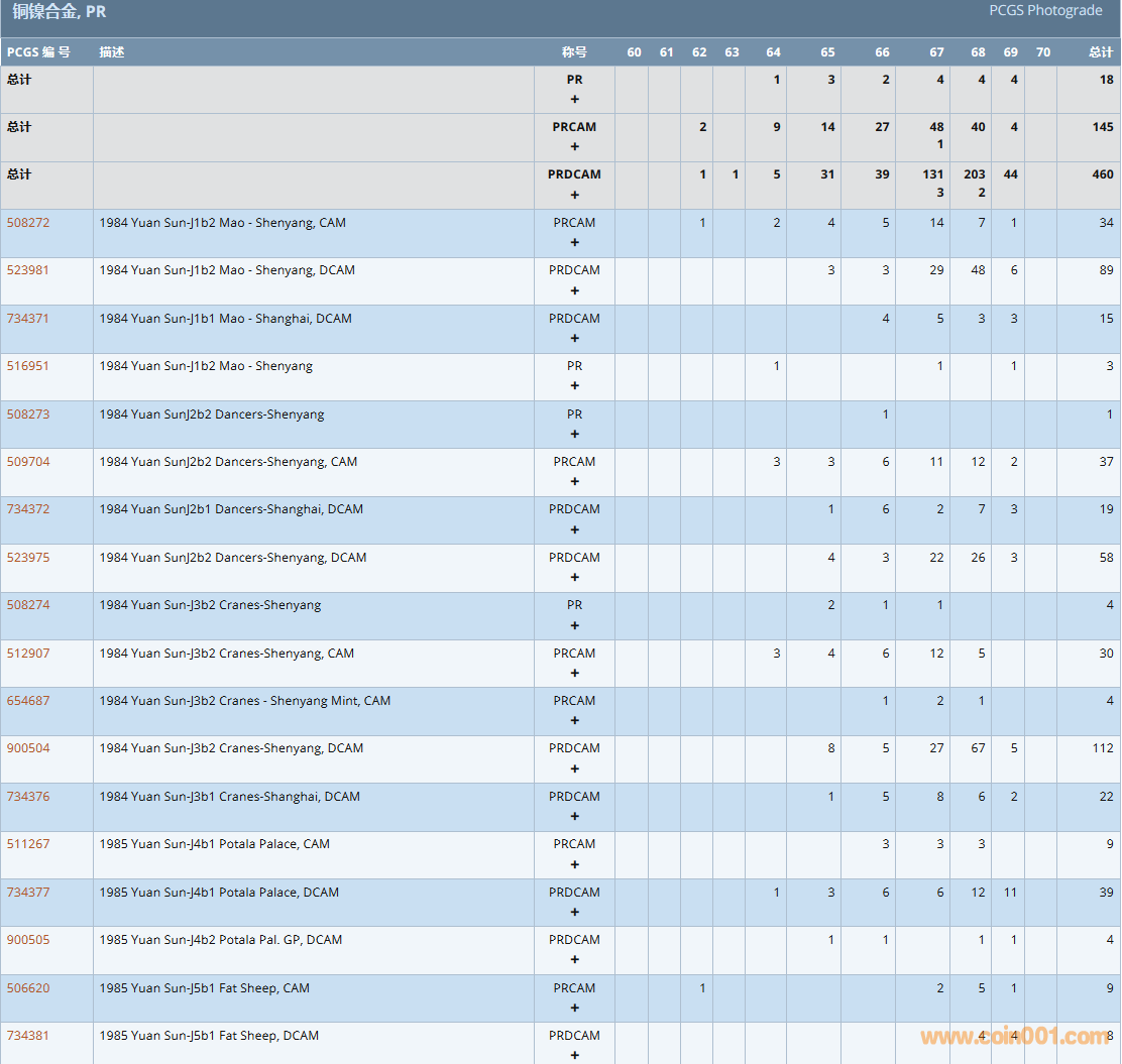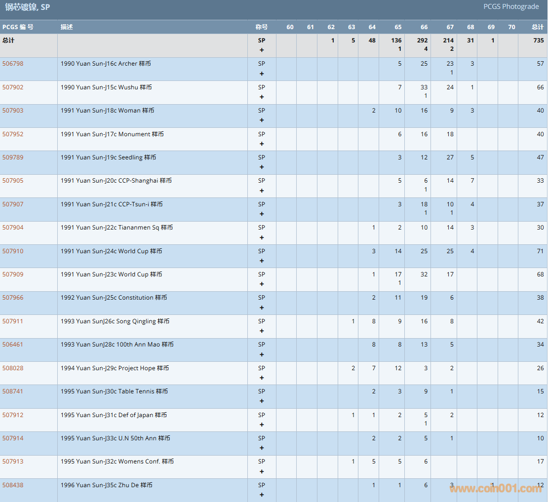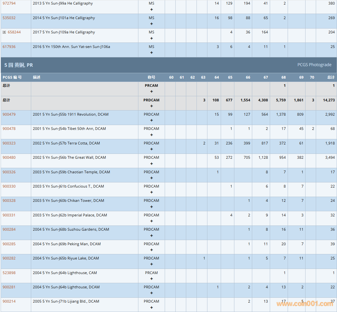 PCGS硬幣評(píng)級(jí)數(shù)量報(bào)告( ..
