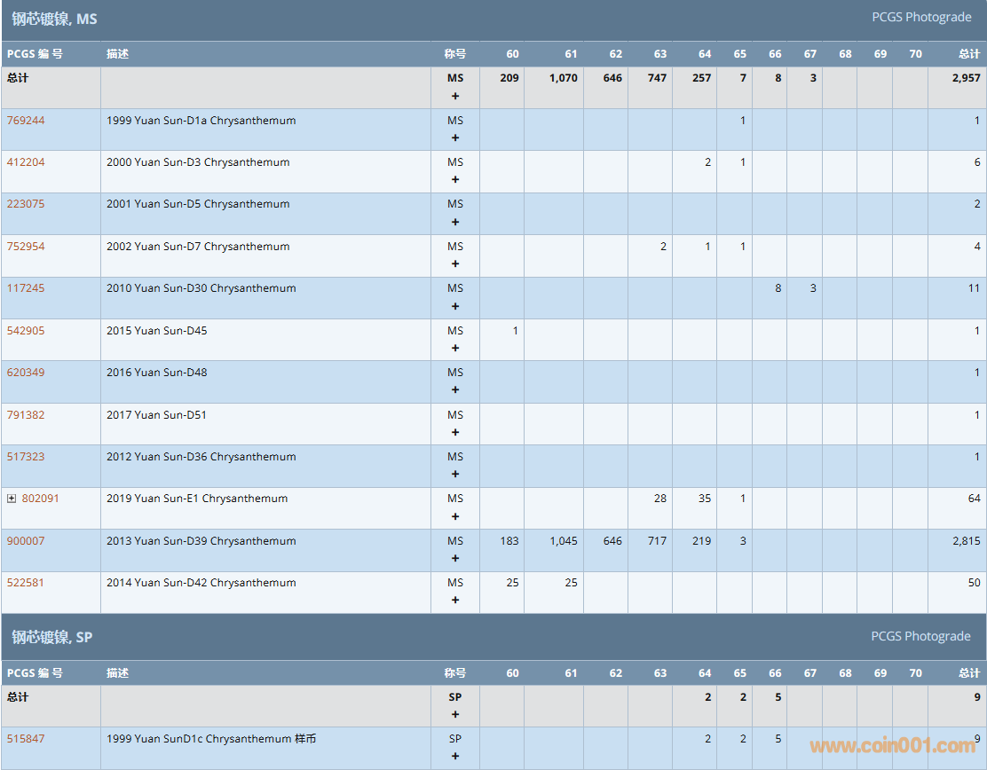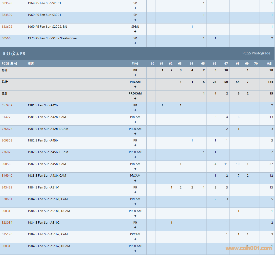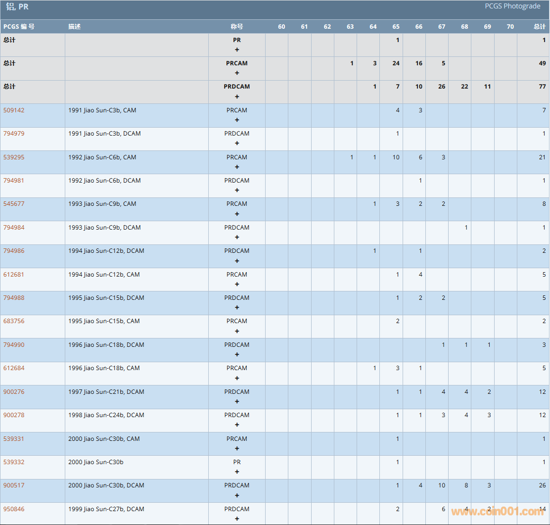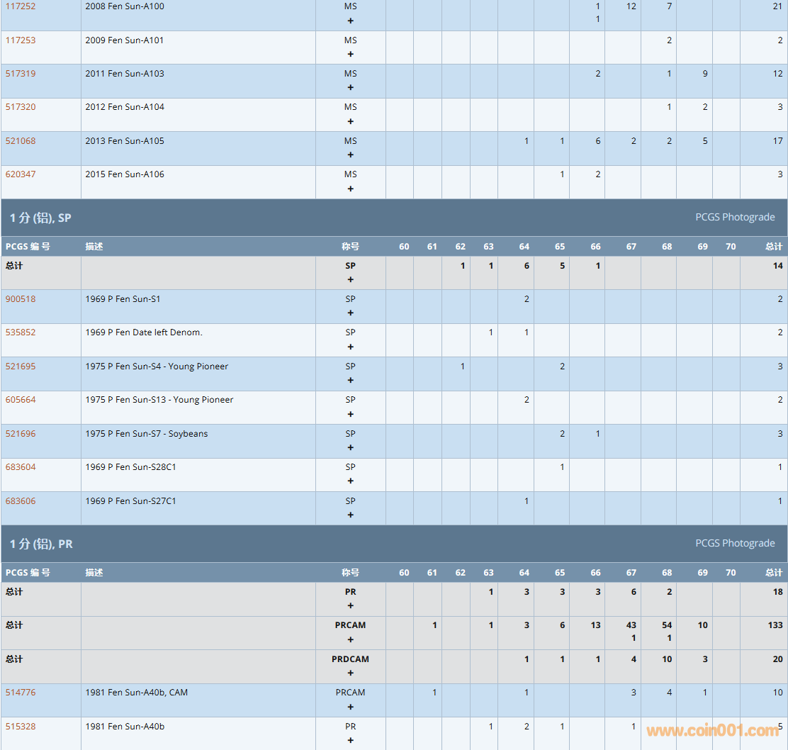PCGS硬幣評(píng)級(jí)數(shù)量報(bào)告( ..
