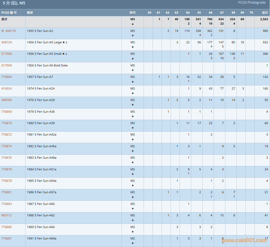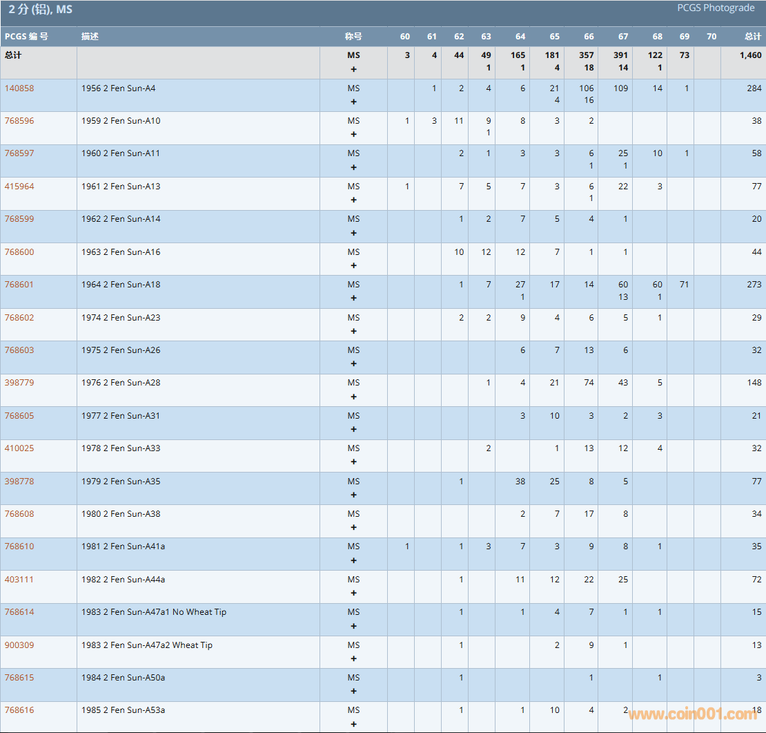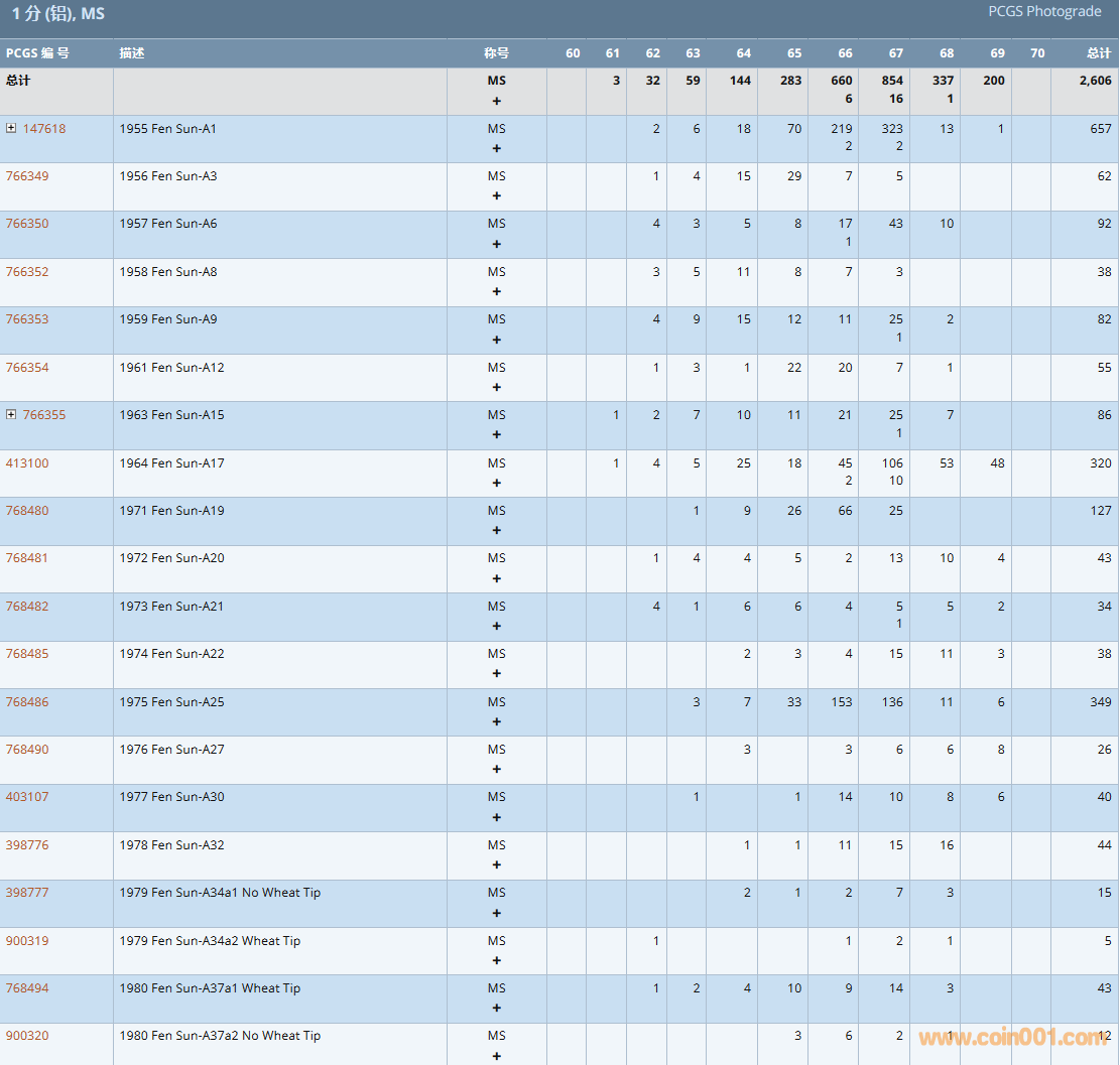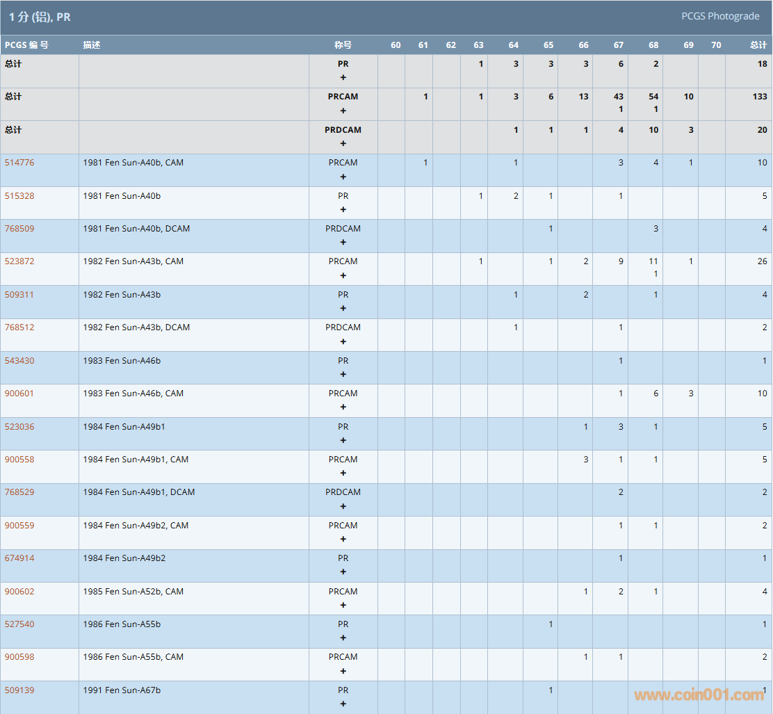 PCGS硬幣評(píng)級(jí)數(shù)量報(bào)告( ..