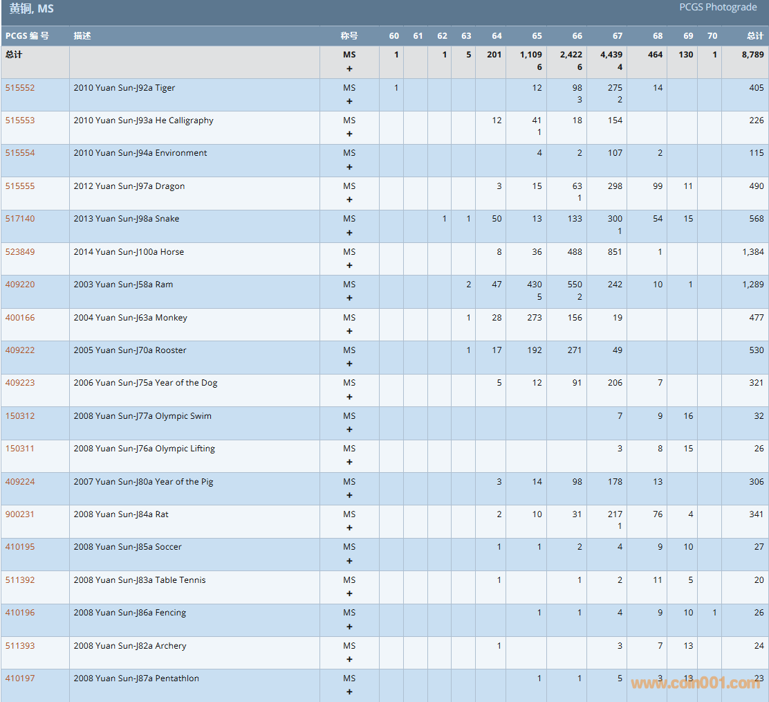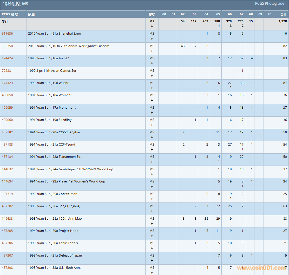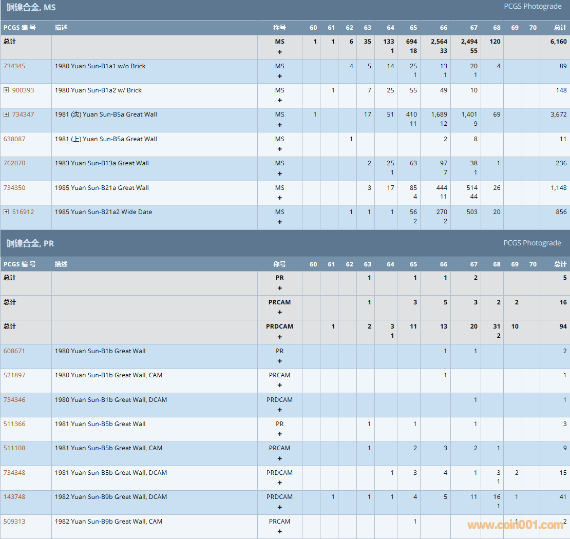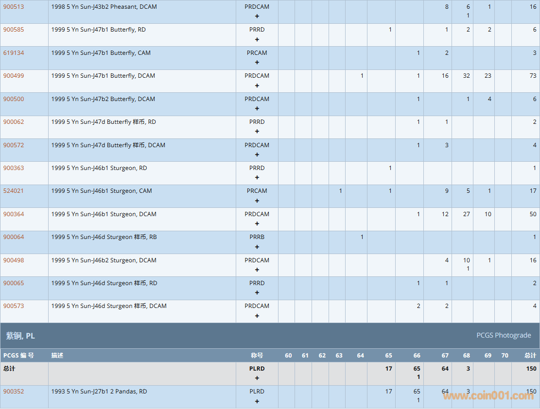 PCGS硬幣評級數(shù)量報告( ..