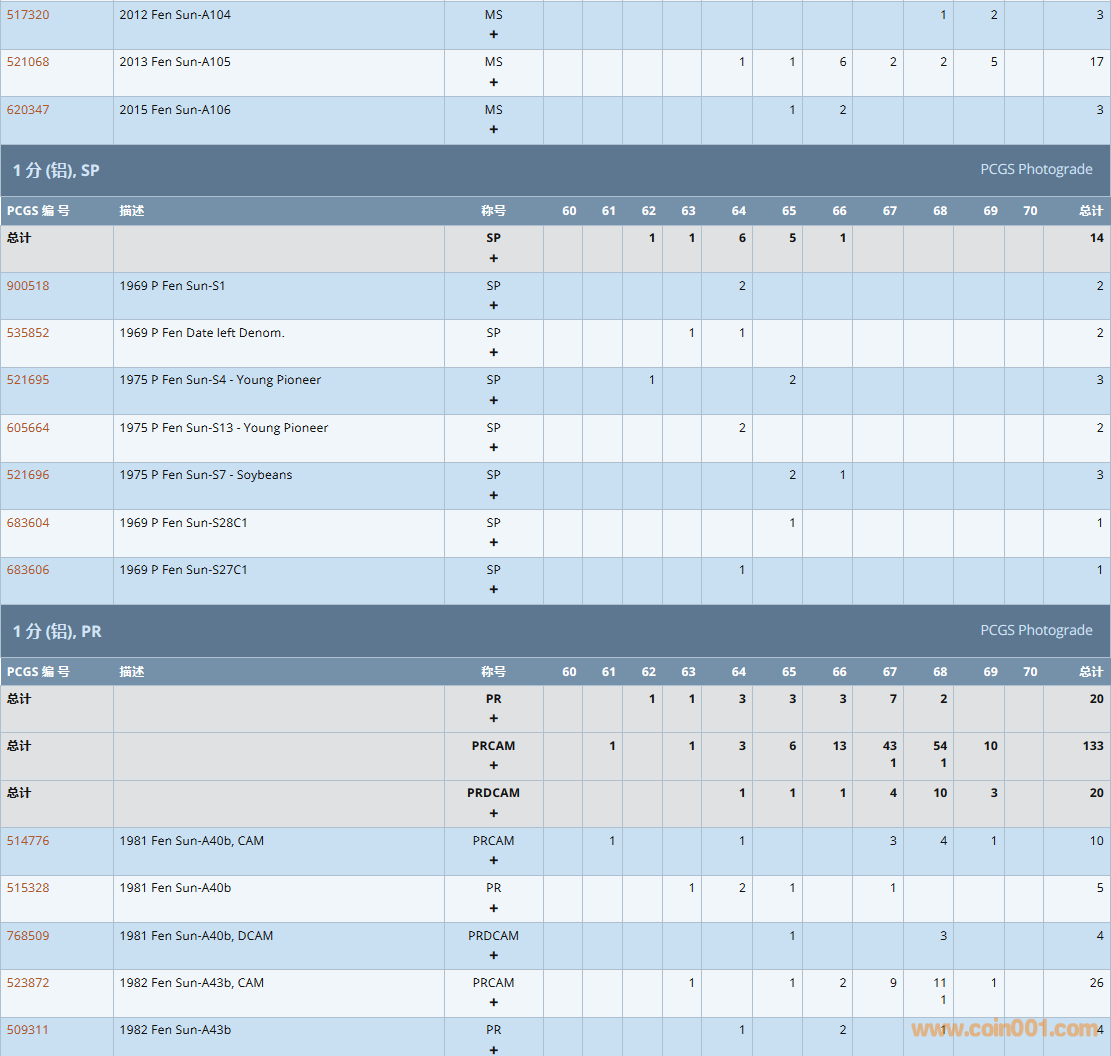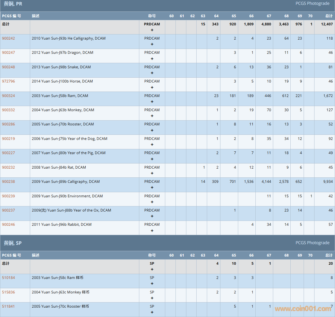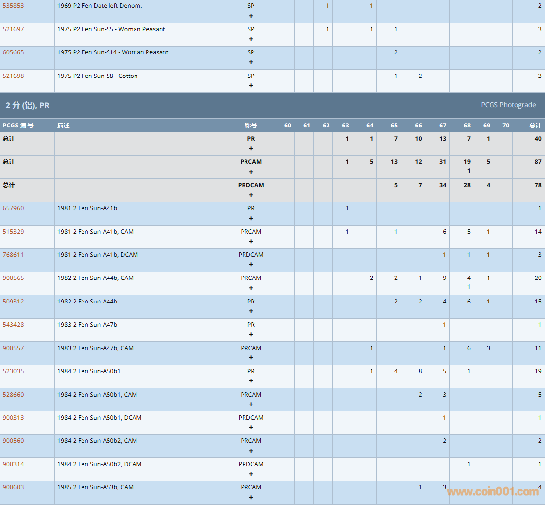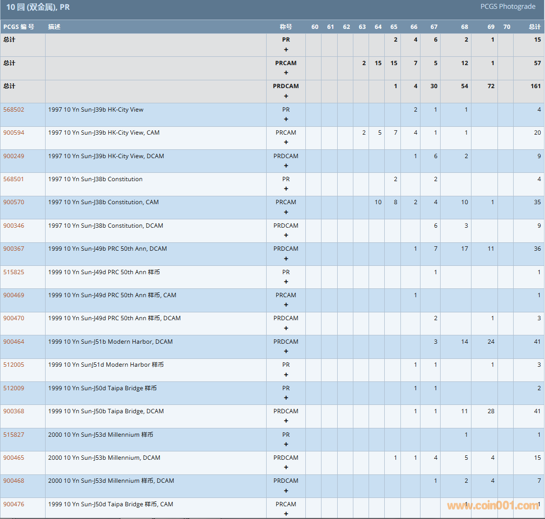 PCGS硬幣評級數(shù)量報告( ..
