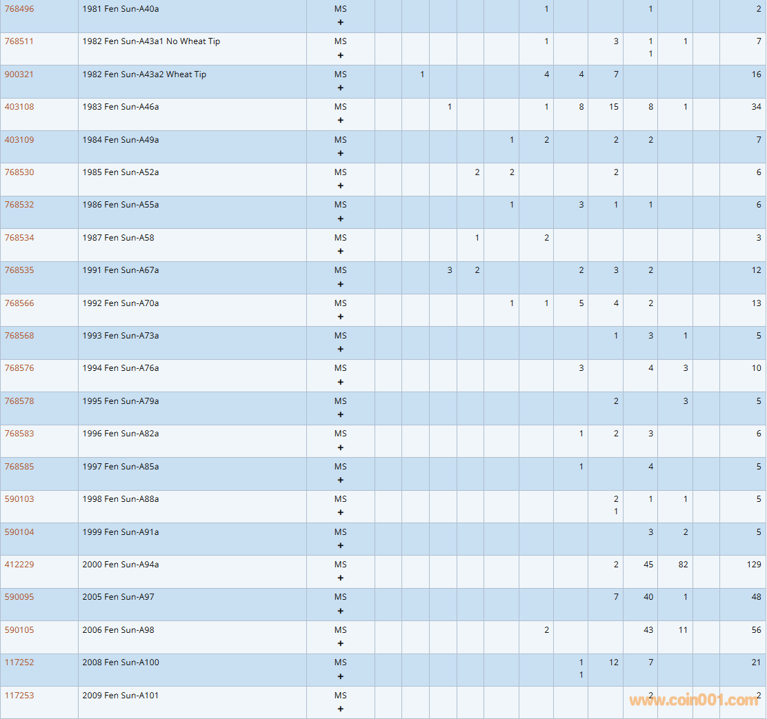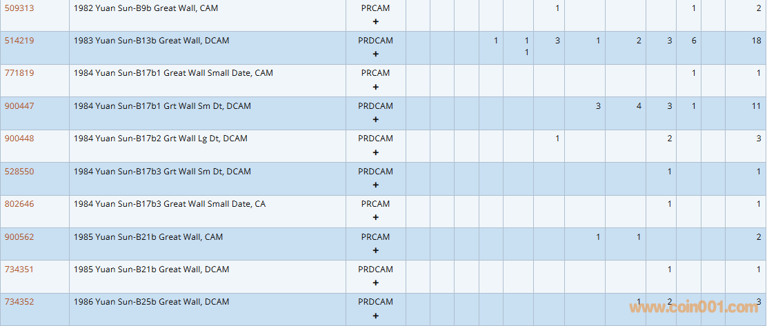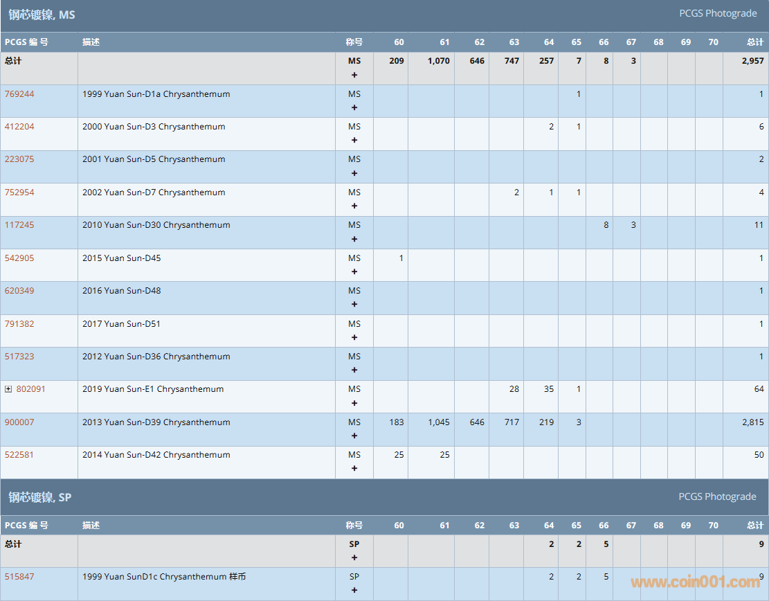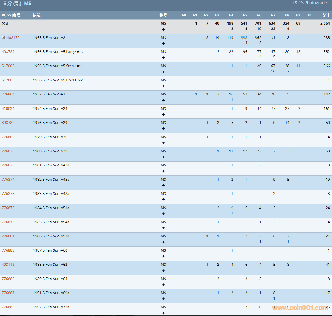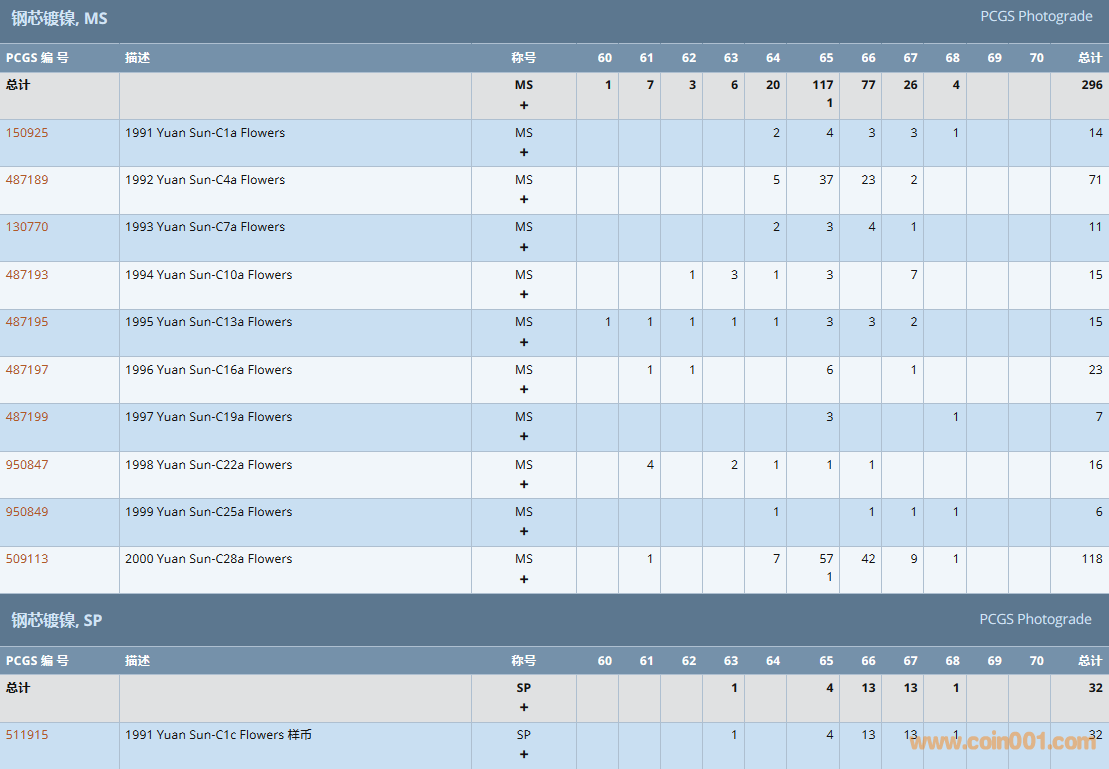 PCGS硬幣評級數(shù)量報告( ..
