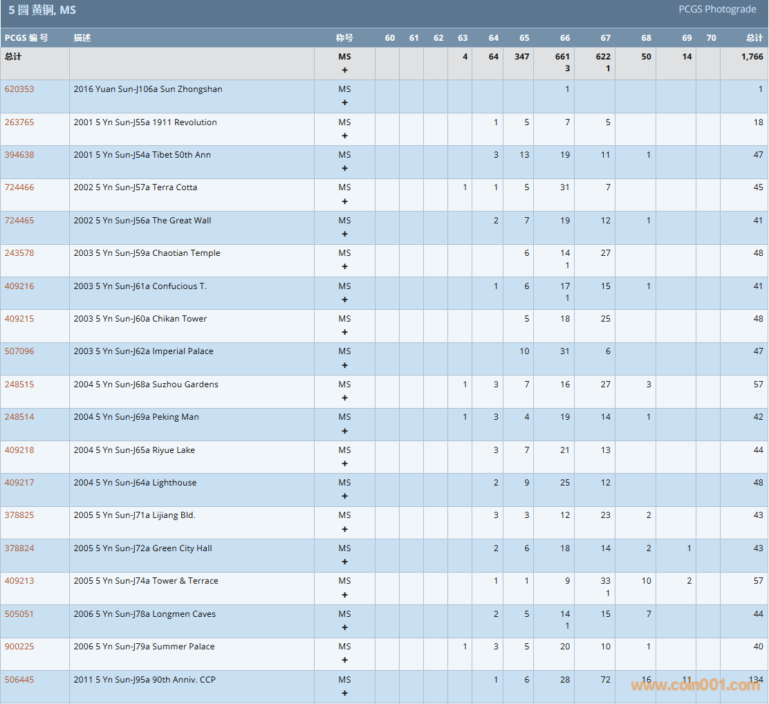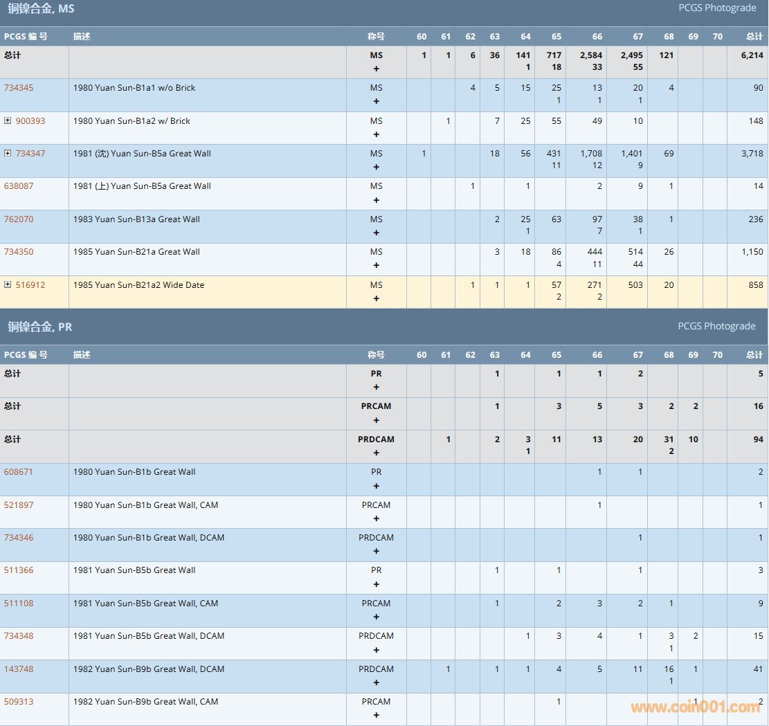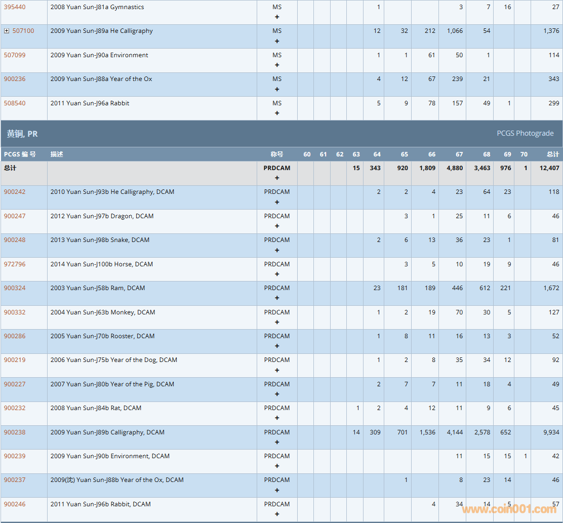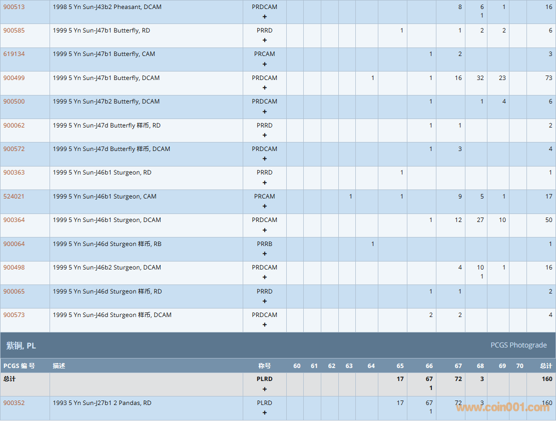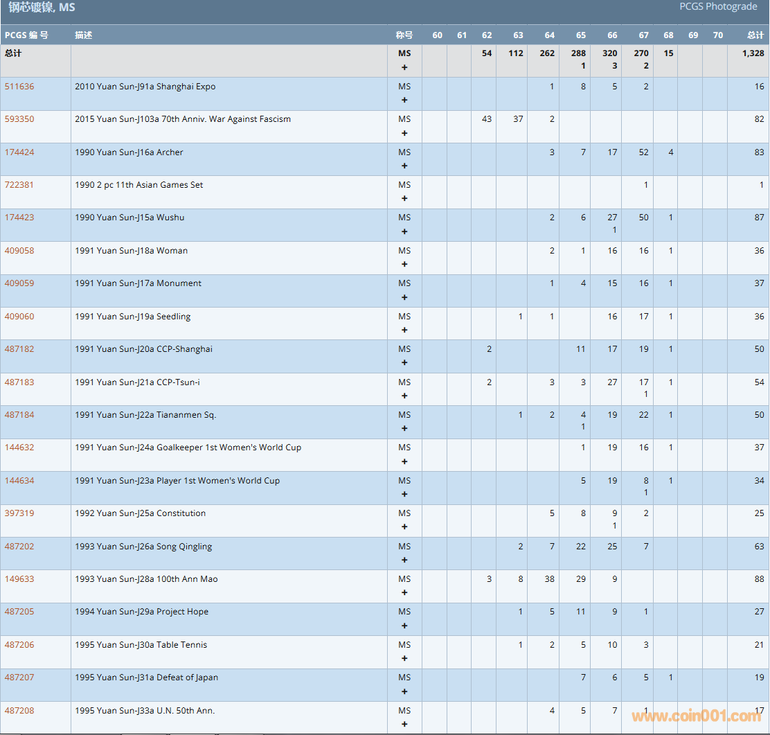 PCGS硬幣評(píng)級(jí)數(shù)量報(bào)告( ..