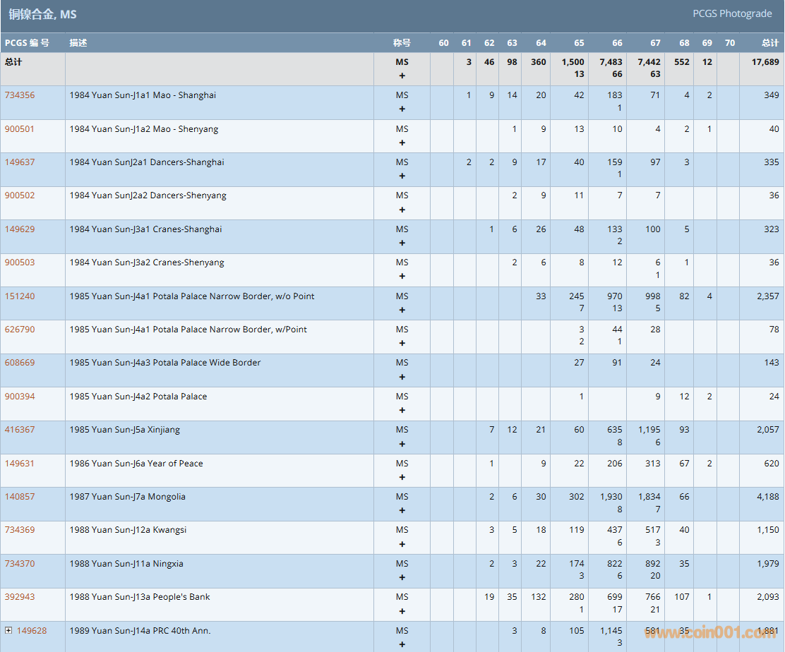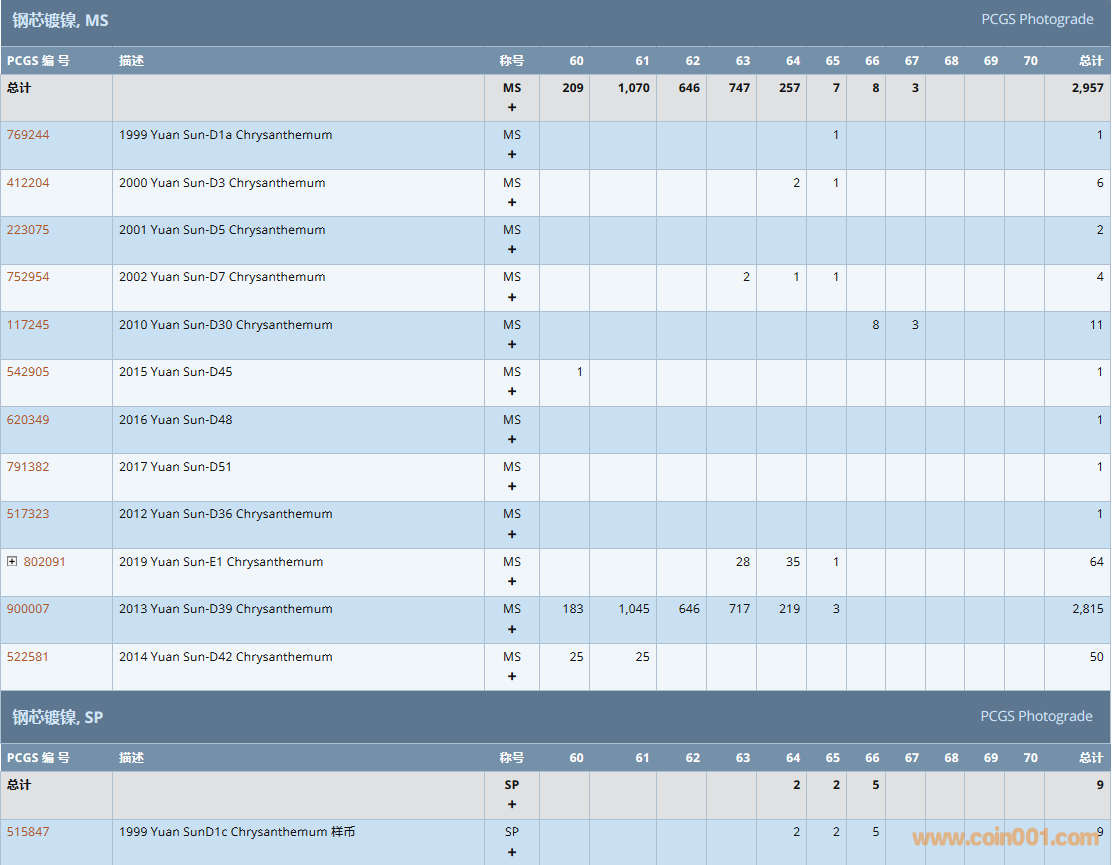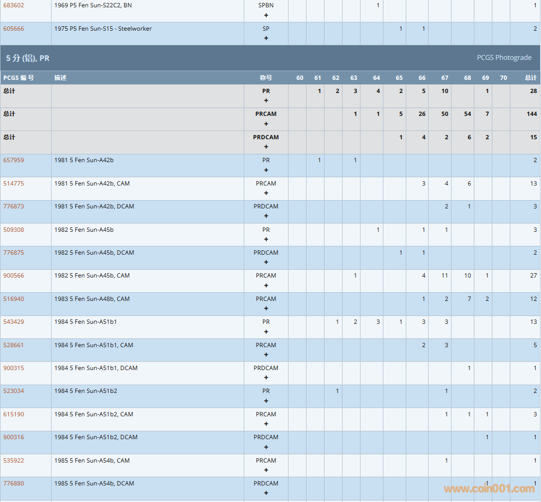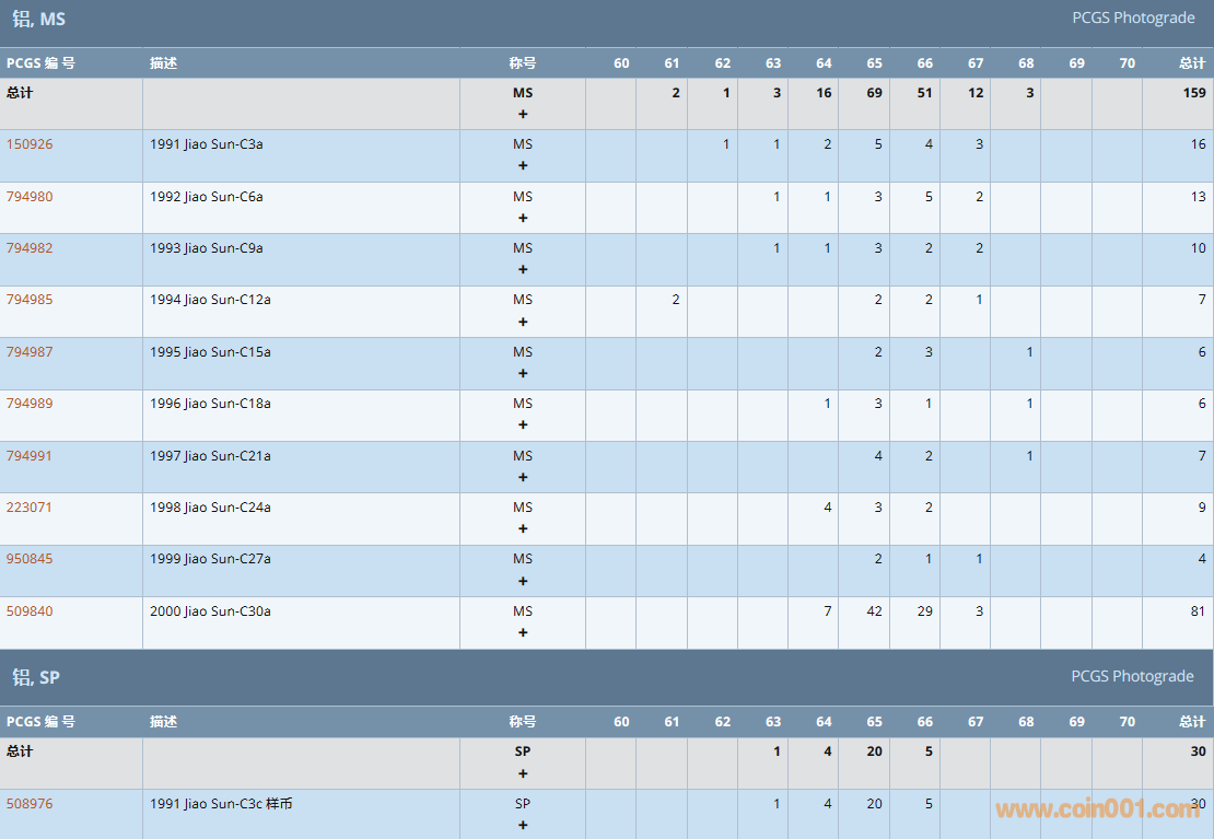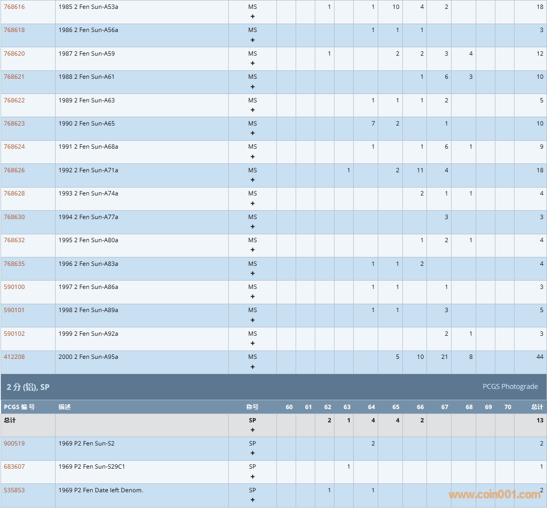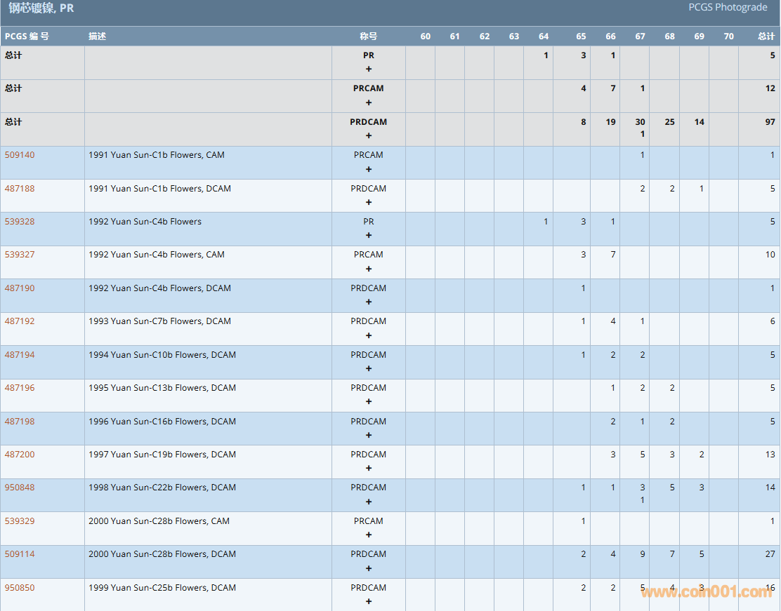 PCGS硬幣評(píng)級(jí)數(shù)量報(bào)告( ..