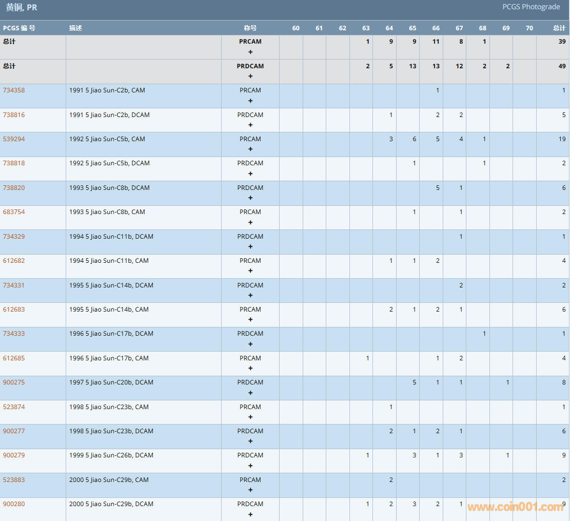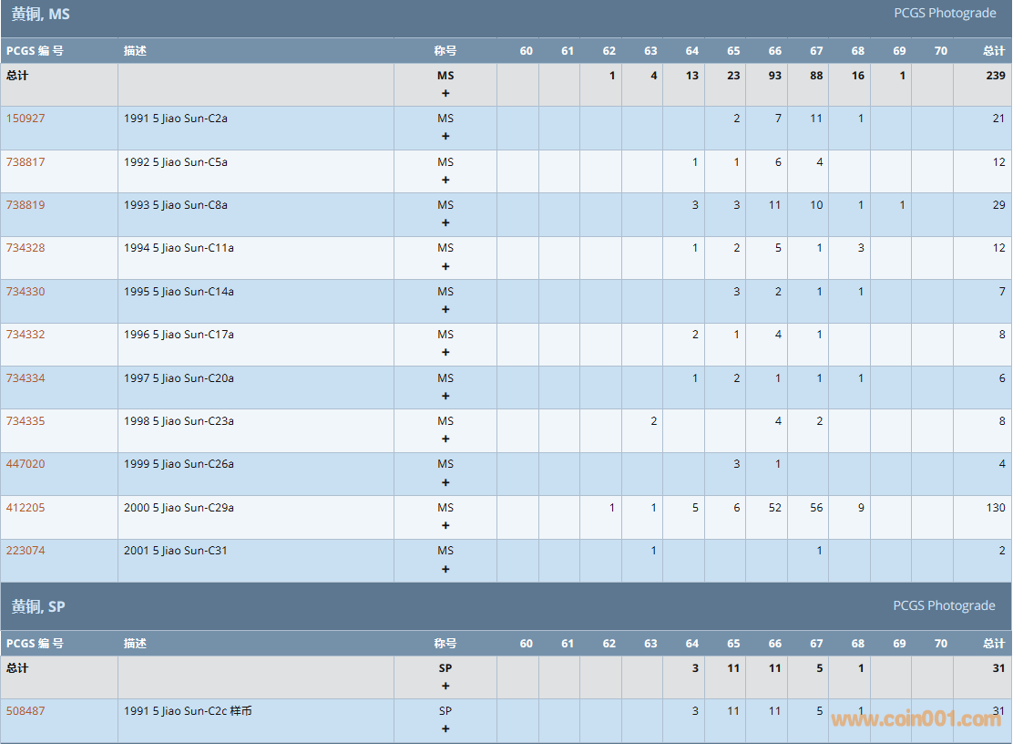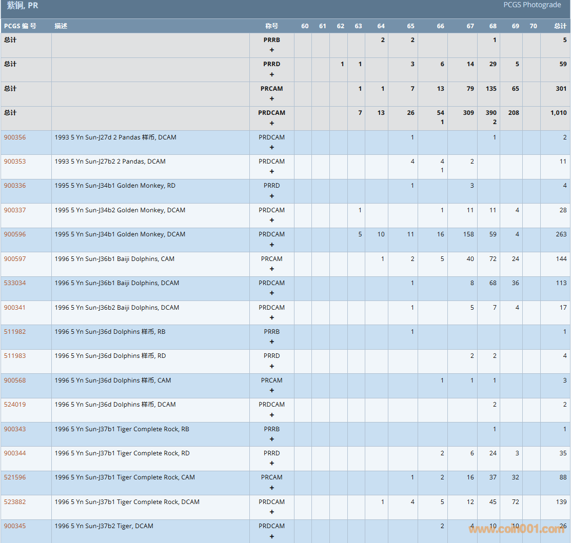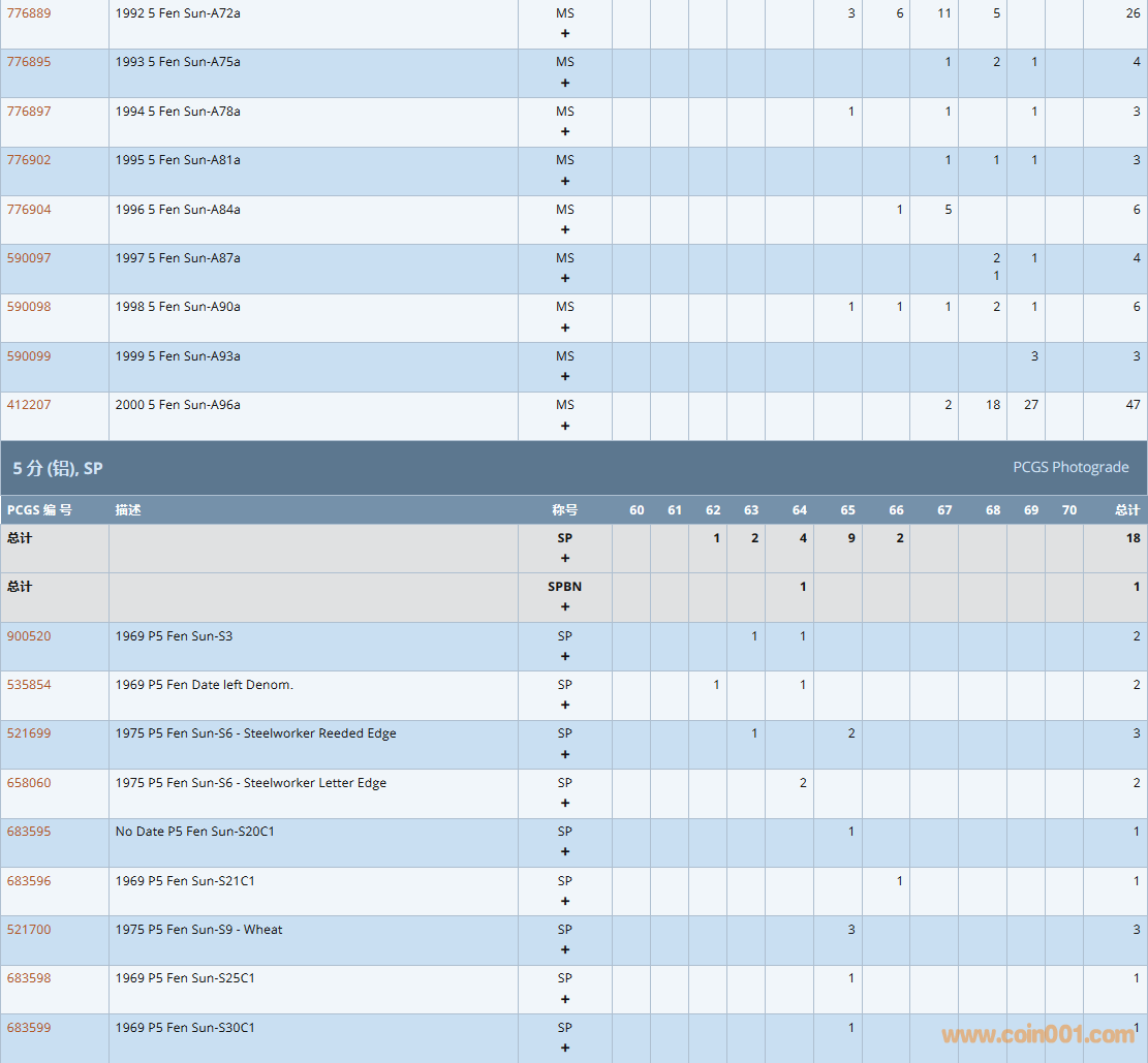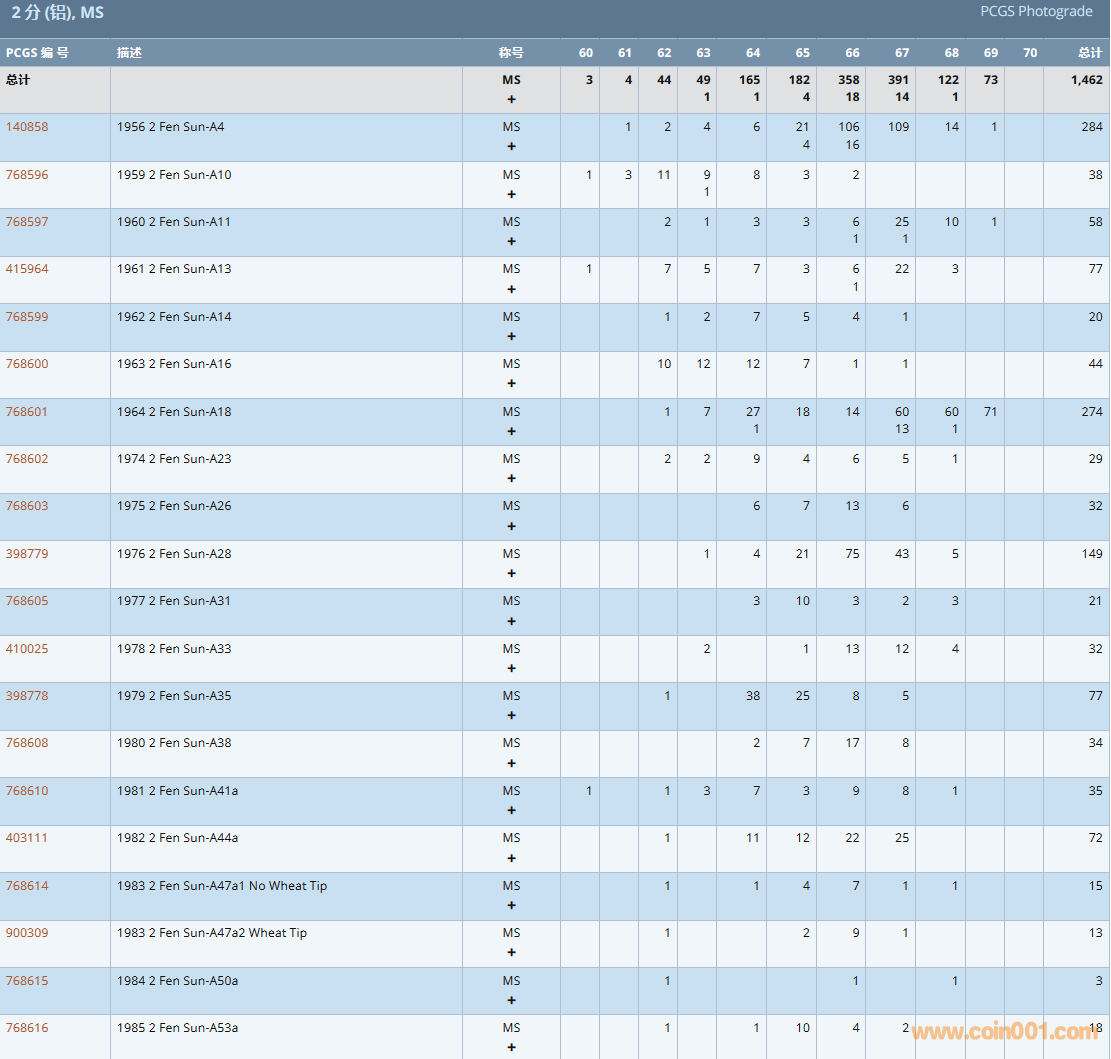 PCGS硬幣評(píng)級(jí)數(shù)量報(bào)告( ..
