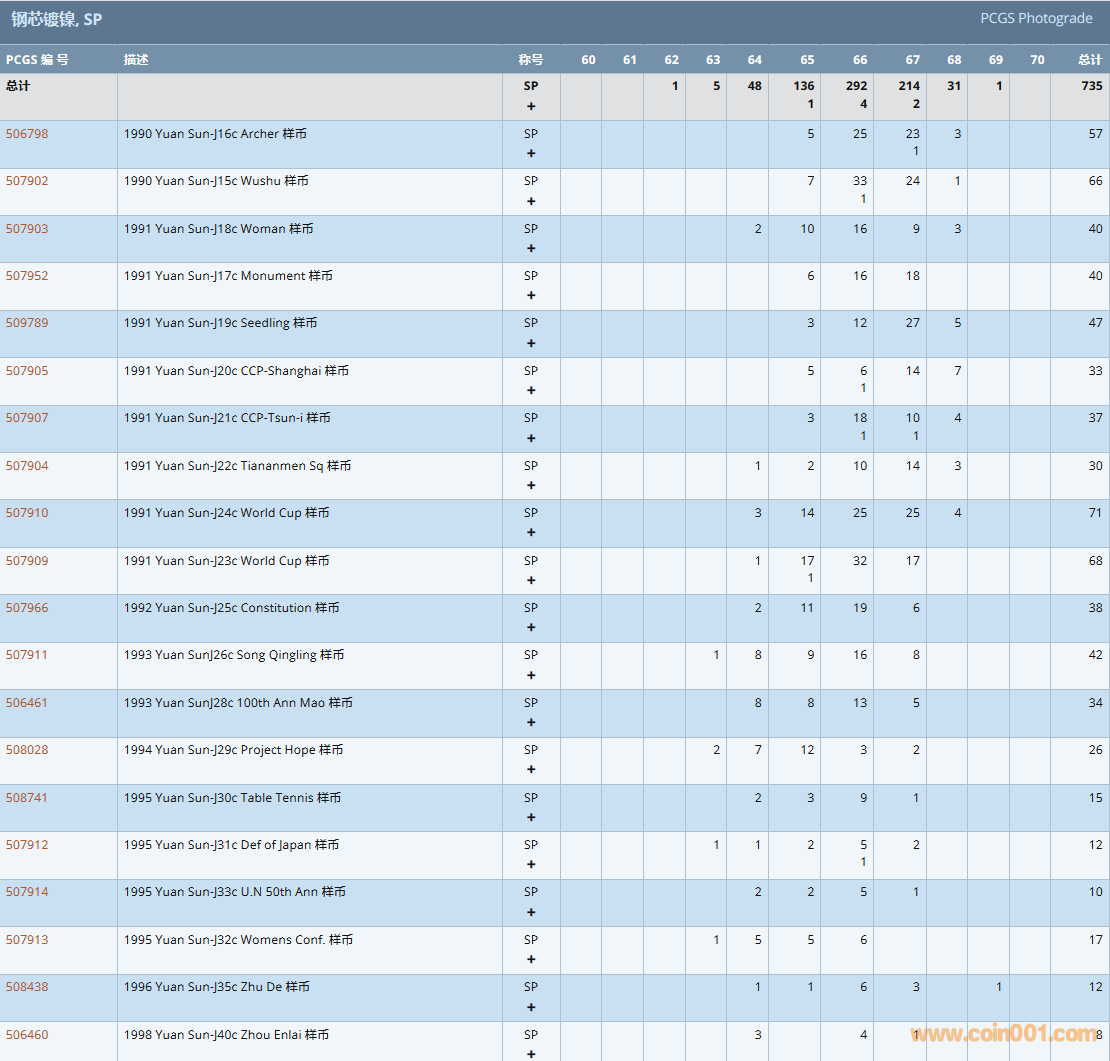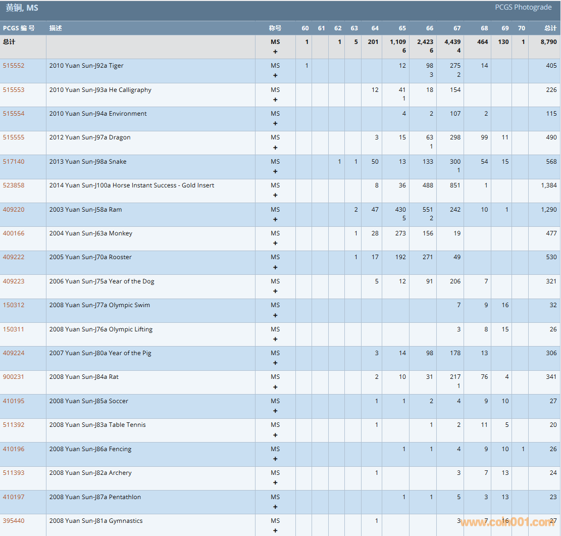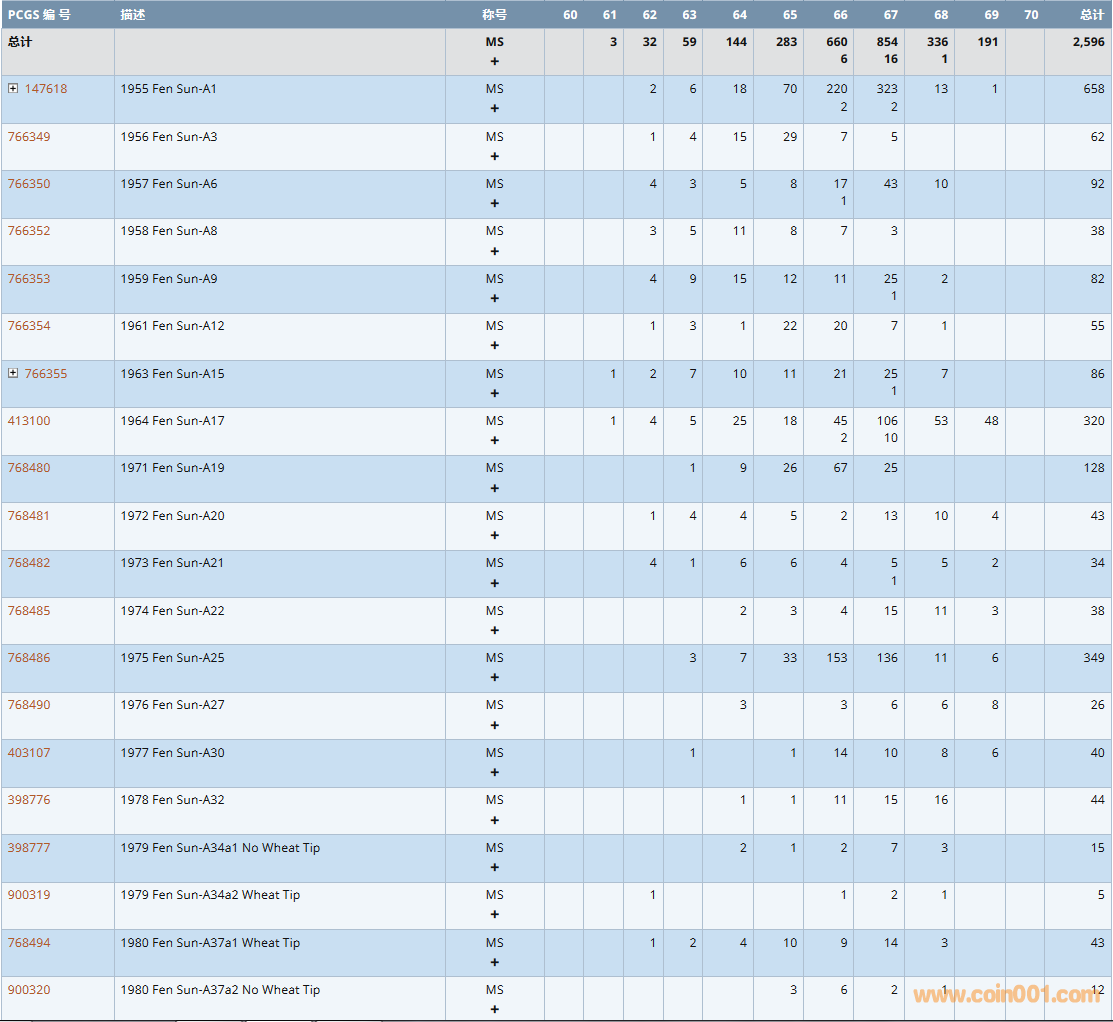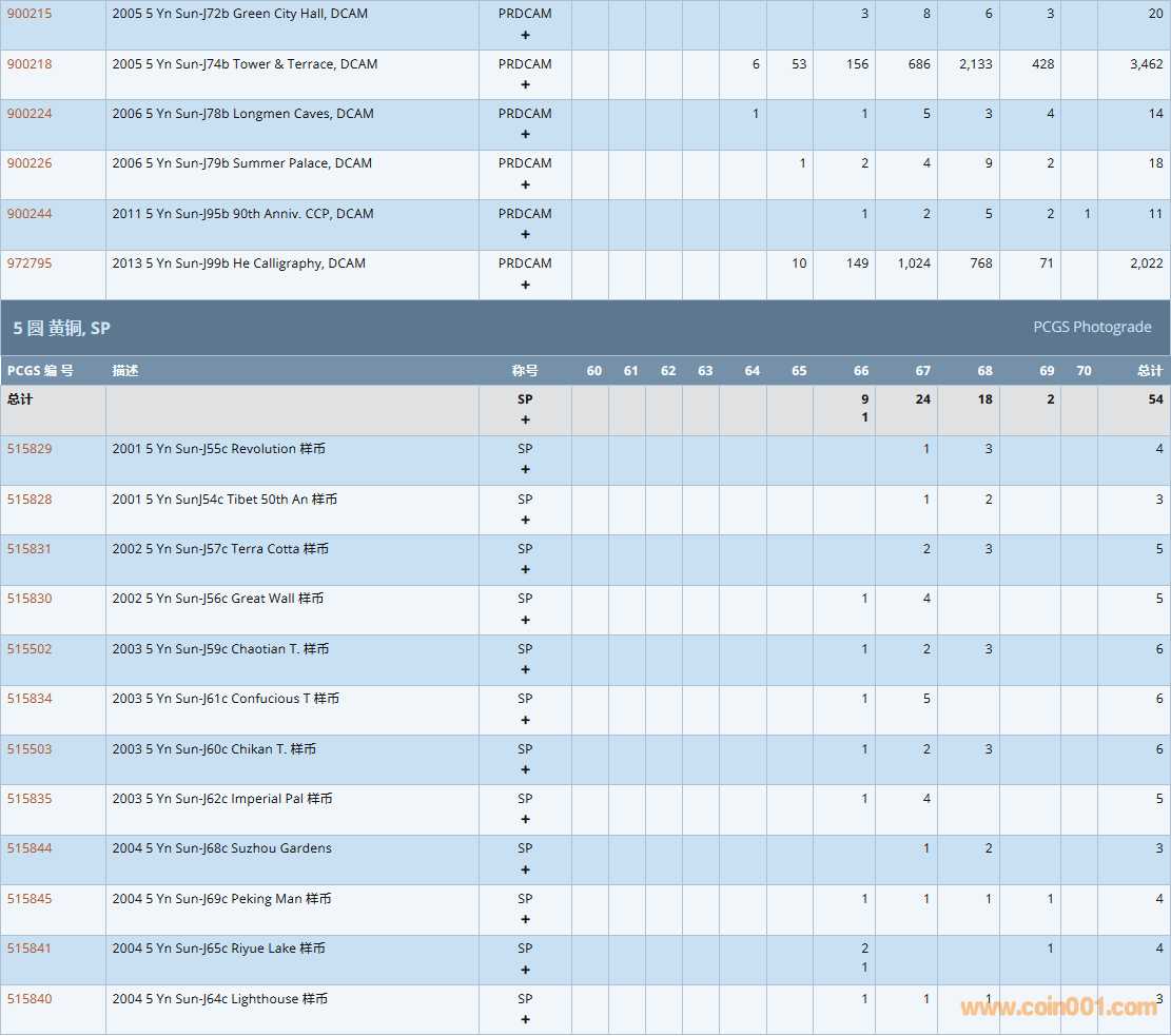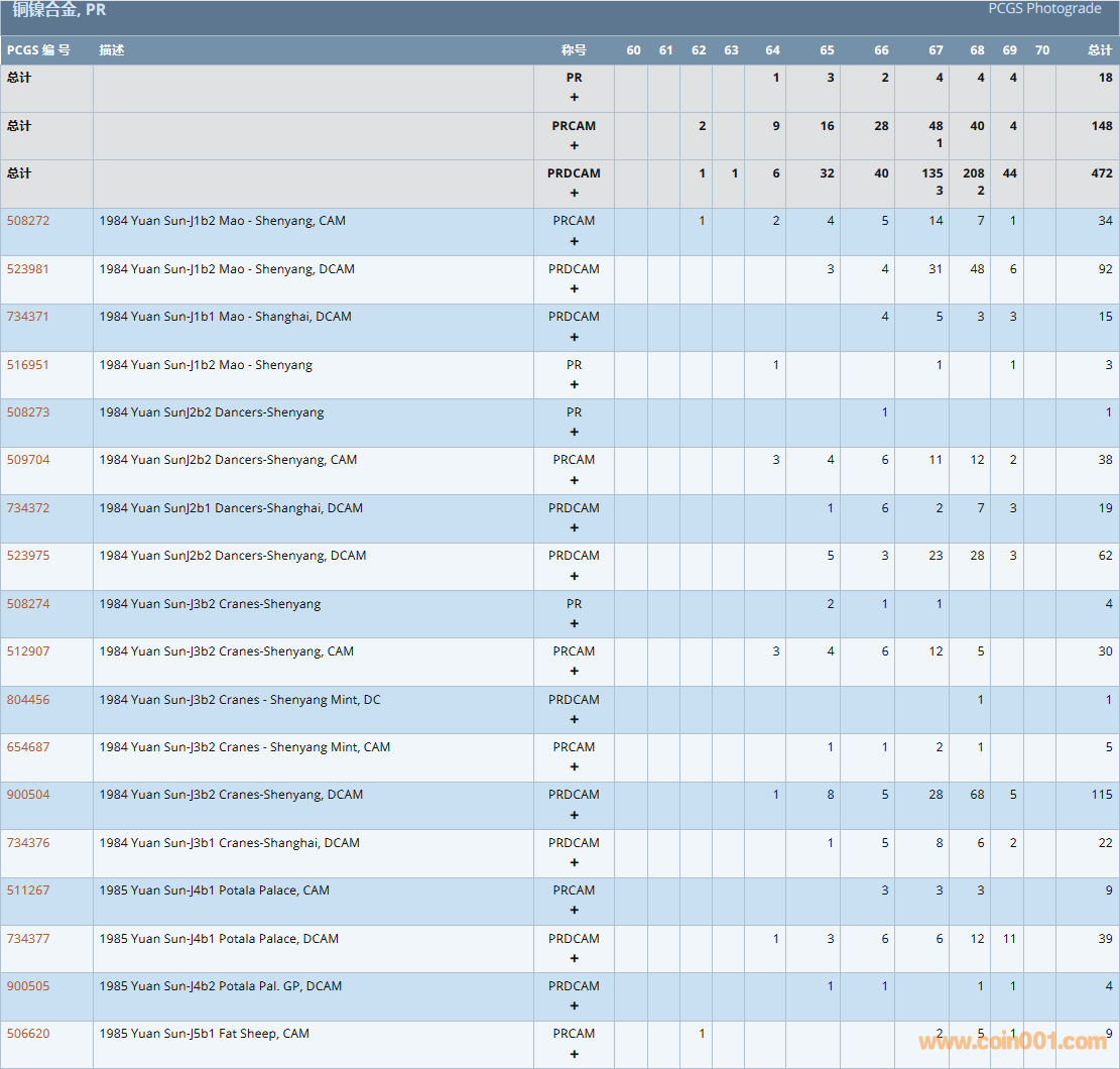 PCGS硬幣評級數(shù)量報告( ..