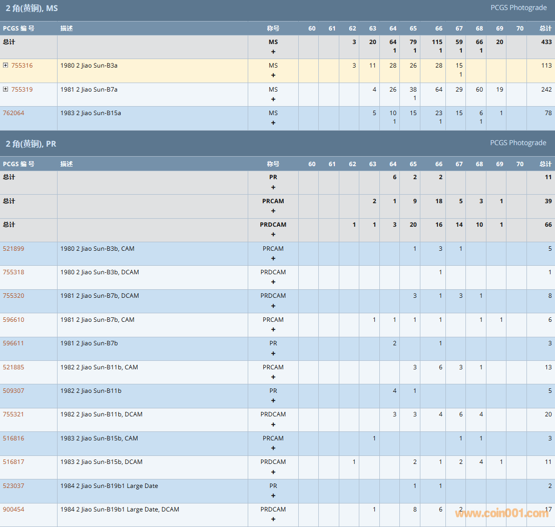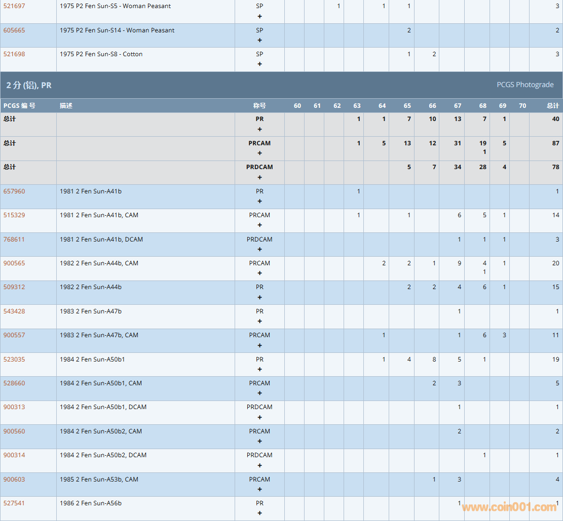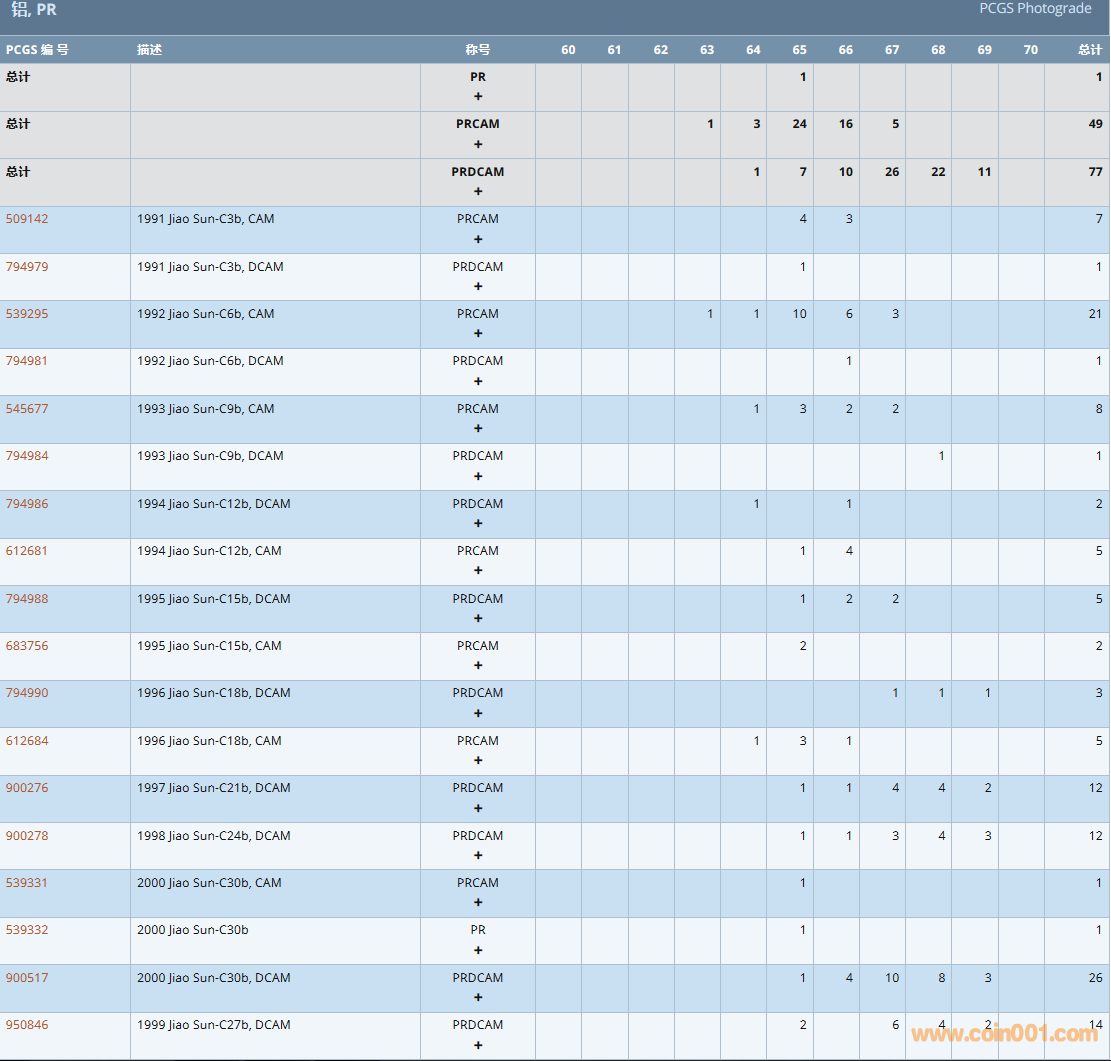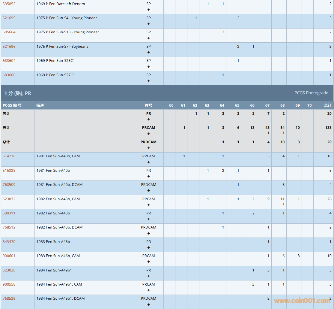 PCGS硬幣評級數(shù)量報告( ..