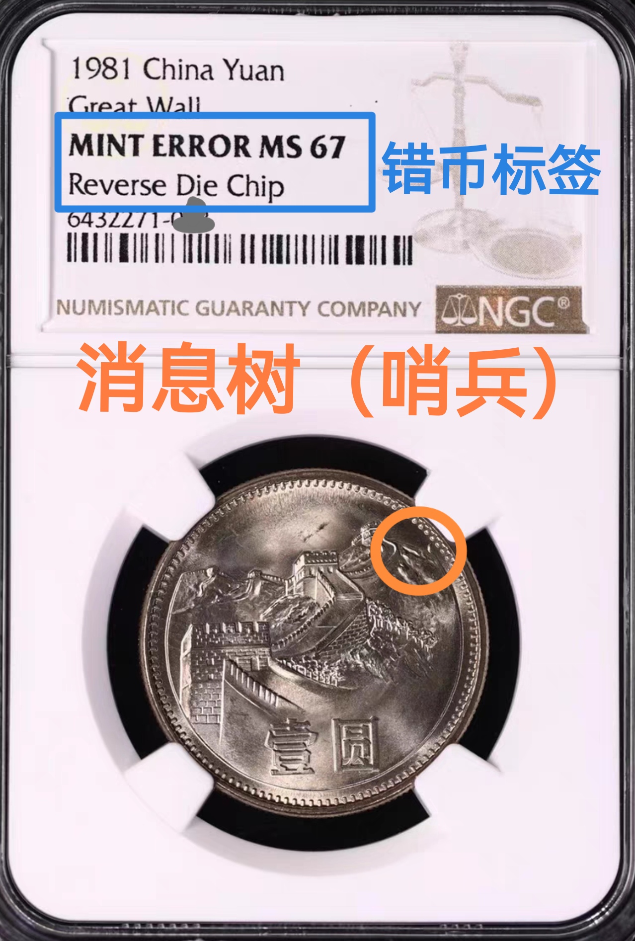 但我們在其他平臺也發(fā)現(xiàn)了極個別的811消息樹版NGC沒給錯標的現(xiàn)象,分數(shù)較高,為68分,68分的評級串號是在給出大面積的錯標之前。對于這一現(xiàn)象,我們分析可能是NGC還沒有給錯幣標簽的意識。