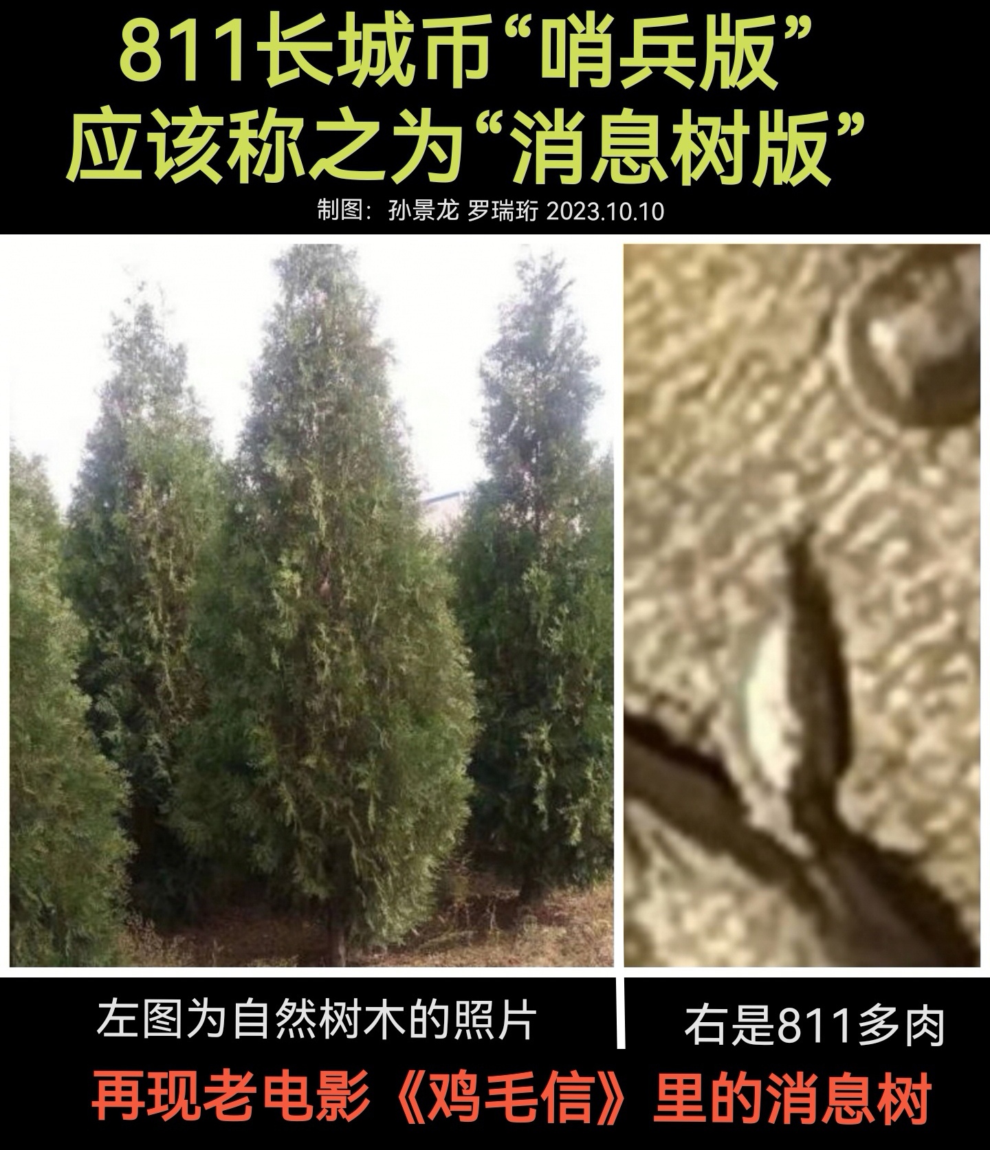 沈陽811長城幣側柏樹版,簡稱“811消息樹版”。