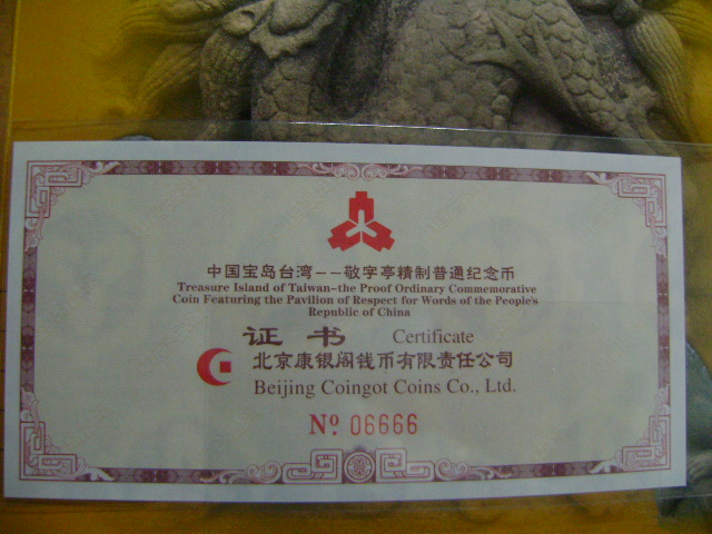 收藏精制紀(jì)念幣的趣味證書感覺是心情愉悅的過程,康銀閣裝幀的精制幣目前僅2萬套,總量非常少,所以這兩萬個(gè)證書號(hào)里面有20個(gè)4同的獅子號(hào),能碰上實(shí)屬緣份??点y閣證書由于后期都有熒光防偽,所以在熒光燈下可見康銀閣的防偽熒光水印,非常漂亮.準(zhǔn)備為頂級(jí)品相評(píng)級(jí)幣做"嫁妝""永久珍藏.本來想上傳證書對(duì)應(yīng)69分的評(píng)級(jí)幣圖片,大部分評(píng)級(jí)幣還在美國回來的途中.[ 此帖被廣天藏品在2011-11-11 00:40重新編輯 ]