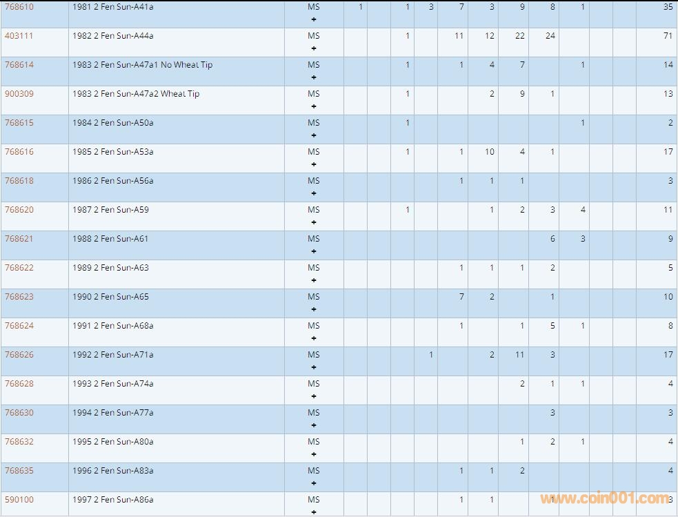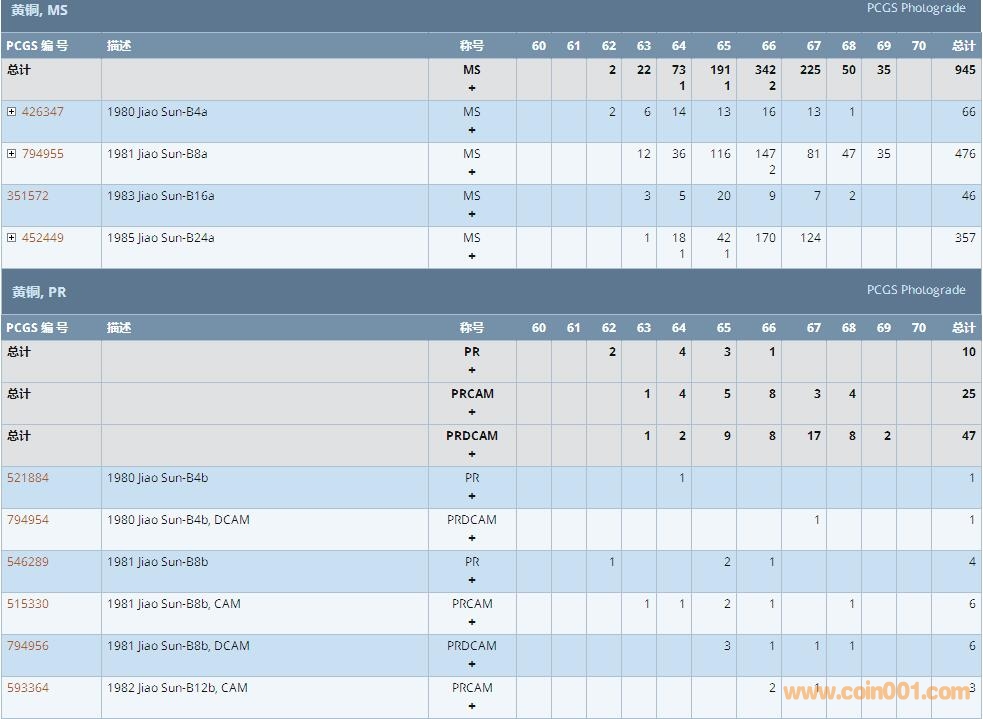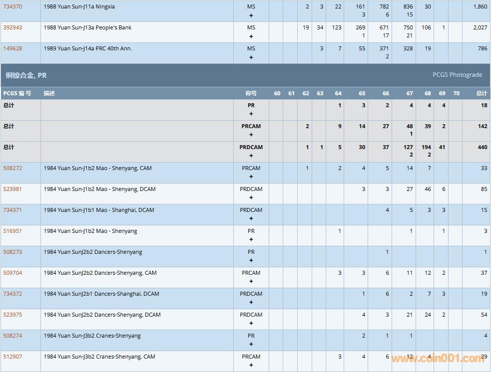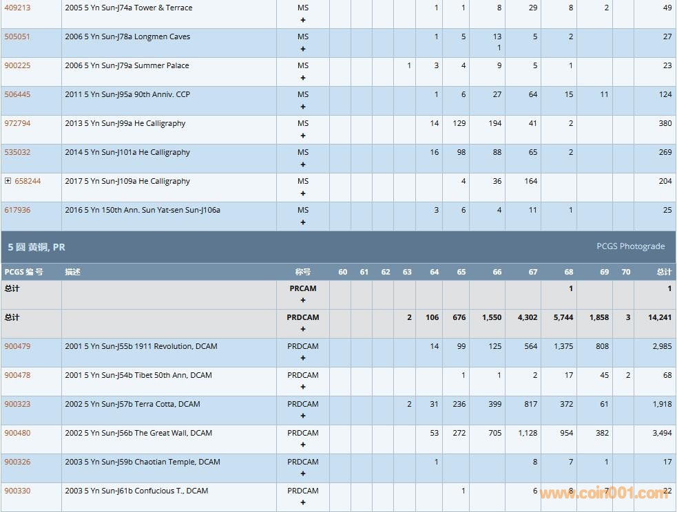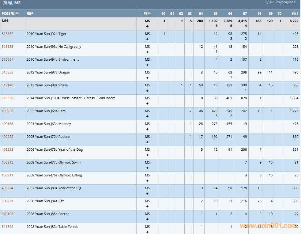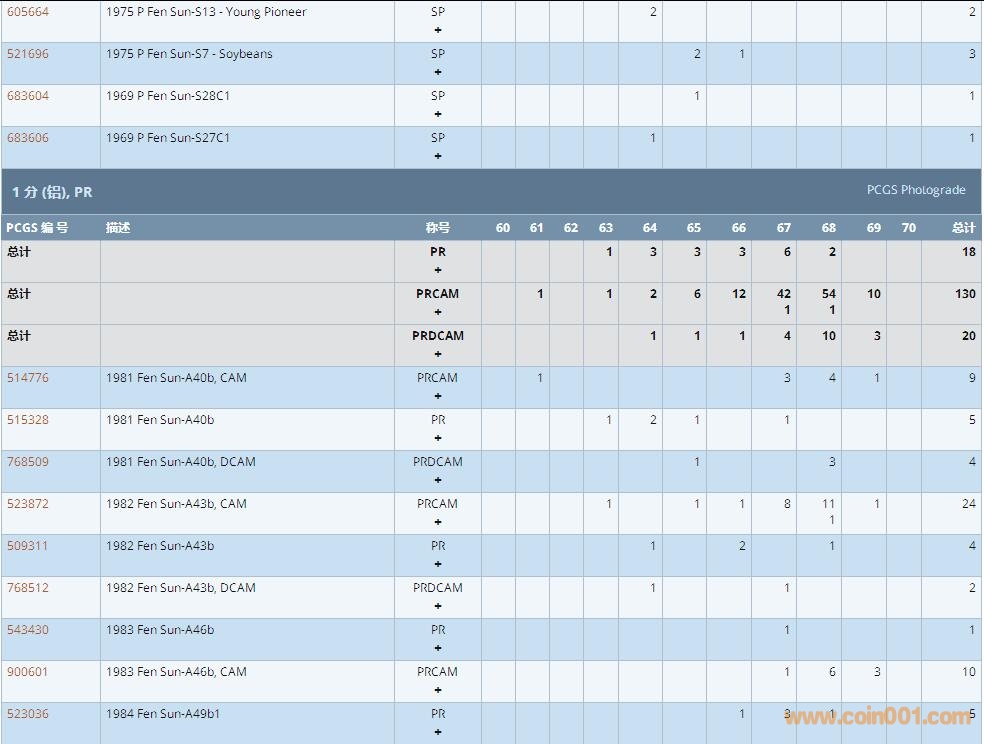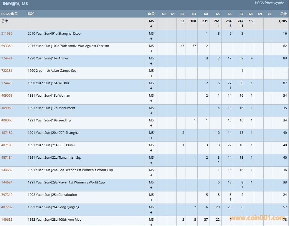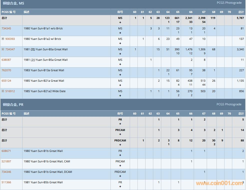 PCGS硬幣評(píng)級(jí)數(shù)量報(bào)告 ..