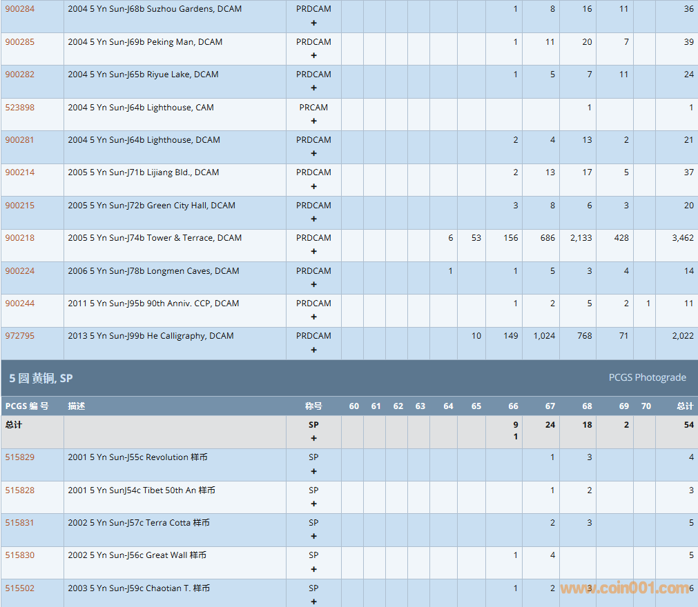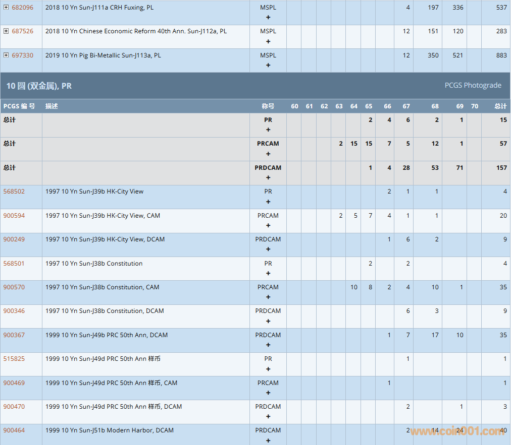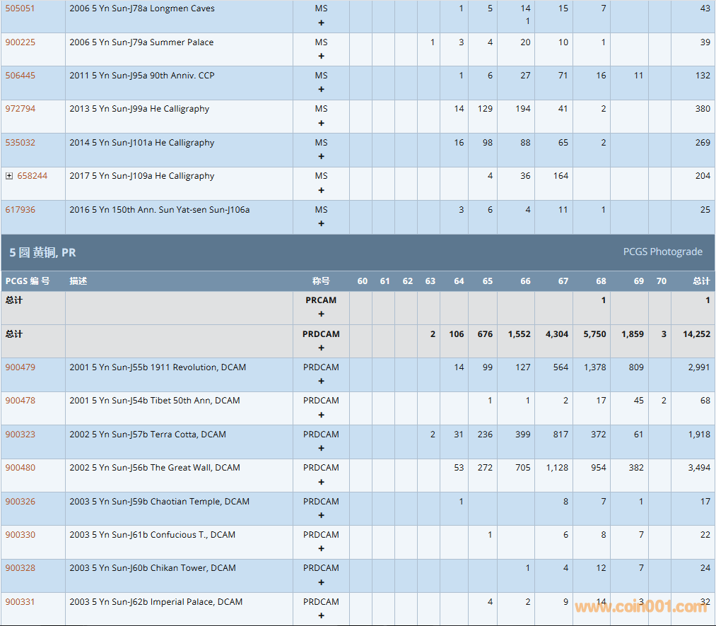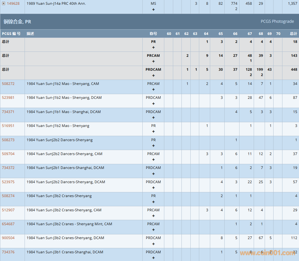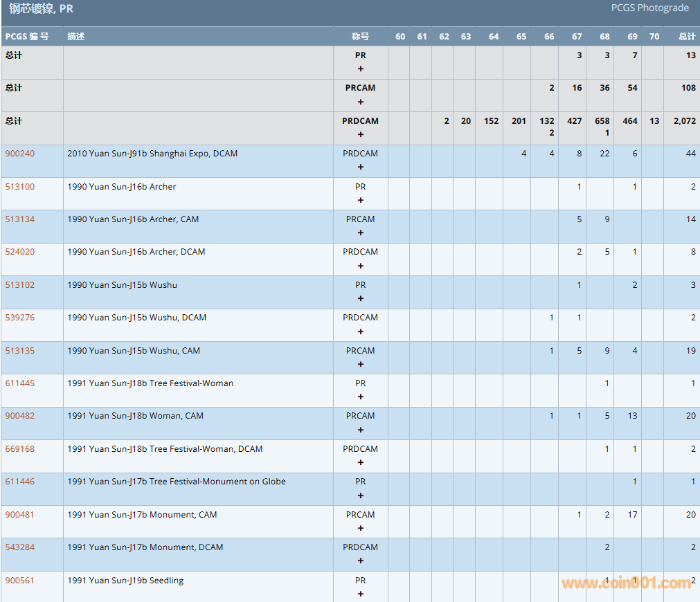 PCGS硬幣評級數(shù)量報告 ..
