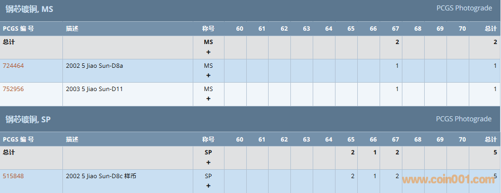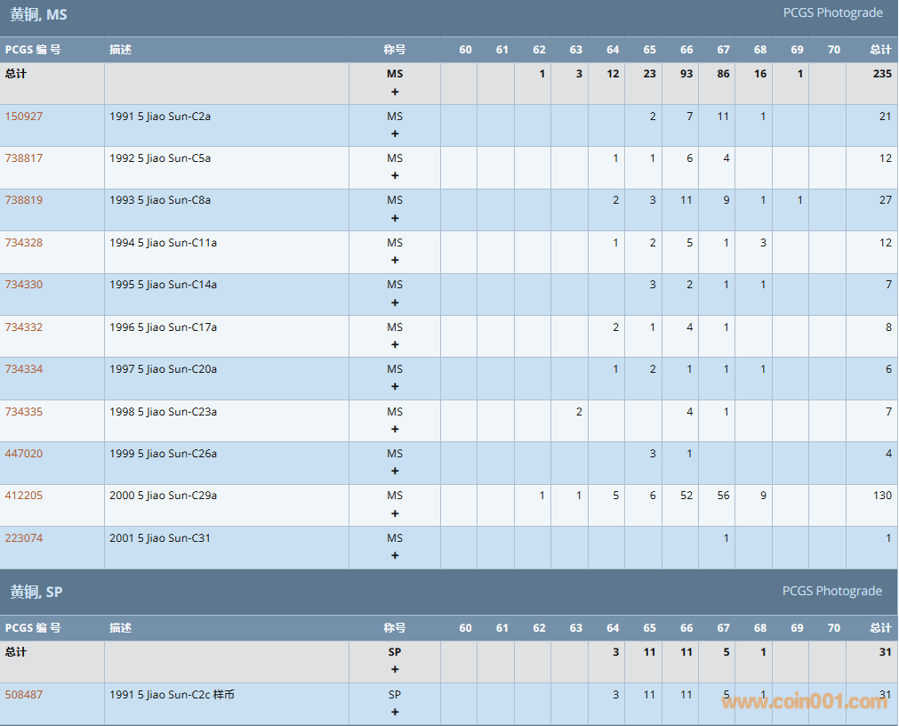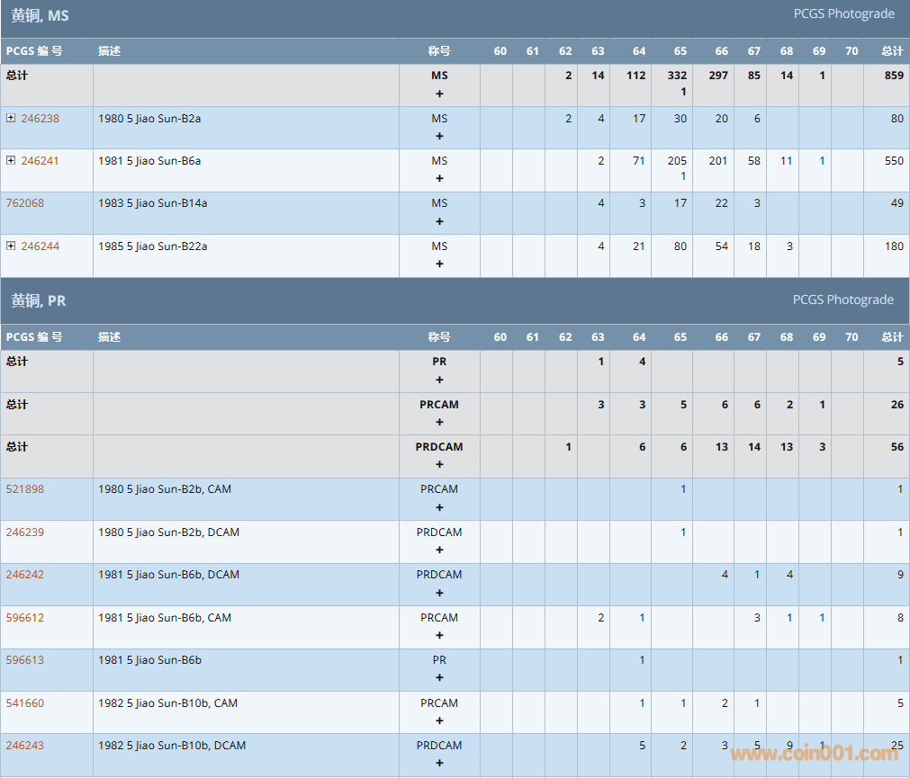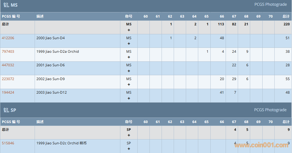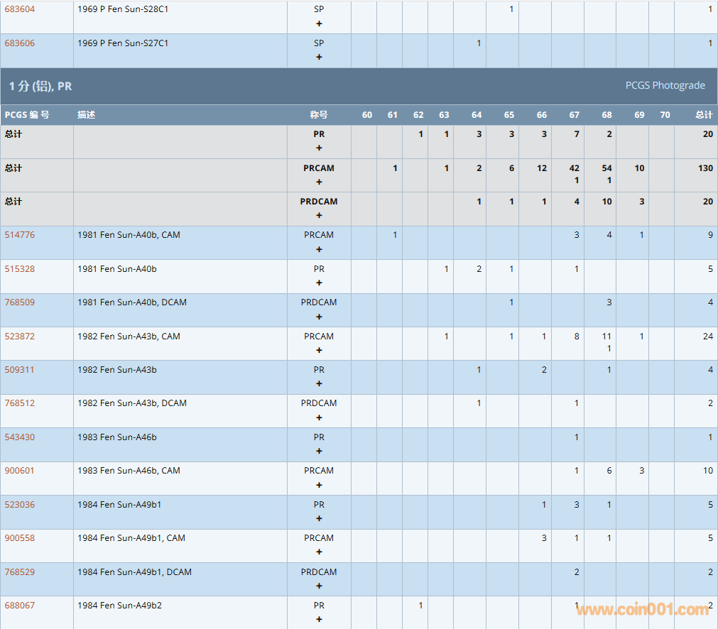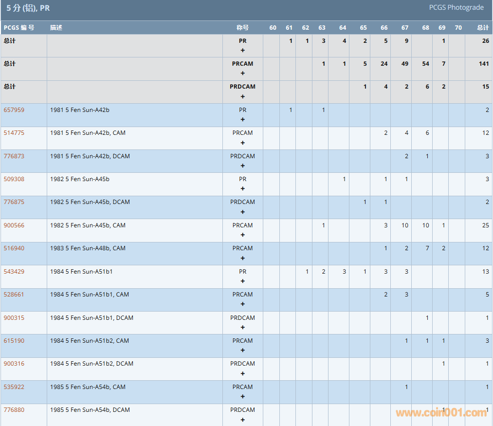 PCGS硬幣評級數(shù)量報告 ..