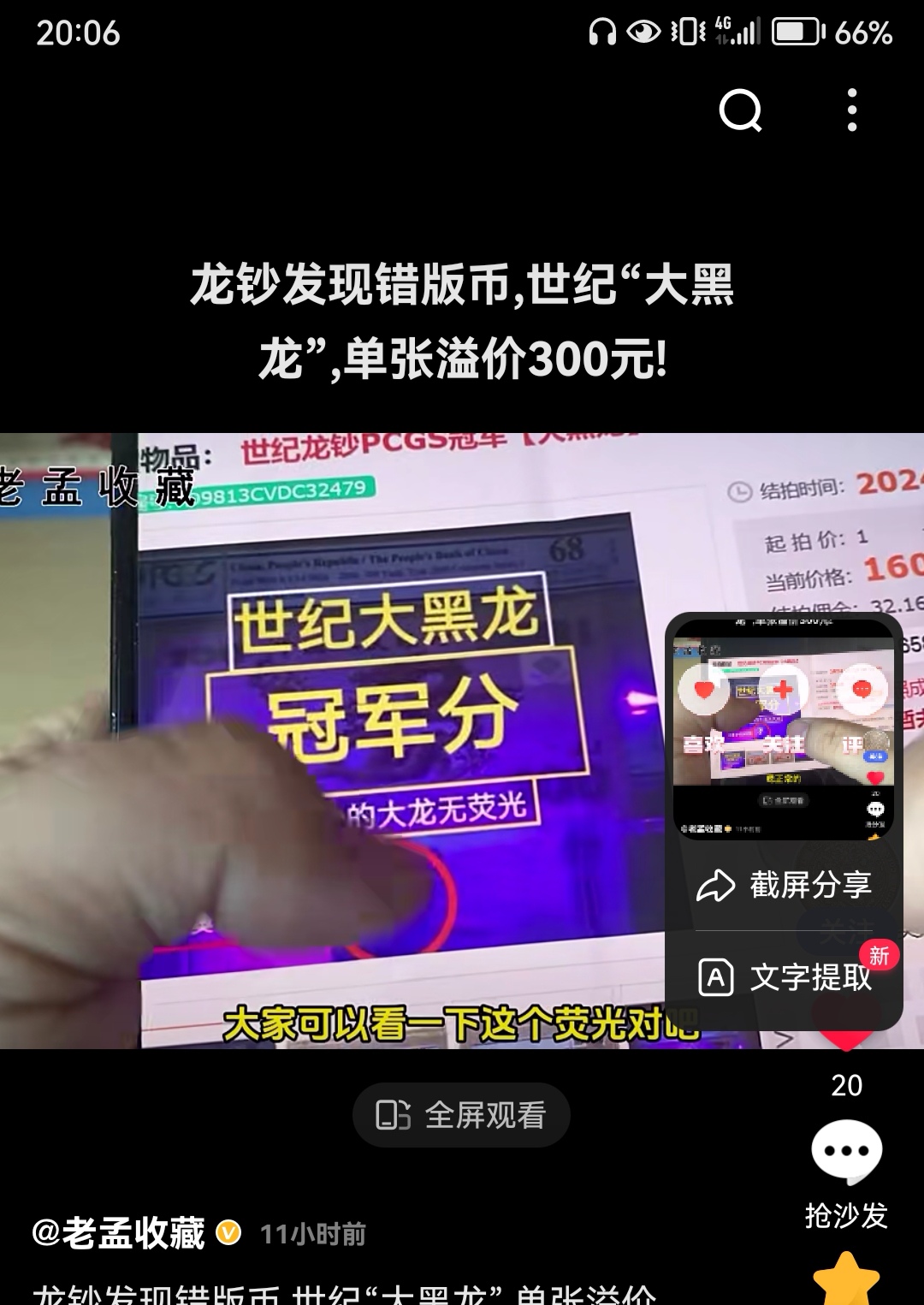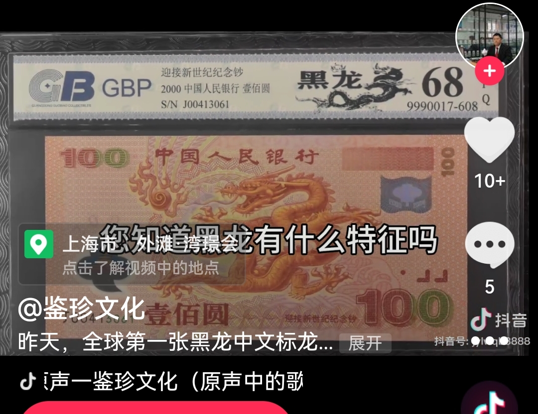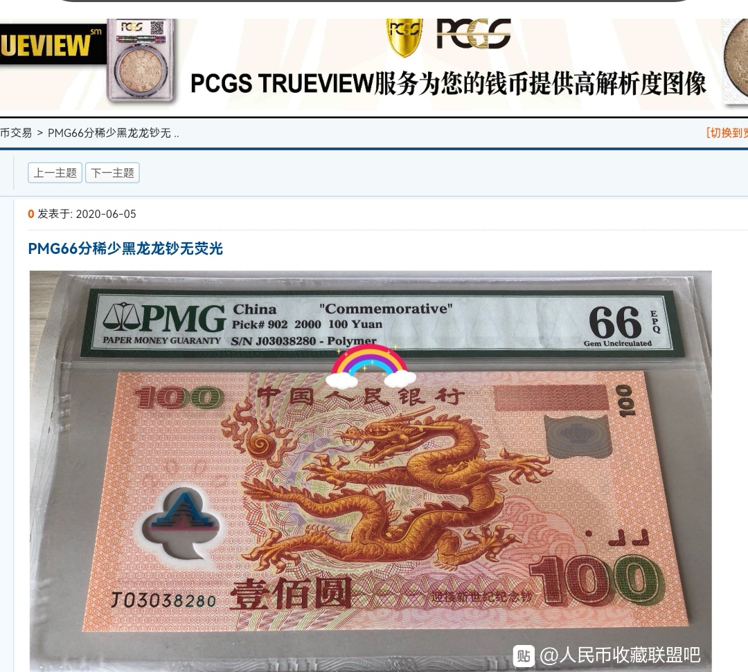 引用 引用樓主jsshy于2024-04-11 20:34發(fā)表的 2000年迎接新世紀(jì)龍鈔的黑龍版 :曾聽說千禧年龍鈔里面存在著數(shù)量不多的“大黑龍版”(即無熒光)。有評級公司發(fā)布的文章說黑龍數(shù)量最小,也有人說黑龍占整個龍鈔數(shù)量的3%。還有紙幣藏家通過觀察,整理得出龍鈔的大龍分為4種狀態(tài):強(qiáng)熒光龍正常熒光龍弱熒光龍.......
