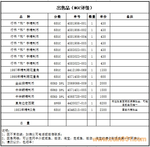 評級普通(精制)紀念幣交易