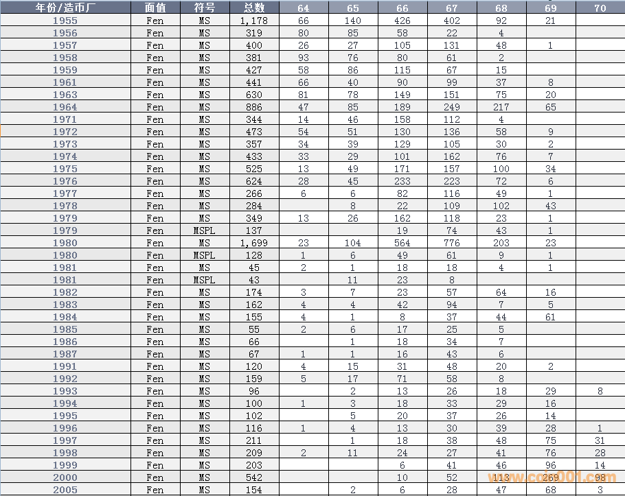 NGC硬幣評級(jí)數(shù)量報(bào)告 ..