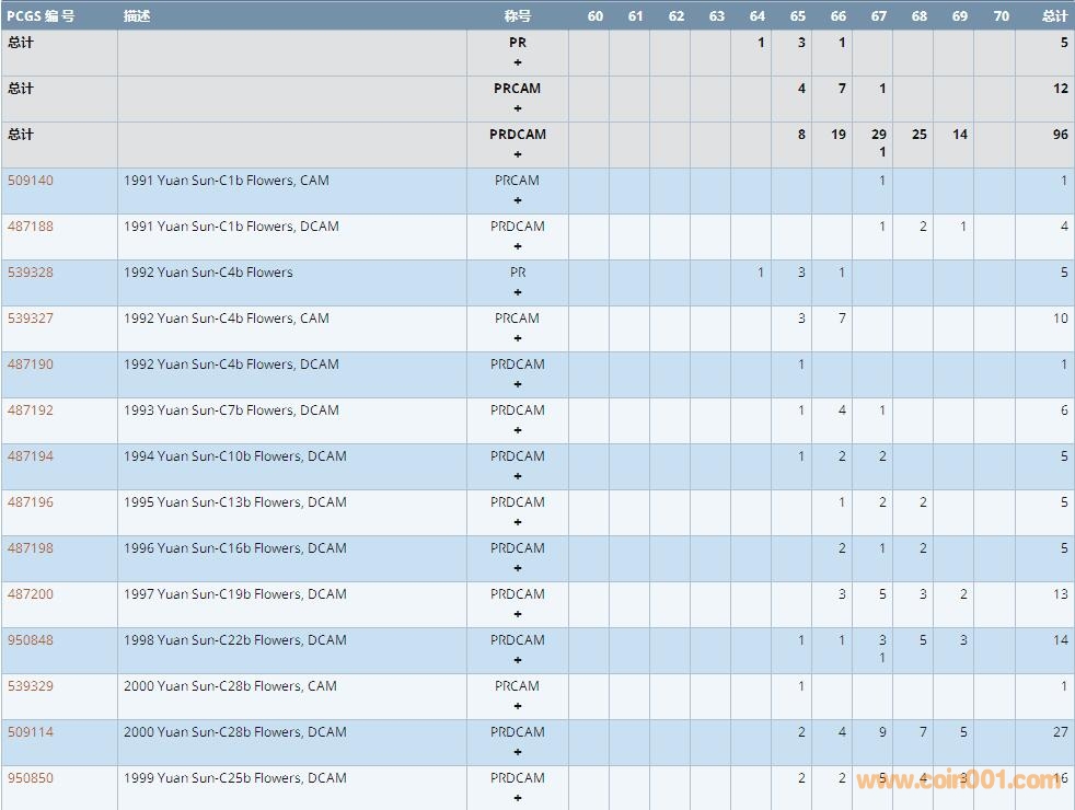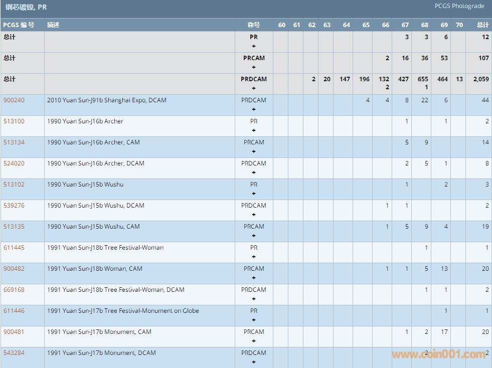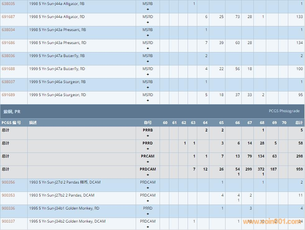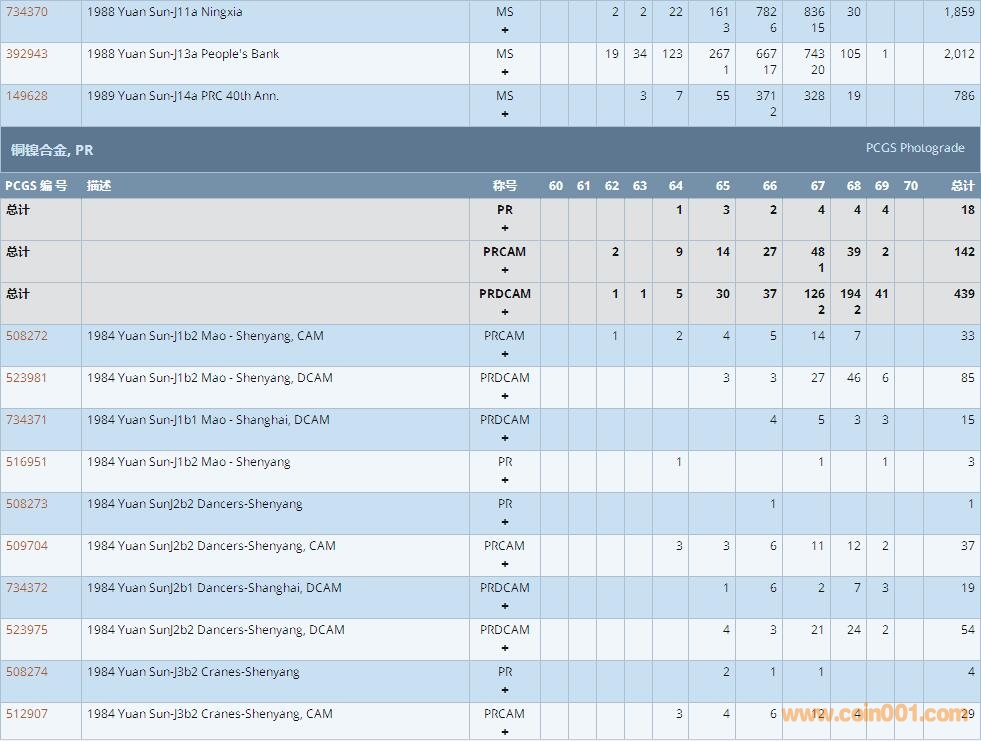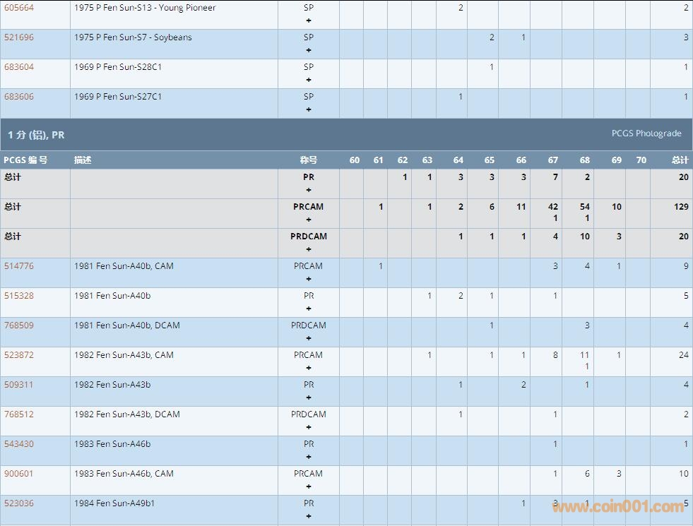 PCGS硬幣評(píng)級(jí)數(shù)量報(bào)告 ..