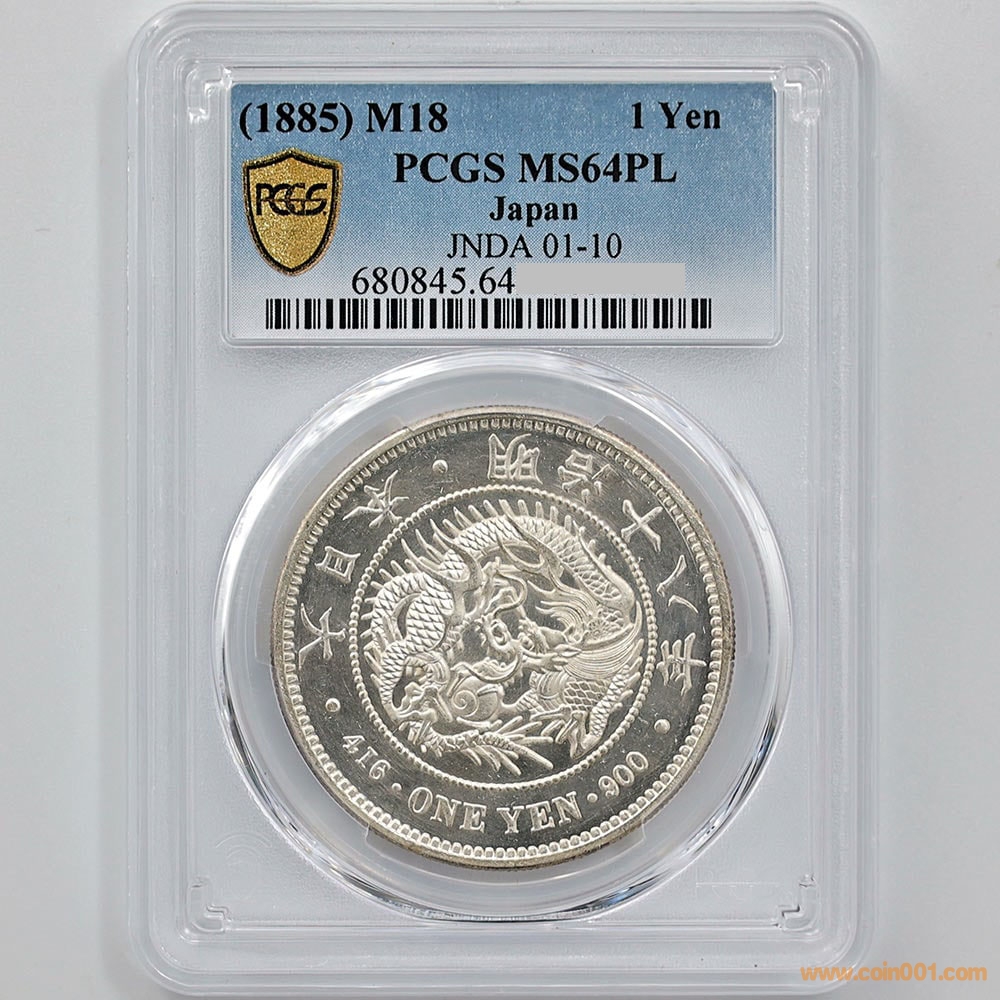 1885年 日本 明治18年 1日元 銀幣(大型)PCGS MS 64 PL------120,000元