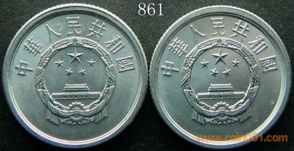 由于任何一個工作模都有一定的使用壽命,當(dāng)它在生產(chǎn)一定數(shù)量的硬幣后,自然就會磨損嚴(yán)重,從而不能再繼續(xù)使用,這時若要繼續(xù)鑄造生產(chǎn),那么就必須重新制作新的工作模。因此,筆者推測861必是不同批次鑄造的,且前后批次使用的工作模不同(這還有待證實)。