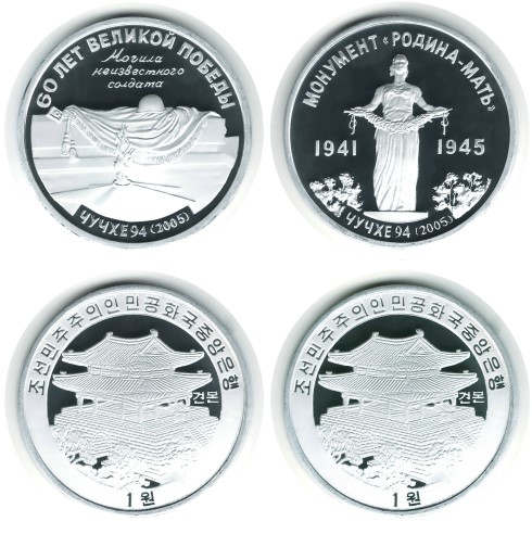 9.2005年 朝鮮-紀(jì)念 俄羅斯衛(wèi)國戰(zhàn)爭60周年 2枚大全 呈樣幣