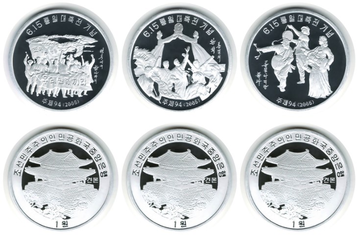 7.2005年 朝鮮《6.15 南北共同宣言》3枚大全 呈樣幣