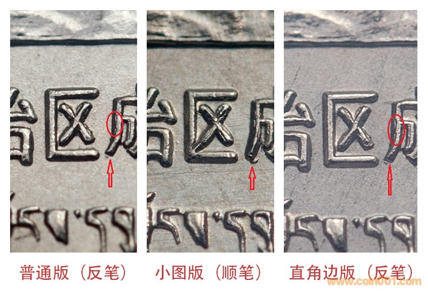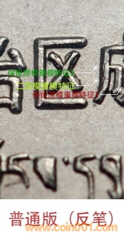 更值得我們留意的是,這些近260.9萬(wàn)枚老西藏幣中不存在一枚正筆“區(qū)”字;同理正筆3000多枚老西藏幣中也不存在一枚反筆“區(qū)”字。