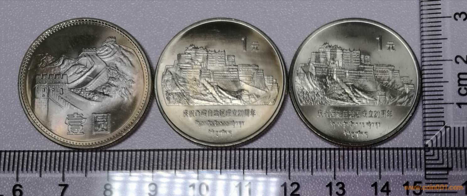 1985年長城幣小星版、老西藏幣遠廓小圖版、老西藏幣近廓普制版對比圖片