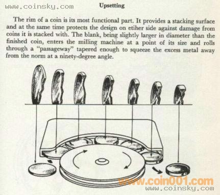增厚幣邊,以便壓印隆起的外圈 – 幣邊增厚 – 一道典型的金屬加工工藝;
