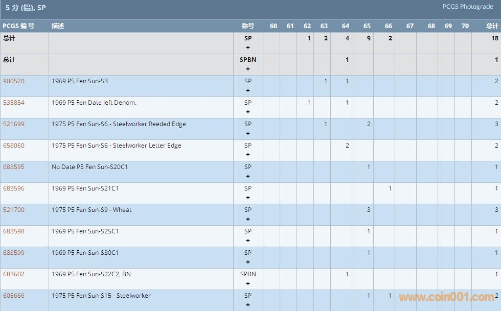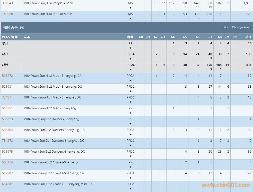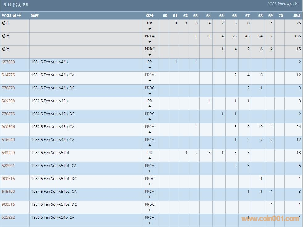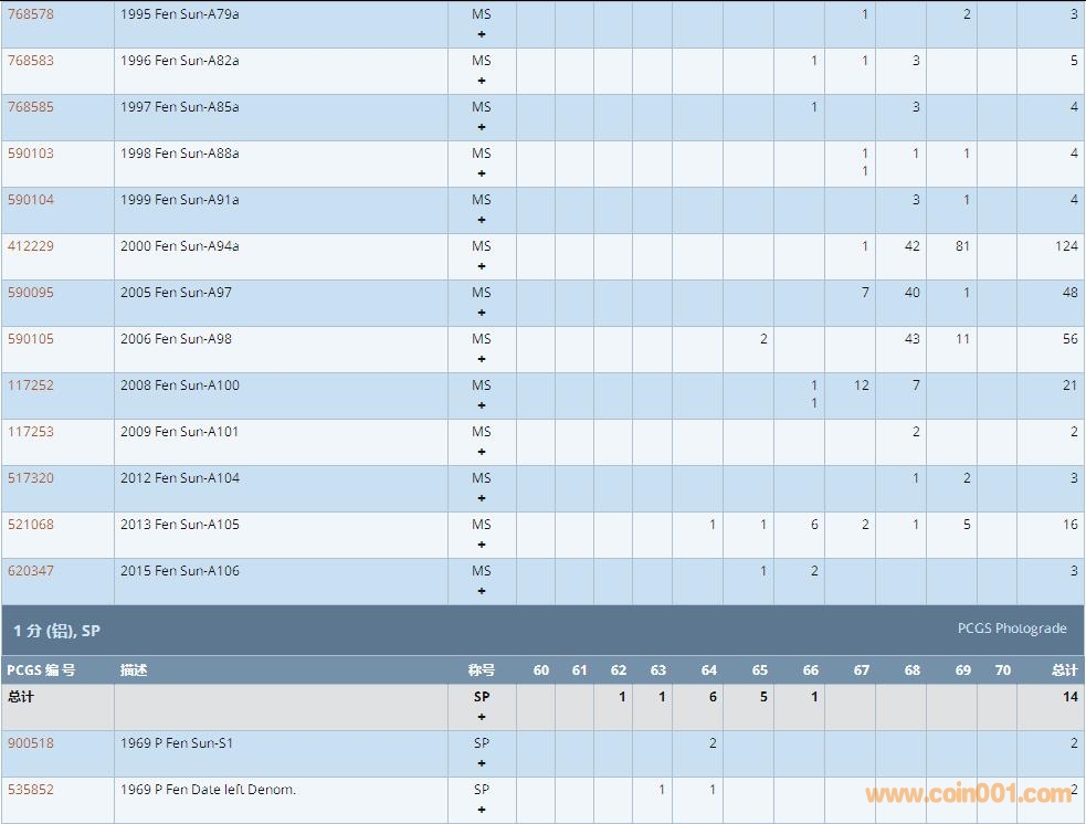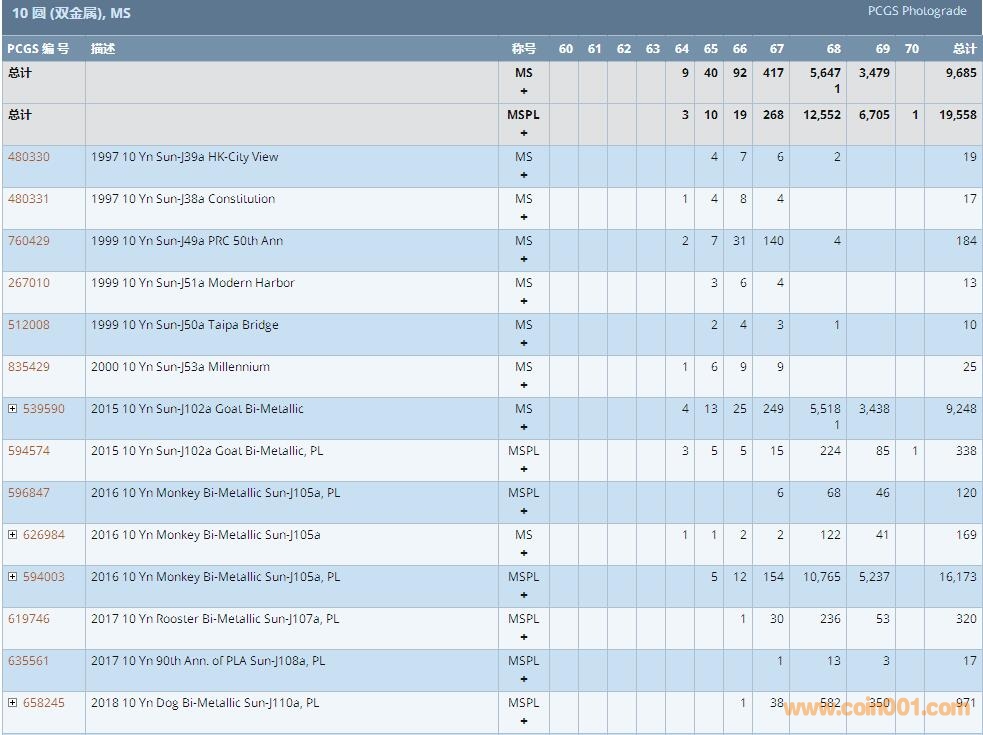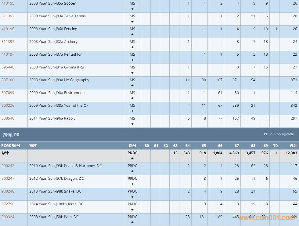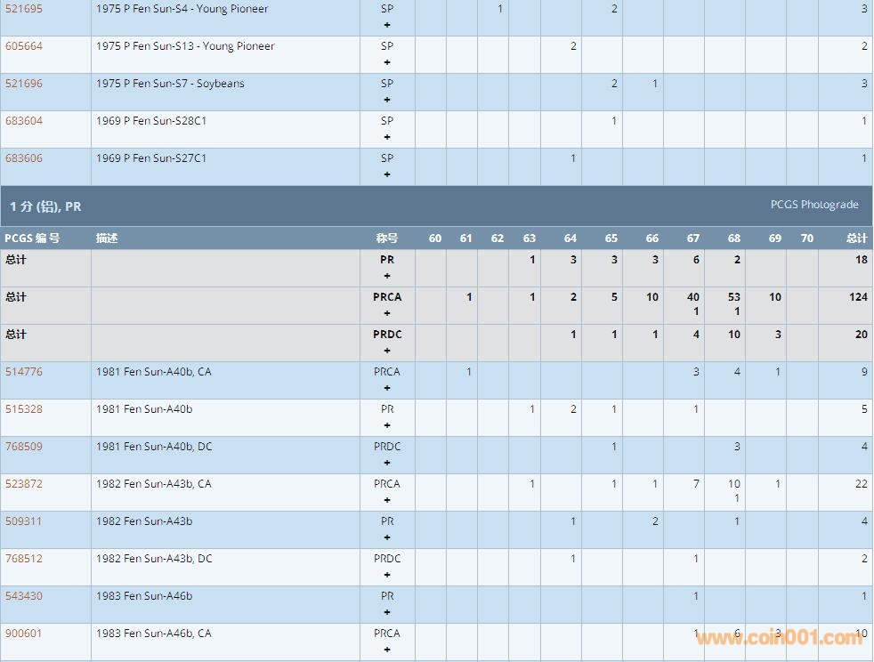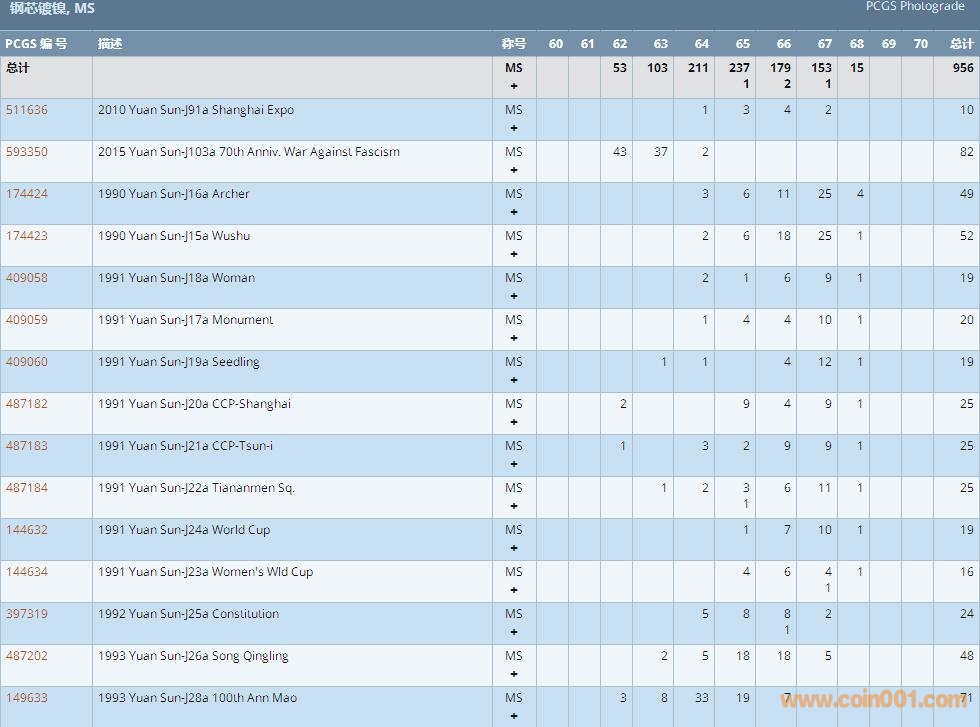 PCGS硬幣評級數(shù)量報(bào)告 ..