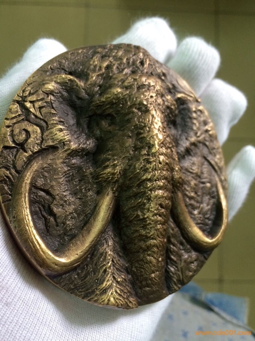 猛犸象大銅章-上幣遠(yuǎn)古生命系列(一)90mm黃銅,原裝盒證,900/枚三包。