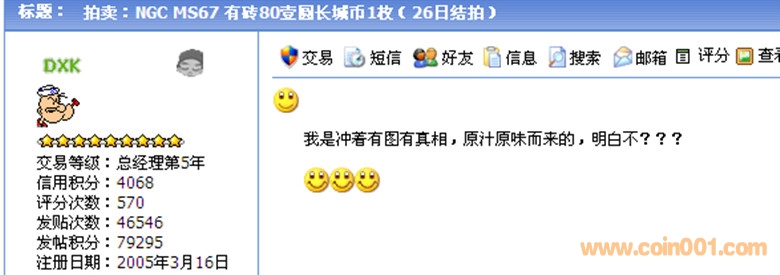 3、第三個帖,有點意思,剛剛說完今后一定會標注出來,一定要誠信喲,大家看看圖,一起來猜猜猜,這三組幣有幾枚是洗過澡的,洗澡不知算算養(yǎng)護了呢?估計人家也看不出來,不是不誠信,那我們一起幫忙找找看吧,不能讓誠信給X??吃羅!