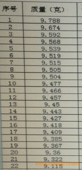 2、“小星版”的星比大星版的星都要短0.3mm,大星與小星間距差為0.3mm。國(guó)徽、天安門(mén)尺寸基本上一樣。二十多枚小星版的重量不一,最輕9.115克、最重9.788克,詳見(jiàn)測(cè)量統(tǒng)計(jì)表(圖5);