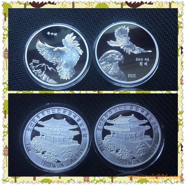 5.2015年 朝鮮國鳥-蒼鷹 1oz 紀(jì)念銀幣(兩枚一套)