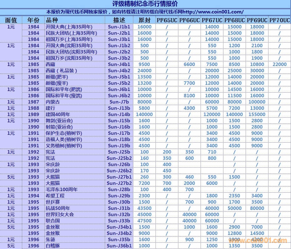 評級普通(精制)紀念幣交易