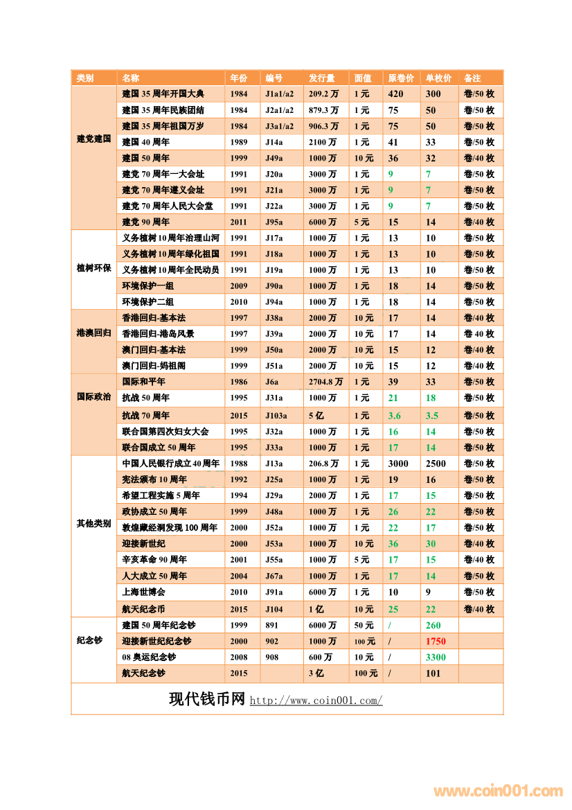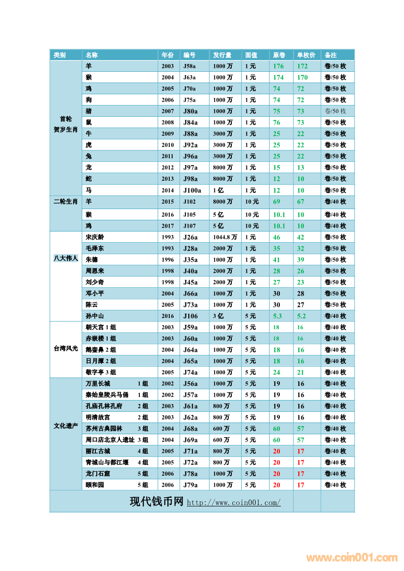 2017.4.15流通紀(jì)念幣報(bào)價(jià)