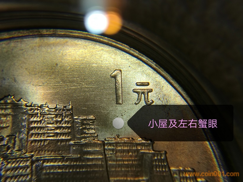 二、面值下方有“小屋”,且小屋左右各有一個小點點,像蟹眼;