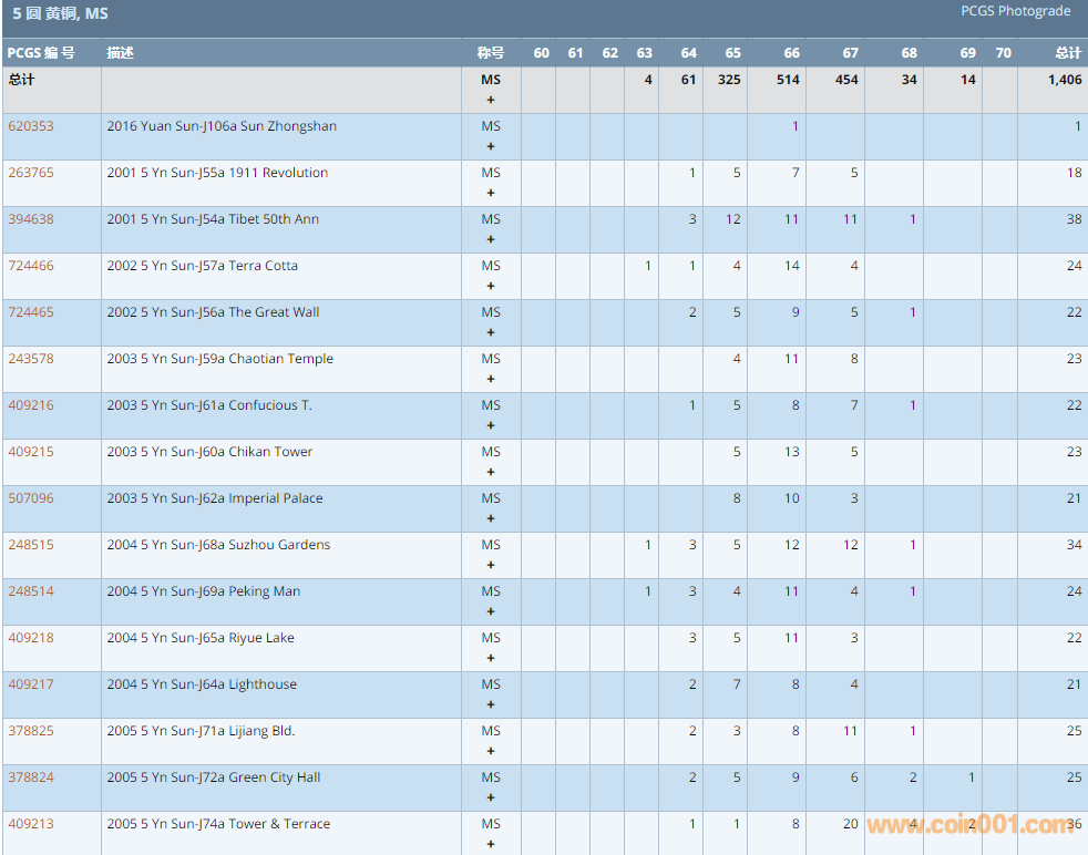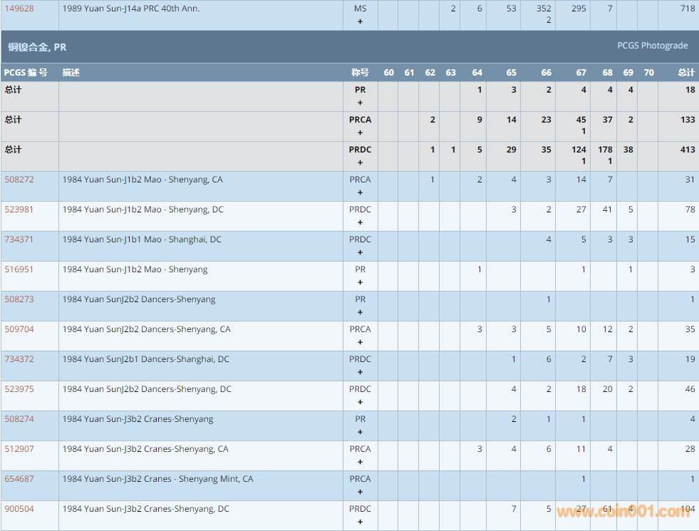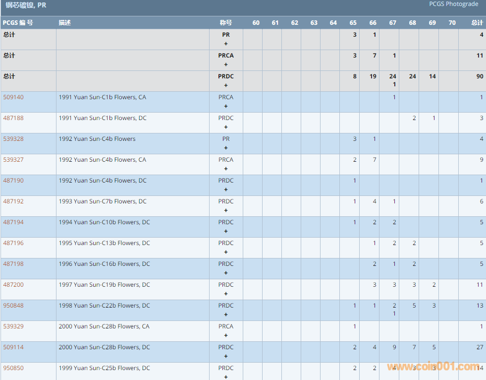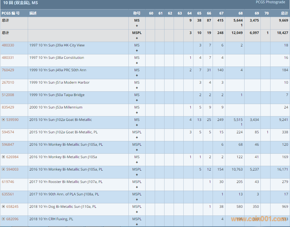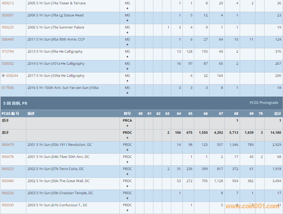 PCGS硬幣評(píng)級(jí)數(shù)量報(bào)告 ..